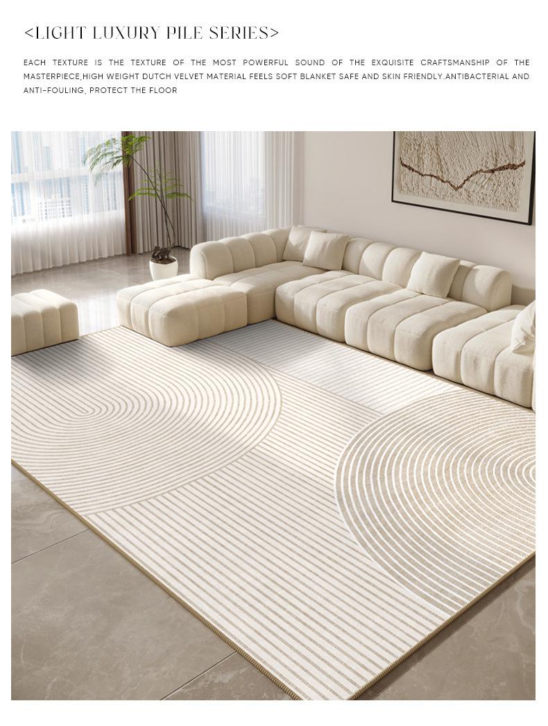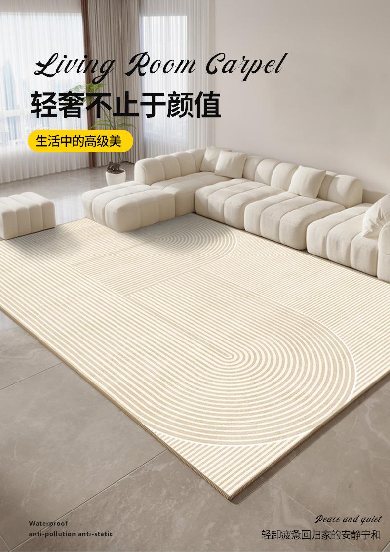 Alfombra estilo crema para sala de estar, mesa de centro de nuevo estilo, ligera, de lujo, avanzada, sencilla, para dormitorio, mesita de noche, alfombra de suelo sin mantenimiento