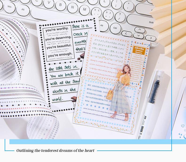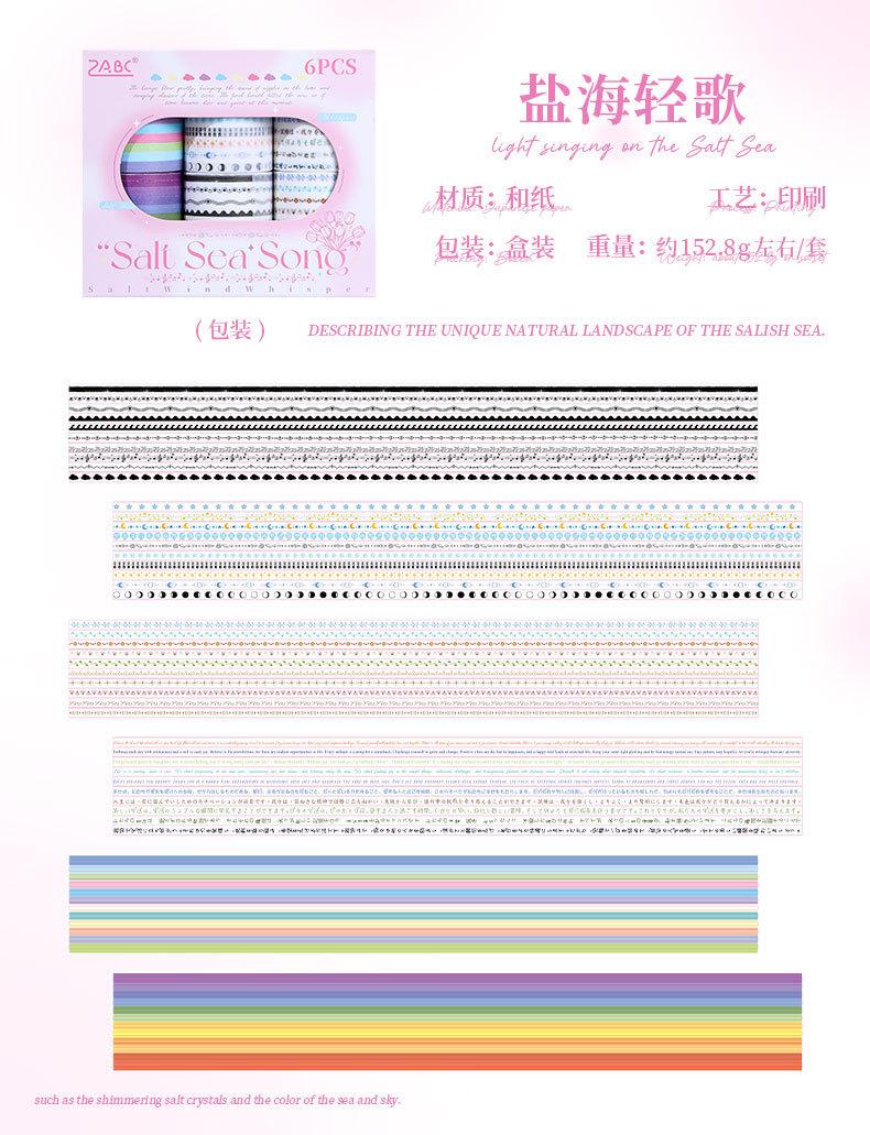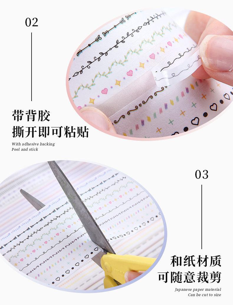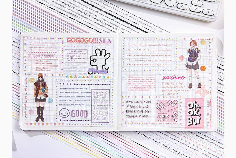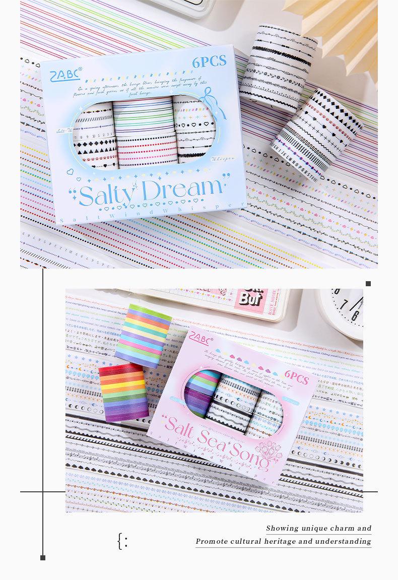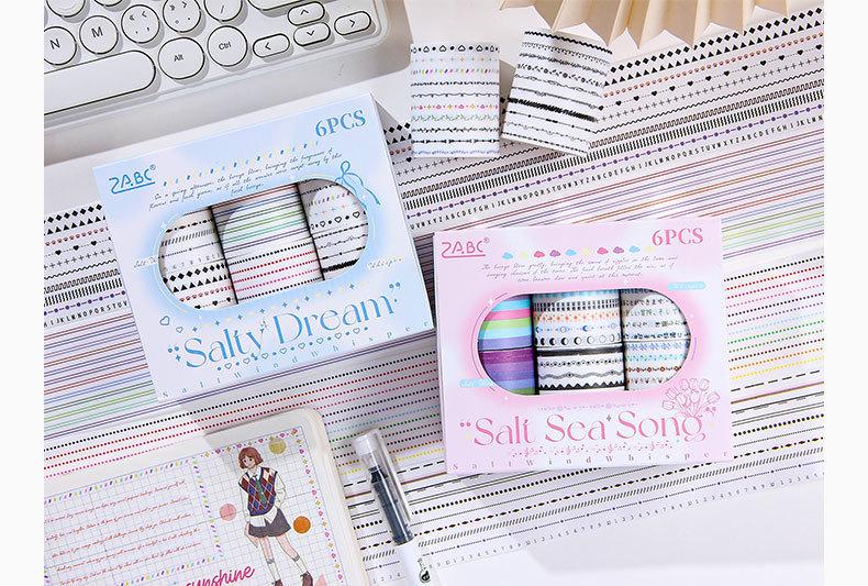 Caja de set de tiempo de sal transparente y cinta de papel diy cuenta de mano diario pegatinas decorativas transfronterizas retro línea divisoria y pegatinas de papel