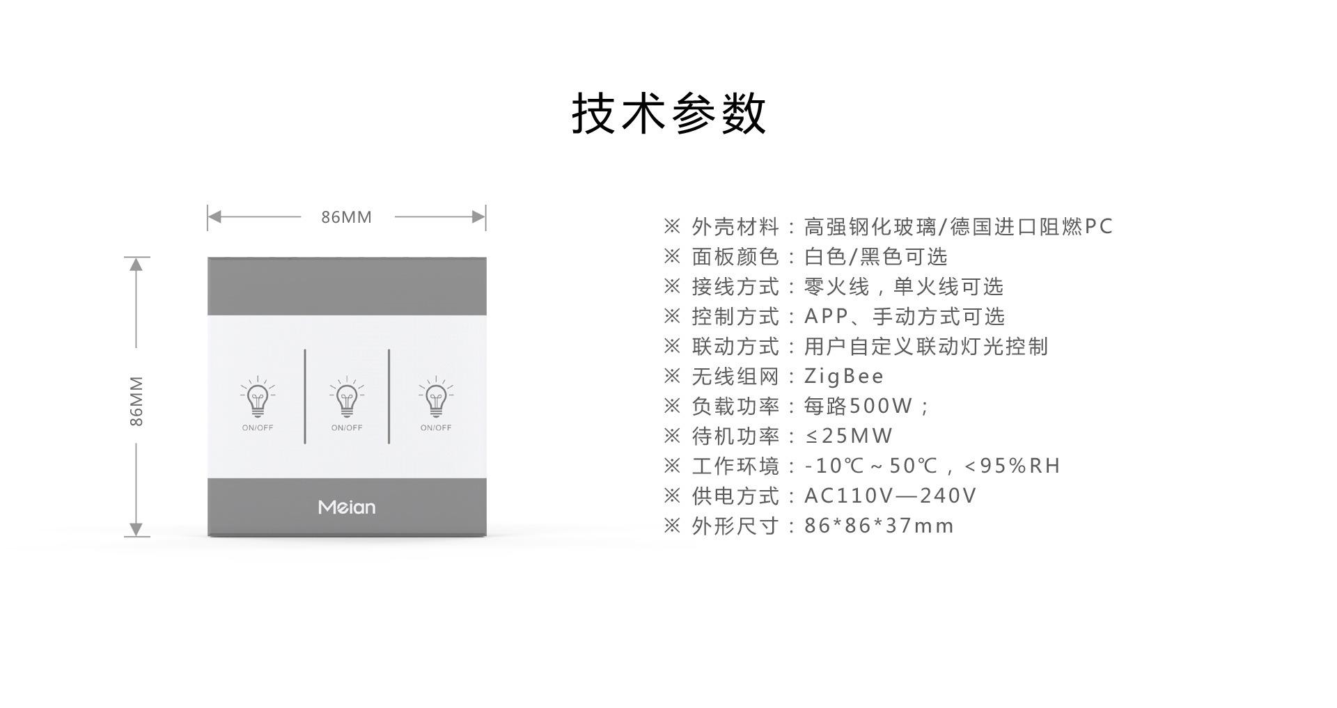 Panel de interruptores inteligentes Meian Tuya Zigbee 3.0/Wifi con interruptor de escena para el hogar inteligente