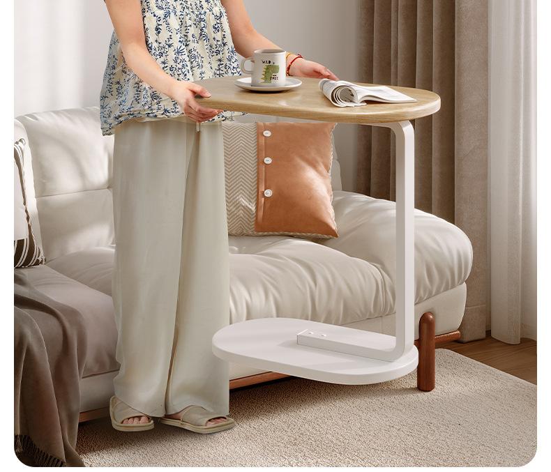 Mesita de noche para dormitorio, mesita de noche, estante de almacenamiento, móvil, perezoso, de madera maciza, para el hogar, mesa de centro pequeña, elevable y giratoria.