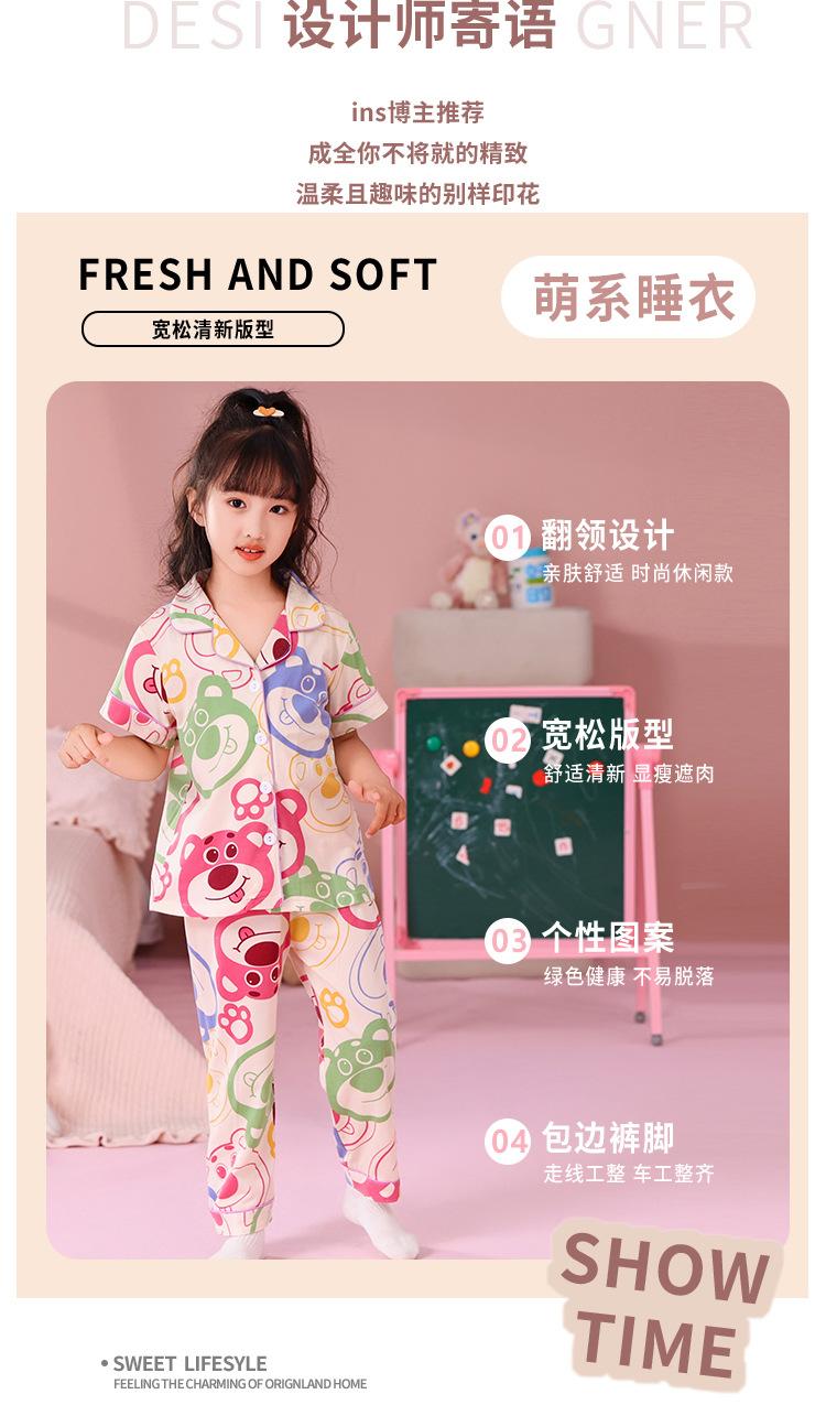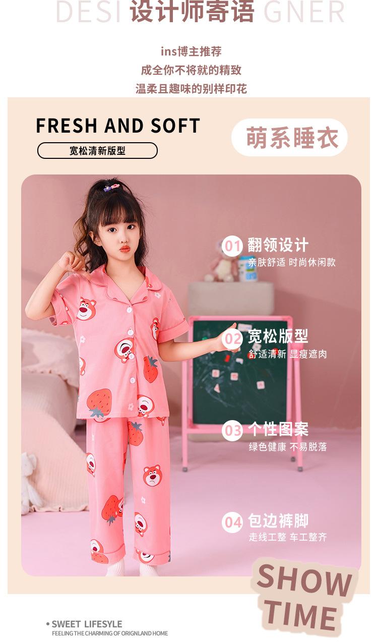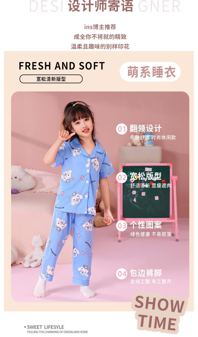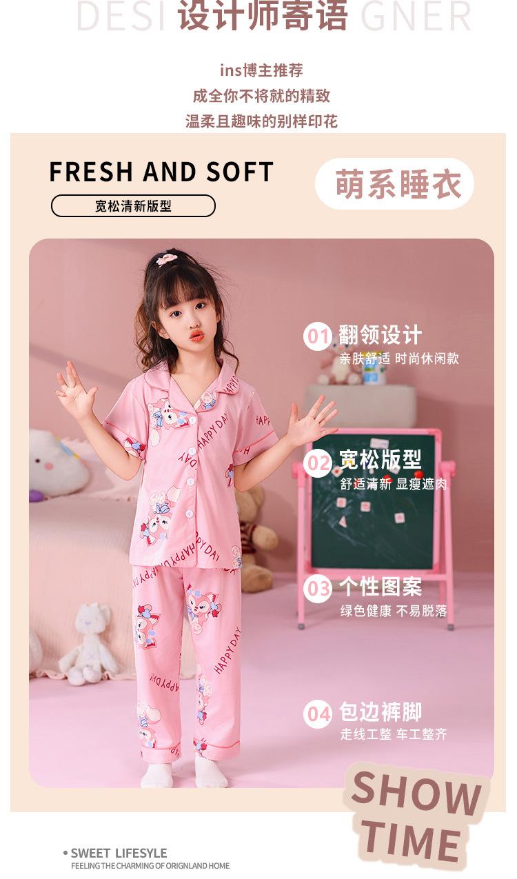 Pijamas para niñas al por mayor, pantalones de manga corta, estilo princesa de dibujos animados de verano, traje fino para niñas, ropa para el hogar