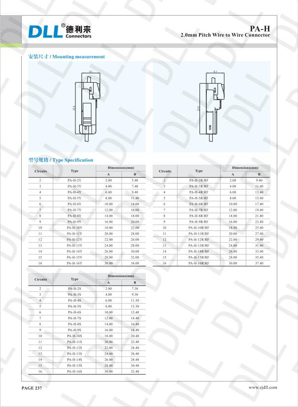 PA-H-7Y DIP,P = 2.0mm Número de filas: 1 Número de PIN por fila: 7