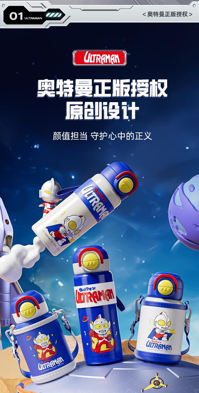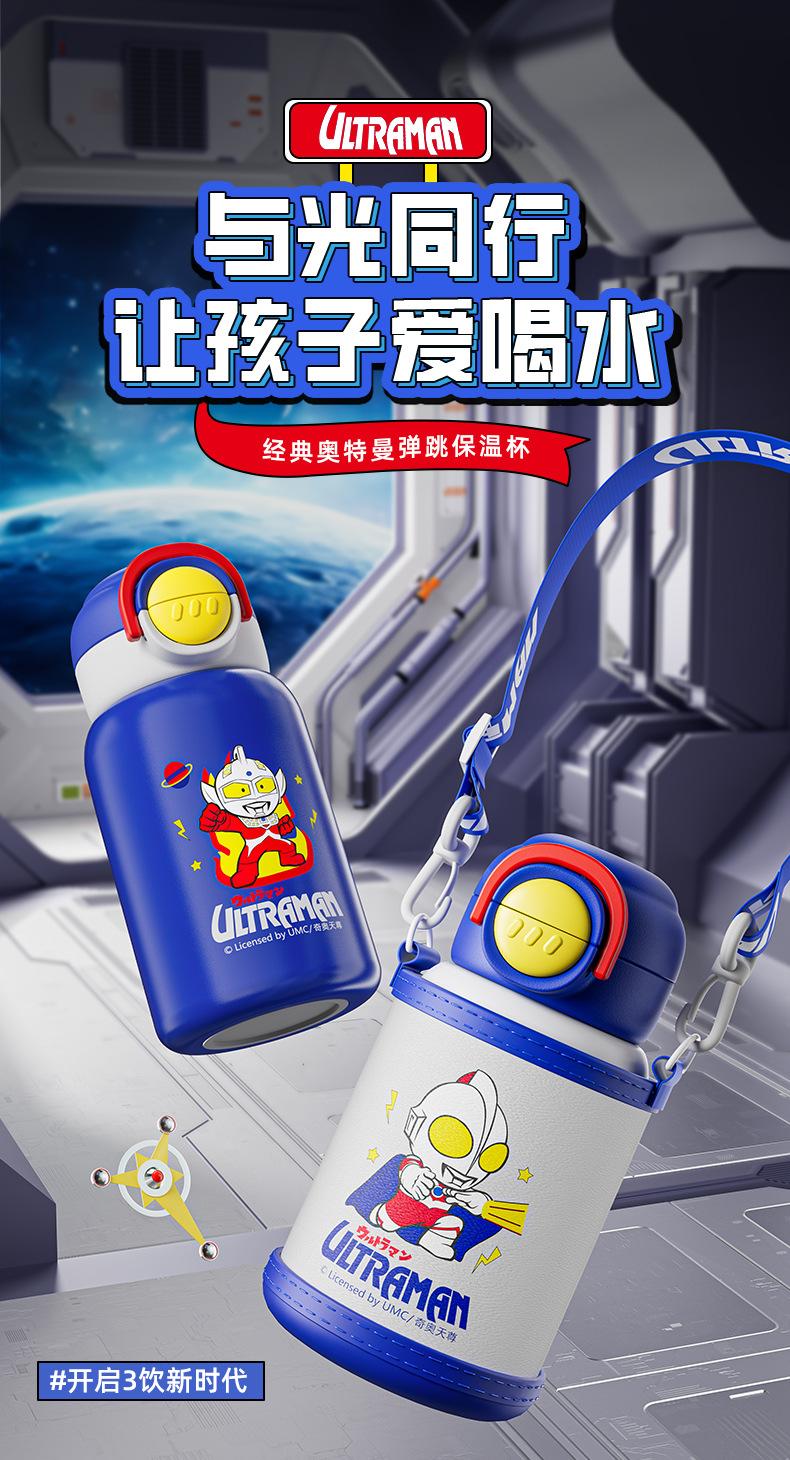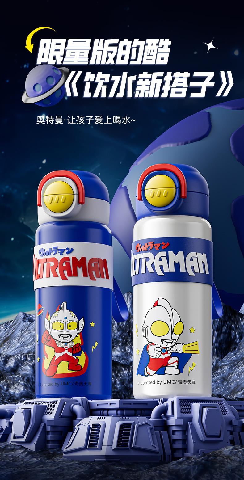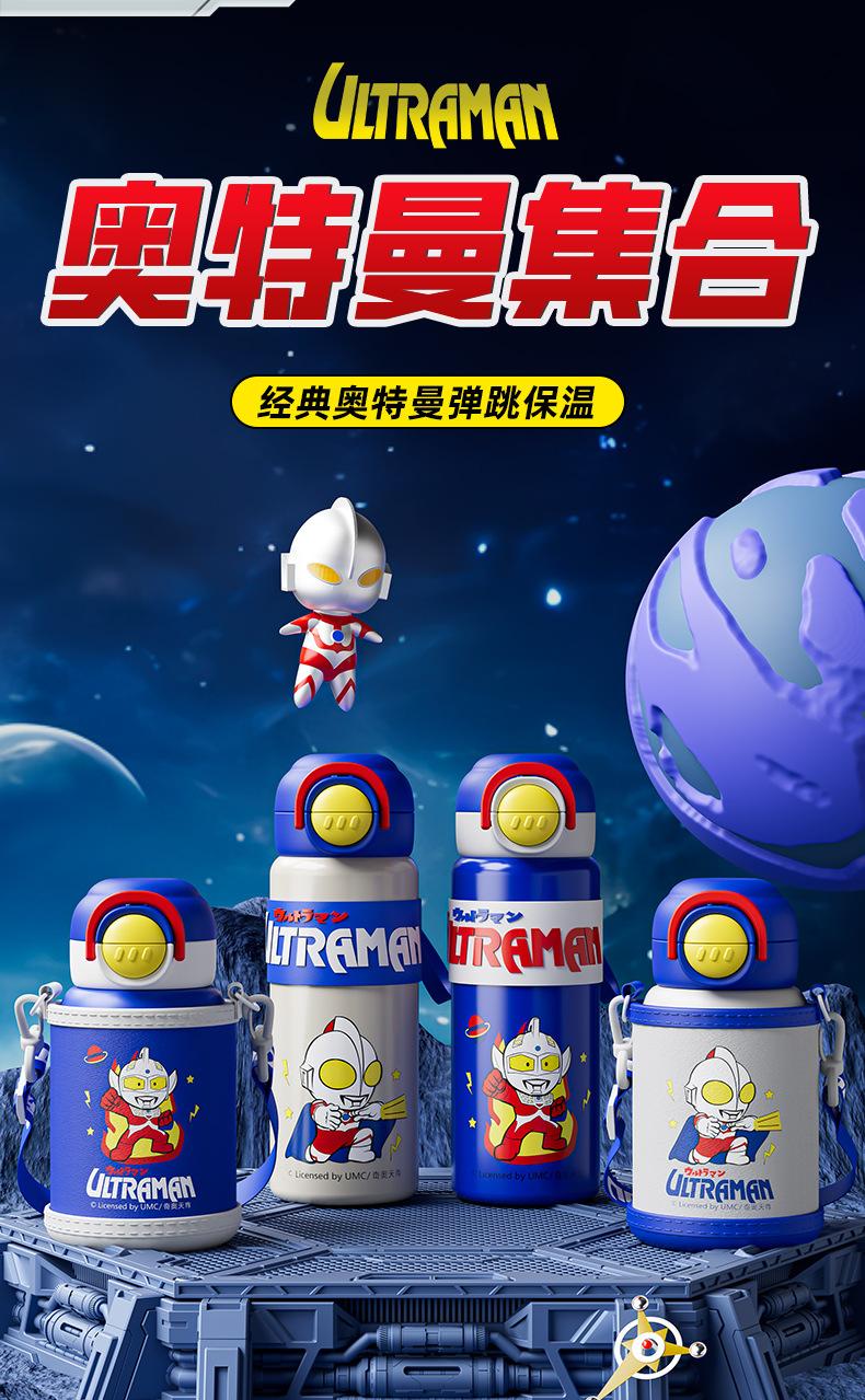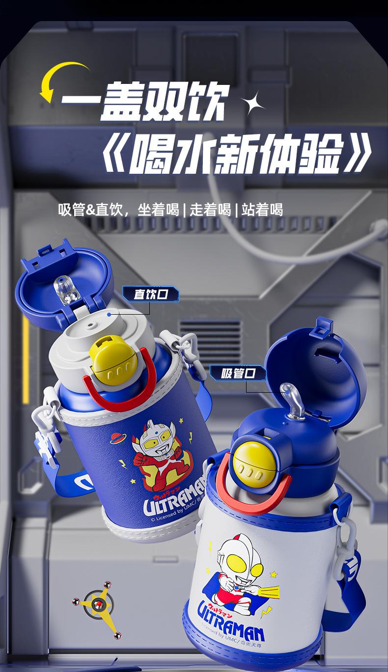 Taza de agua con aislamiento para niños Ultraman, tetera para bebés, taza especial con pajita para la escuela, anticaída, grado alimenticio 316