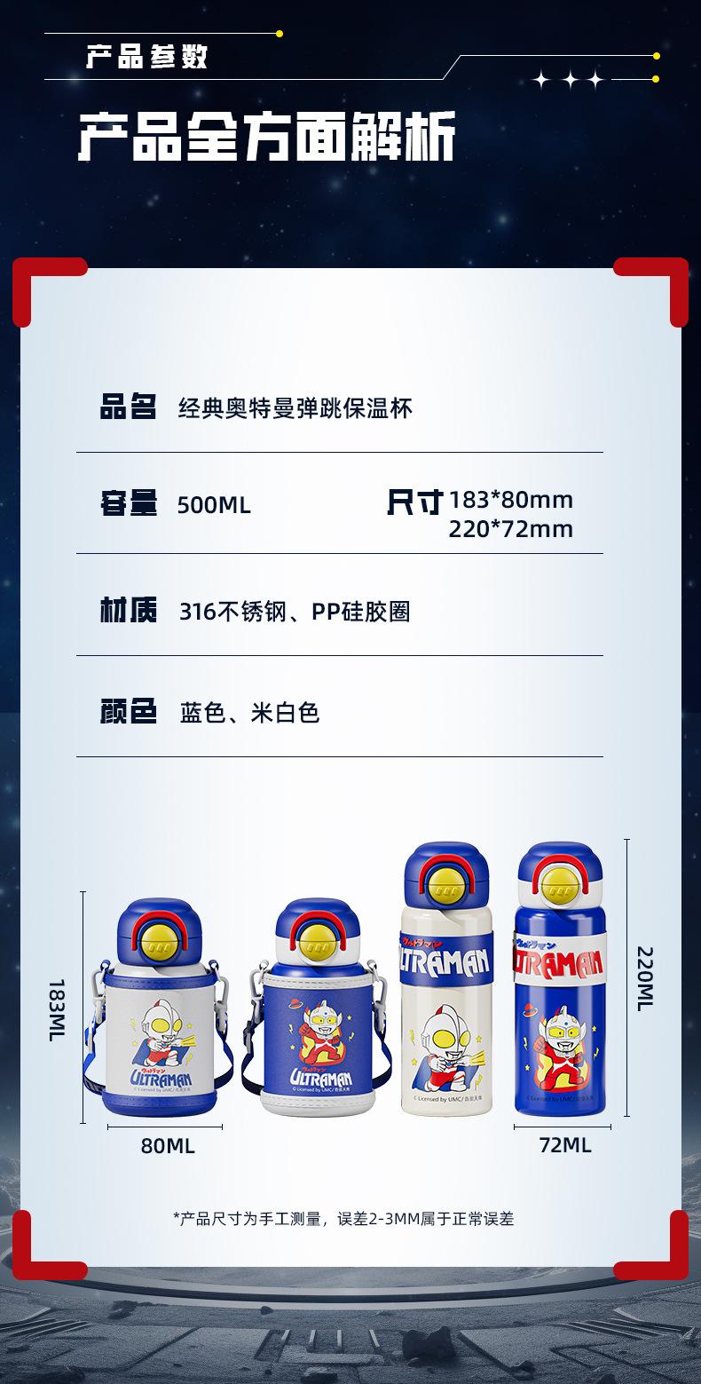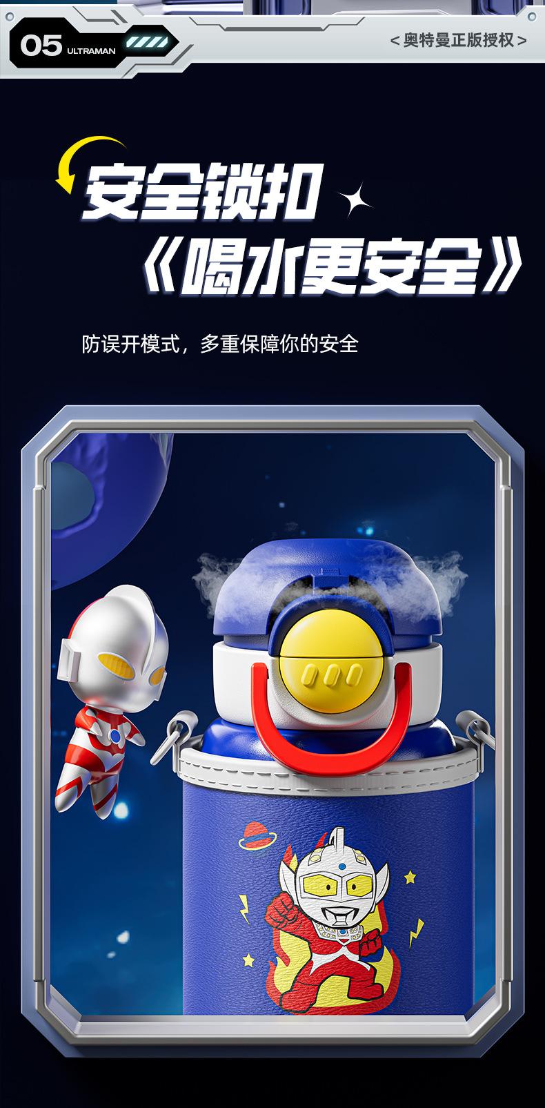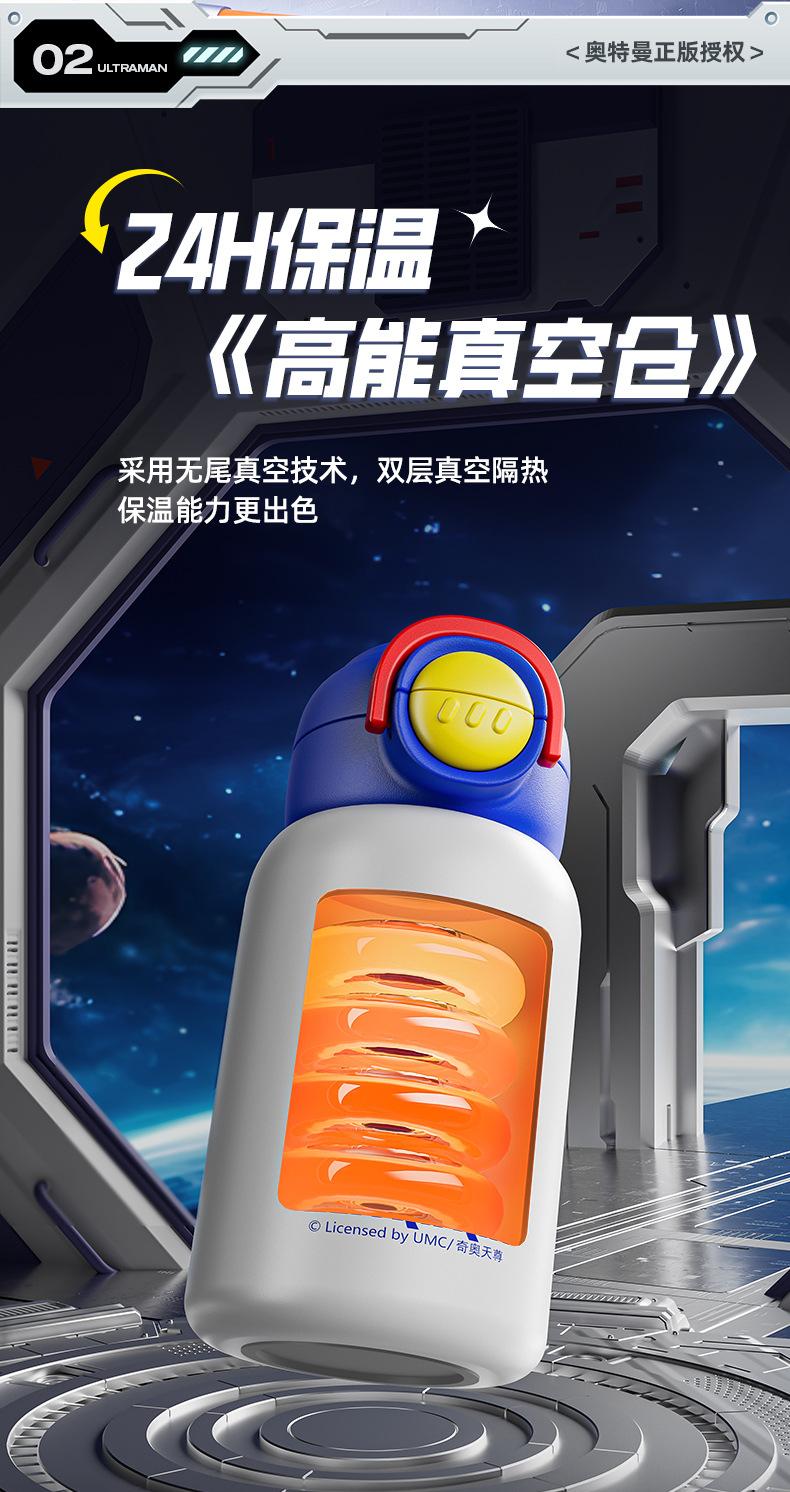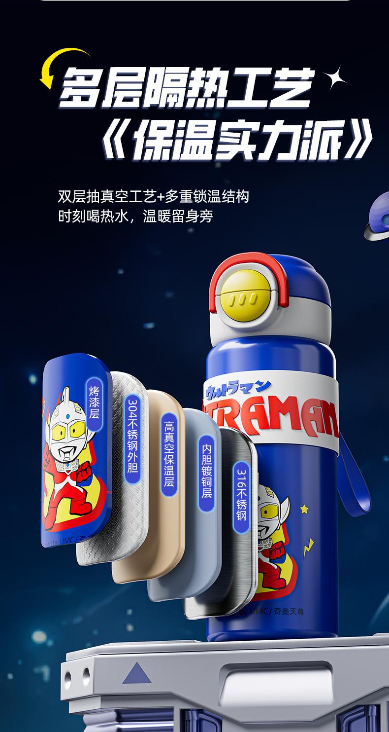 Taza de agua con aislamiento para niños Ultraman, tetera para bebés, taza especial con pajita para la escuela, anticaída, grado alimenticio 316
