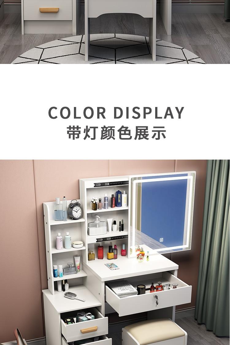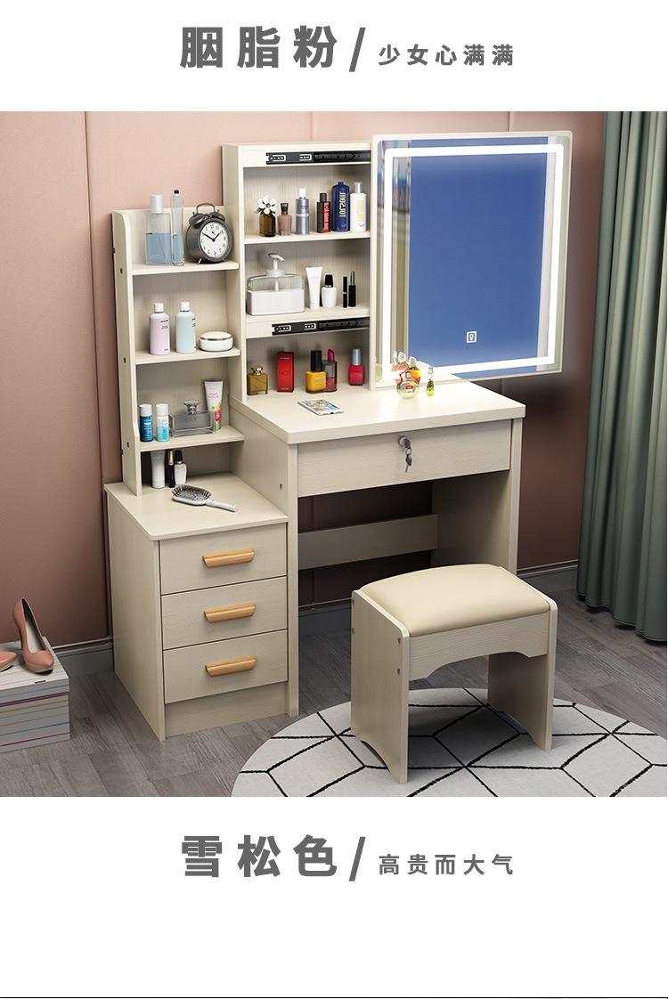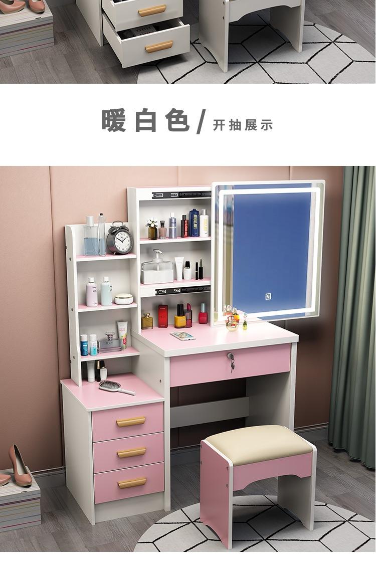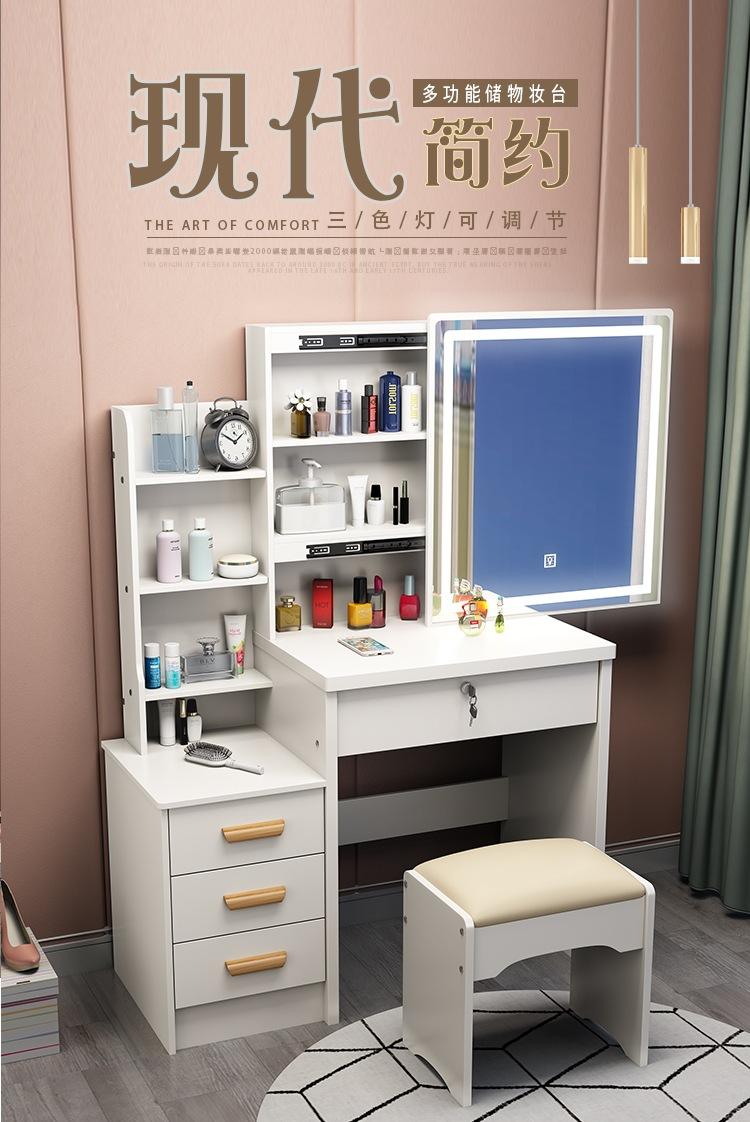 Tocador Dormitorio Apartamento Pequeño Moderno Simple Mesa de Maquillaje Tocador Gabinete Integrado de Almacenamiento Estilo ins Celebridad de Internet con Luz