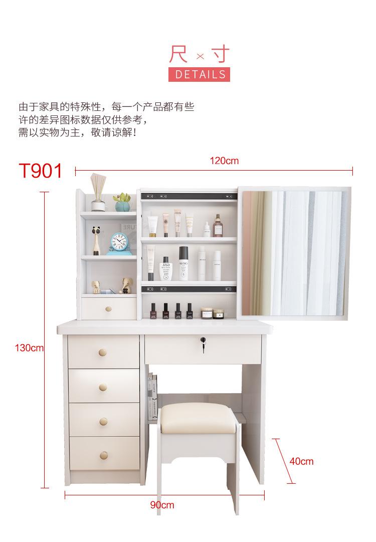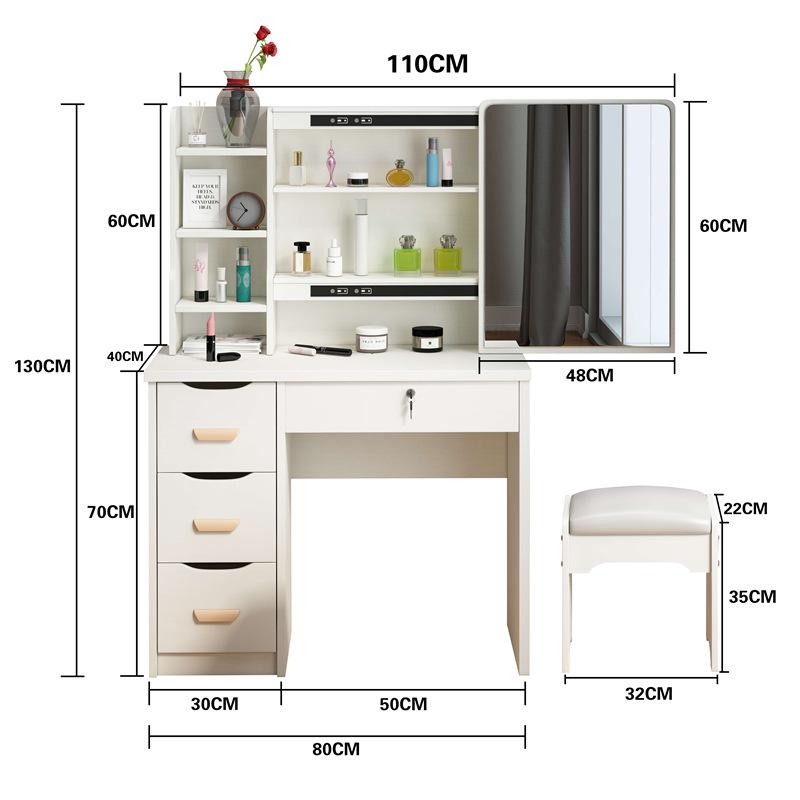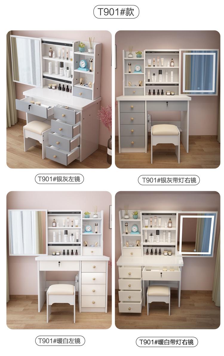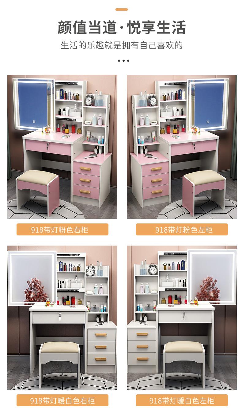 Tocador Dormitorio Apartamento Pequeño Moderno Simple Mesa de Maquillaje Tocador Gabinete Integrado de Almacenamiento Estilo ins Celebridad de Internet con Luz