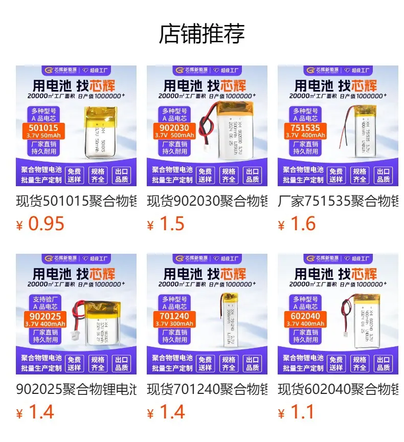 503450/1000mAh battery cell, 503450/1000mAh plus plate cable, 523450/1000mAh battery cell, 523450/1000mAh plus plate cable