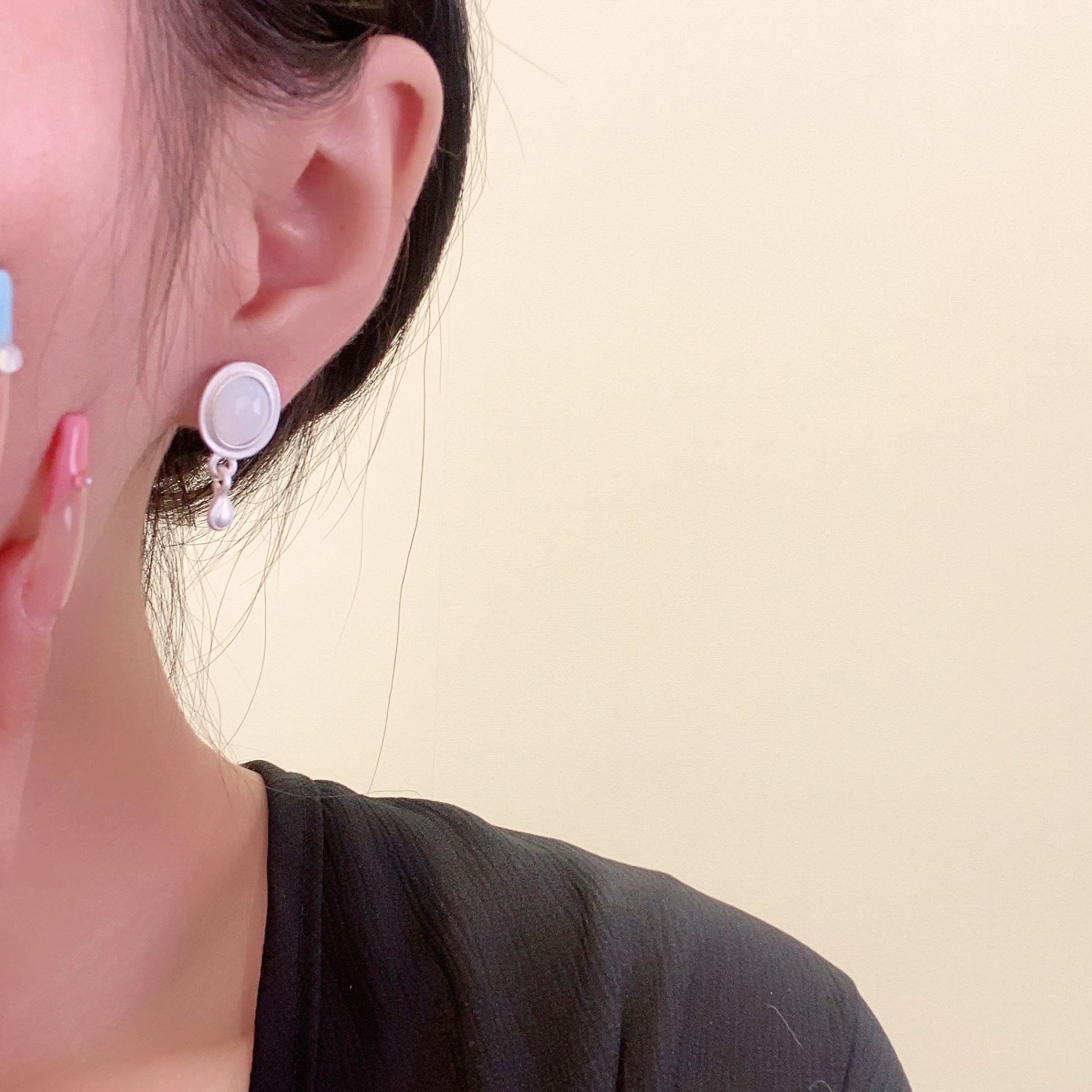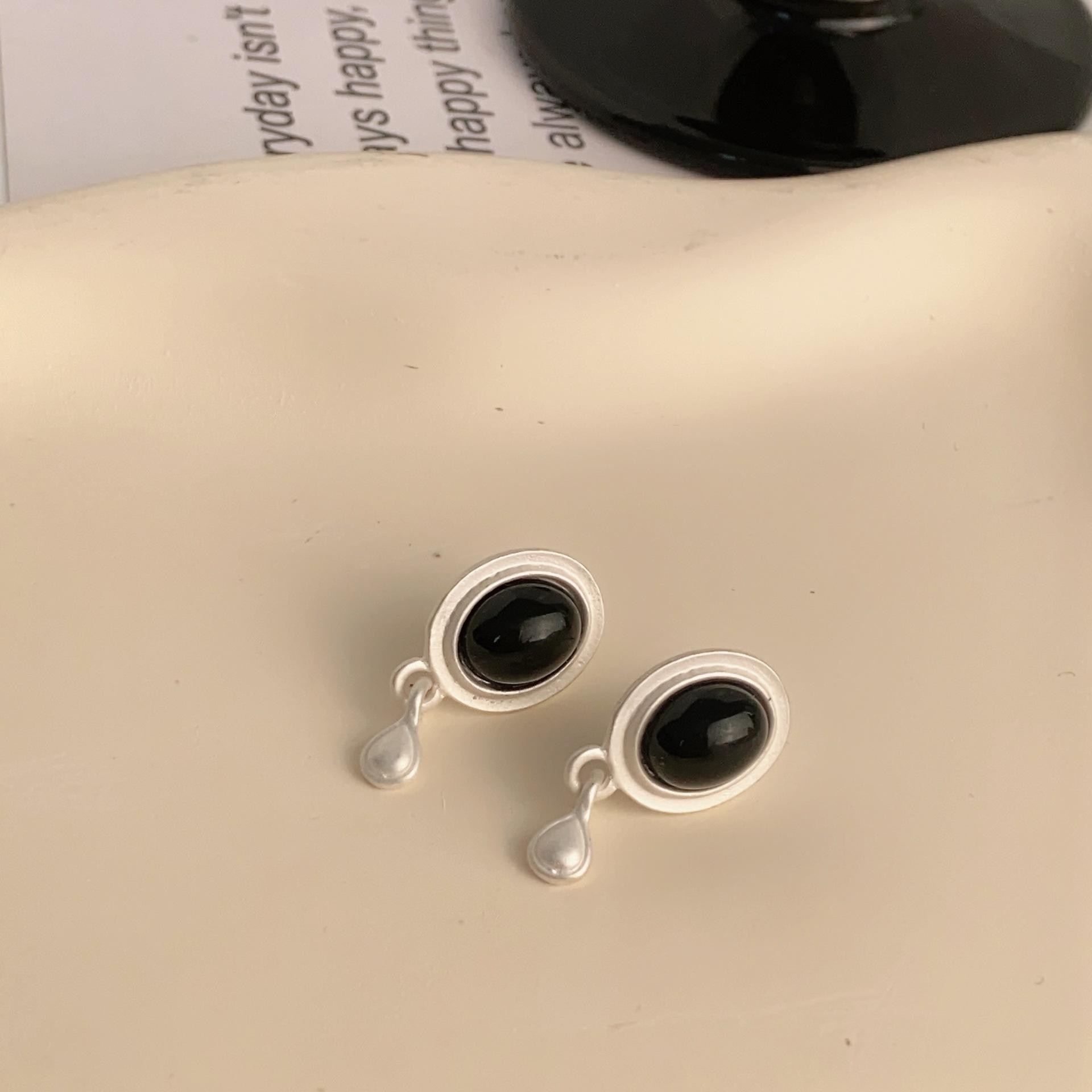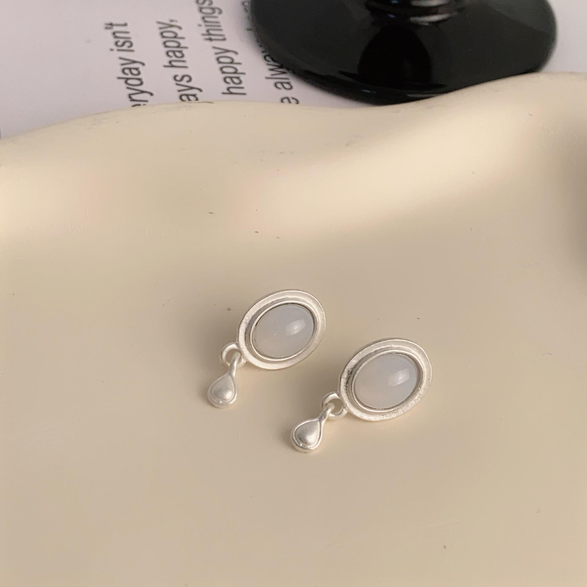 Pendientes colgantes de metal retro francés con diseño de nicho, elegantes pendientes de botón para mujer, exquisitos pendientes mate avanzados con clip para la oreja