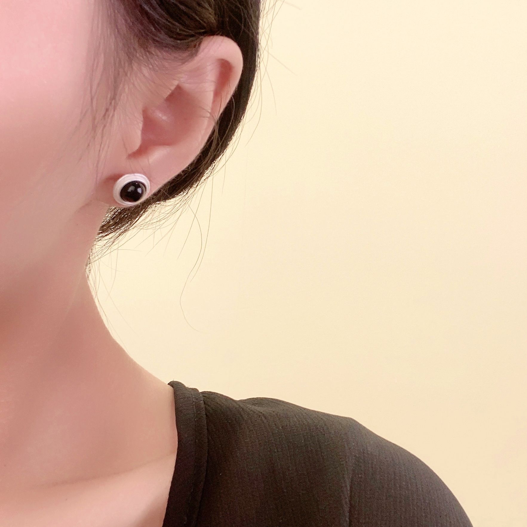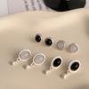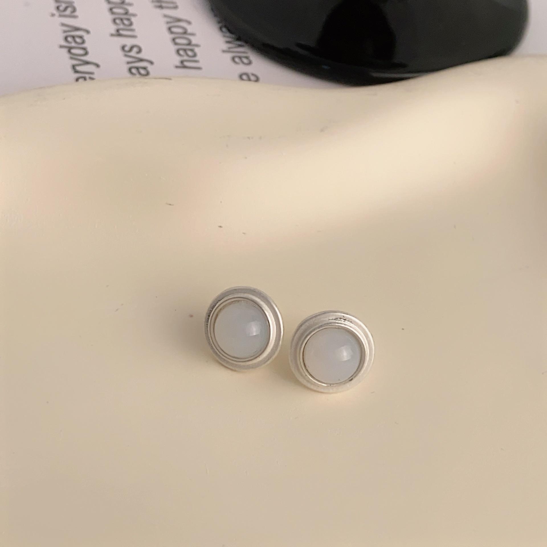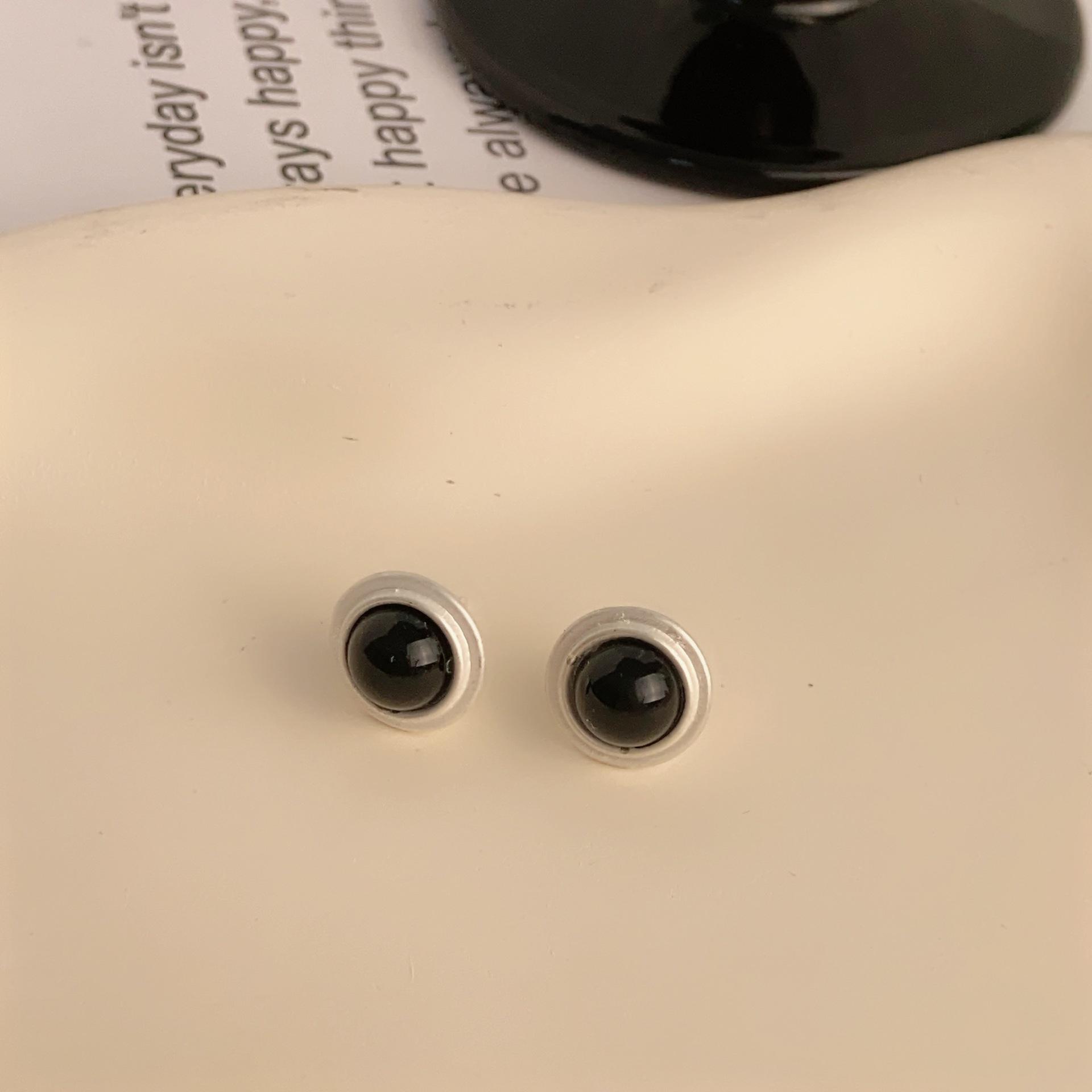 Matte metal round black opal stud earrings, Matte metal round white opal stud earrings