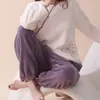 Ropa de casa abrigada de otoño e invierno para mujer, traje grueso, ropa de casa bordada de manga larga, pantalones con bolsillos de doble cara, pijamas