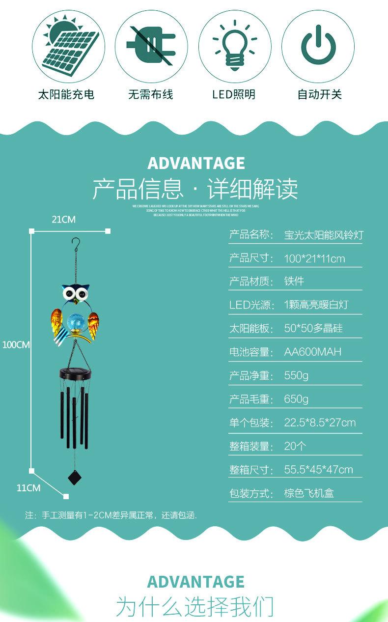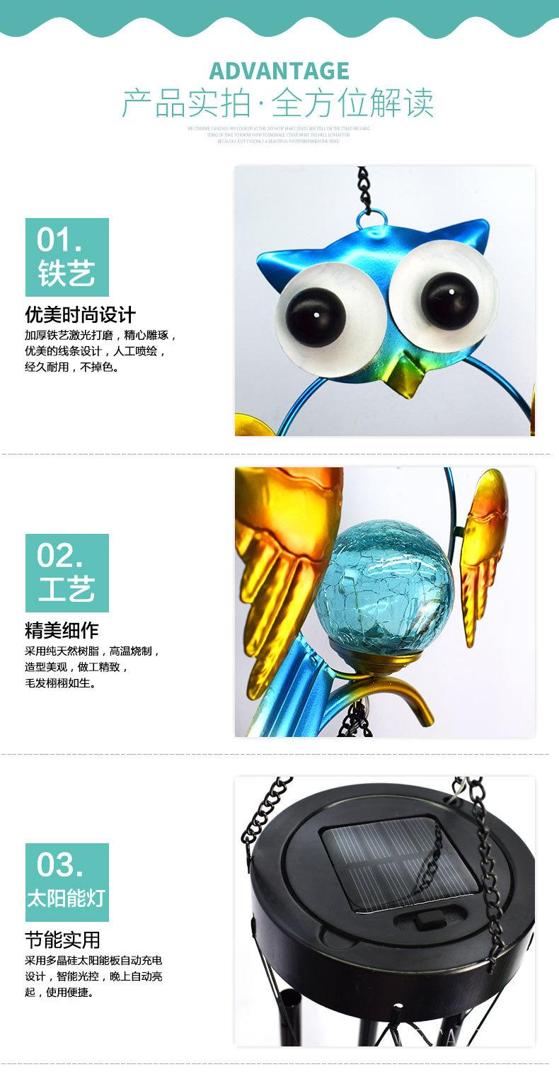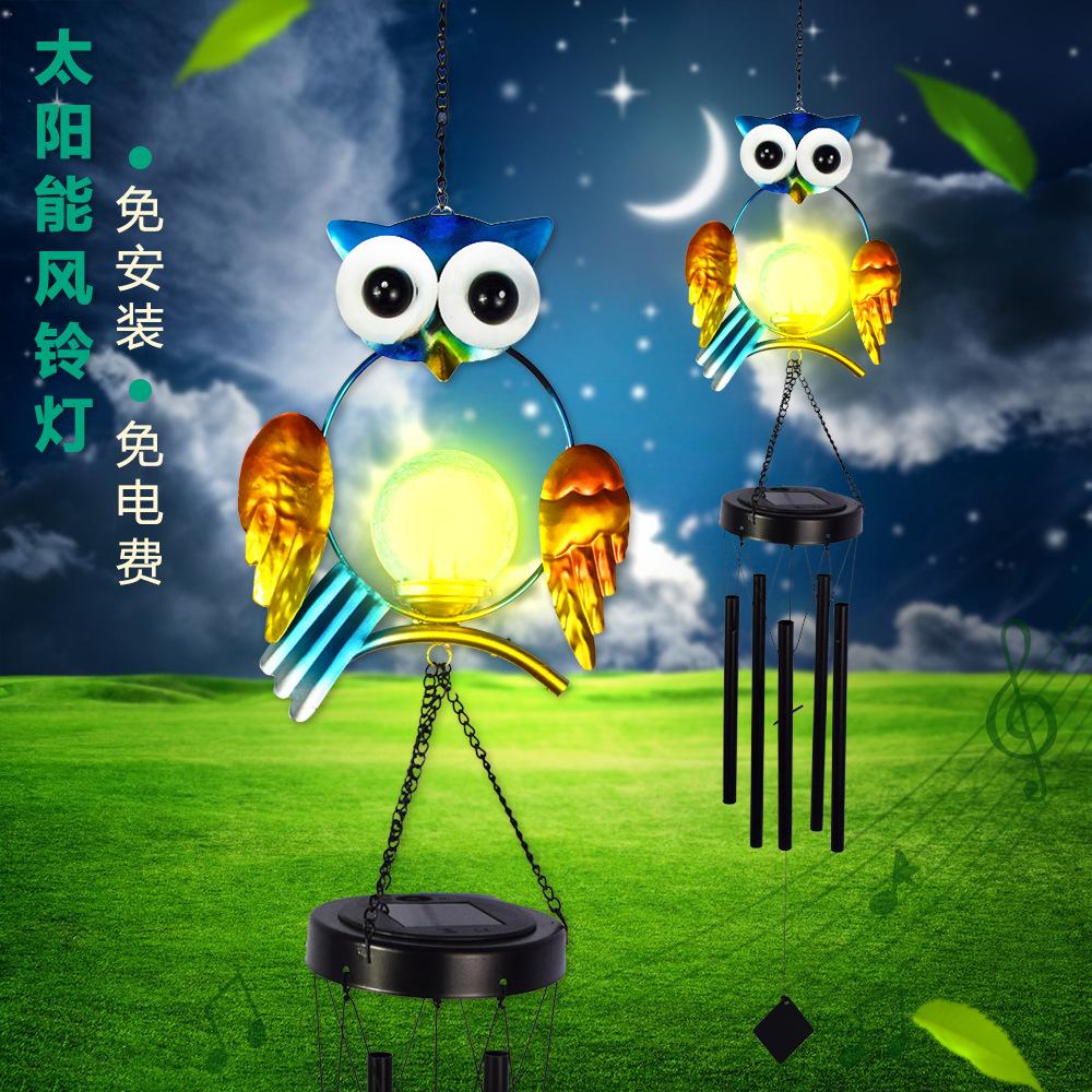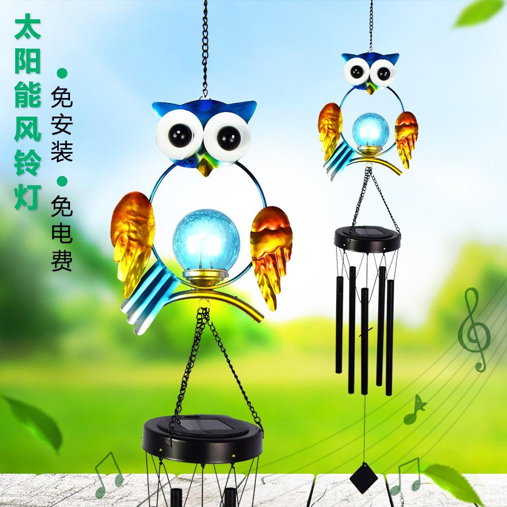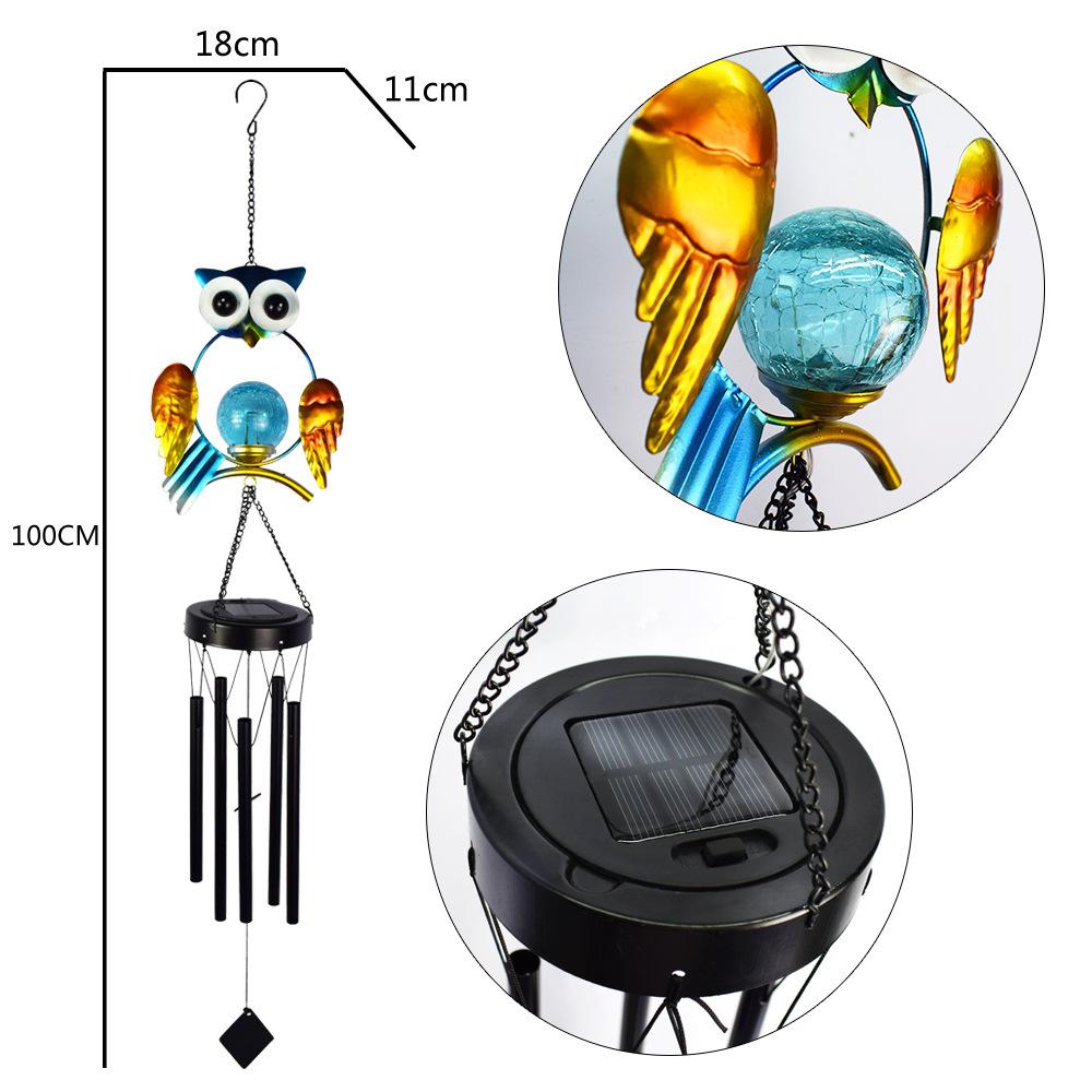 Luz Solar Exterior para Patio, Hogar, Jardín, Impermeable, Búho Azul, Carrillón de Viento, Reflector de Hierro, Decoración de Jardín