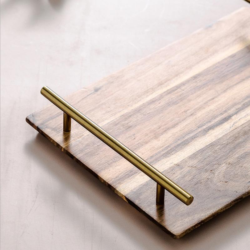 Nórdico Transfronterizo con Asa Madera de Acacia Plato Salah Plato para Bistec Desayuno Fruta Té de la Tarde Agua Snack Bandeja para Pastel