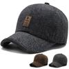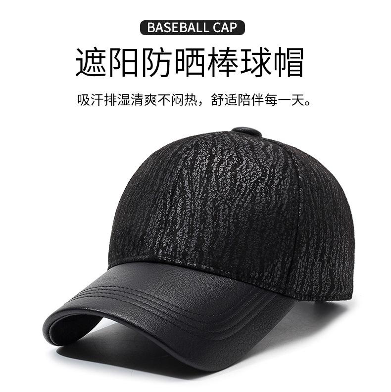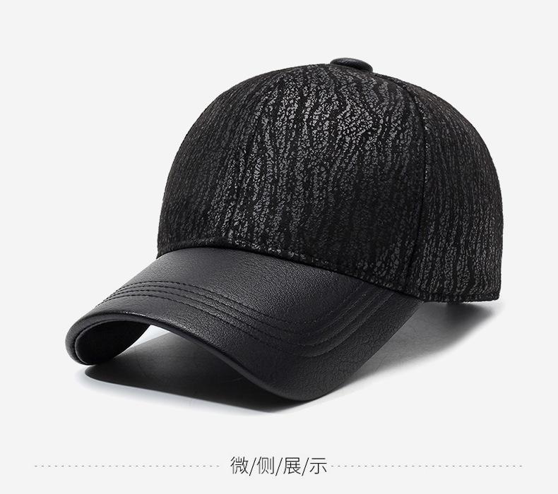 Gorra de béisbol sencilla y nueva para otoño e invierno para hombre, gorra informal de PU, gorra con visera cálida para exteriores para personas de mediana edad y mayores
