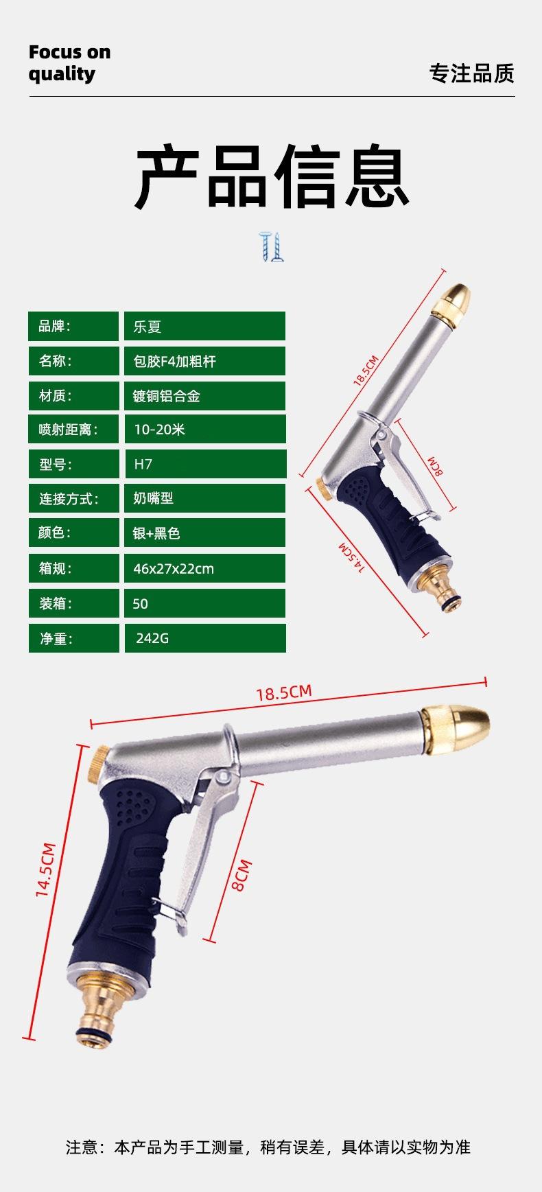 Fábrica fuente nuevo cuerpo de pistola de metal galvanizado recubierto de aleación de aluminio cobre plateado poli presión negrita alta presión pistola de agua para lavado de autos