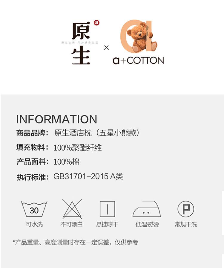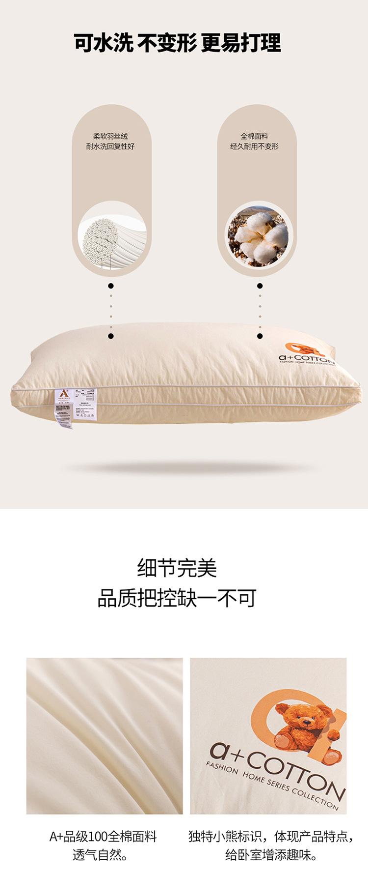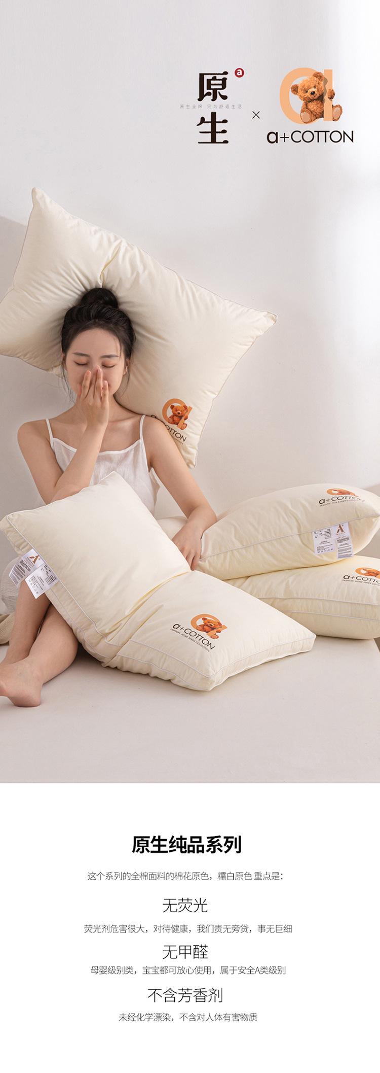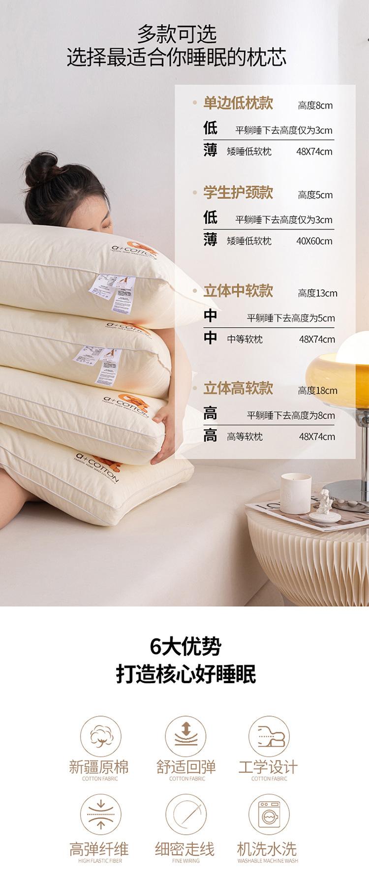 Almohada de algodón 100% antibacteriano de clase A, núcleo de almohada, almohada lavable de hotel de cinco estrellas, protección para la columna cervical para ayudar a dormir sin colapsar