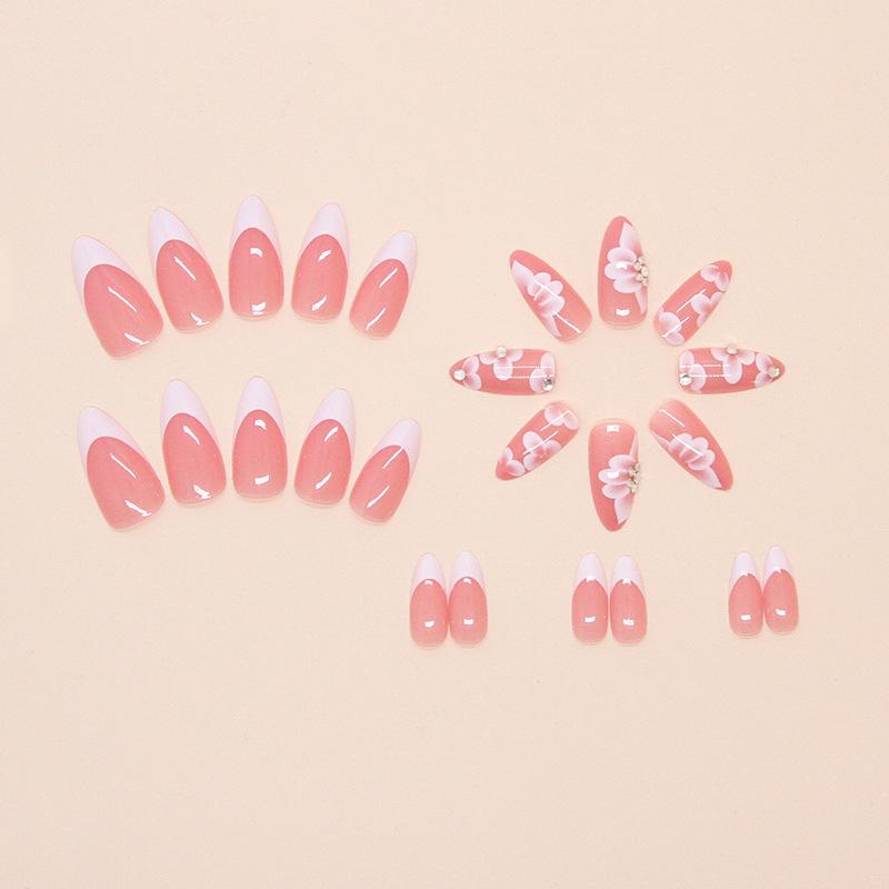 Parche para uñas extraíble, diseño de flor francesa simple, para uñas postizas, 24 piezas