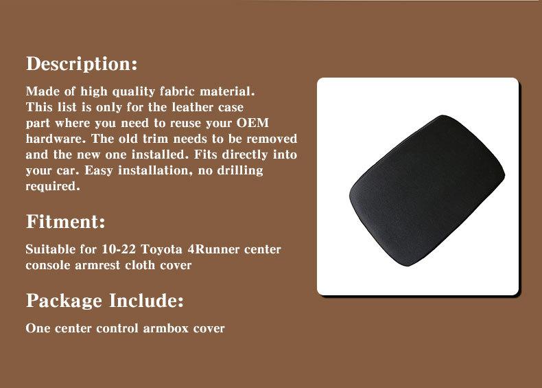 Adecuado para Toyota 4Runner 10-22, consola central, apoyabrazos, cubierta de tela, procesamiento de modificación interior del automóvil, personalización