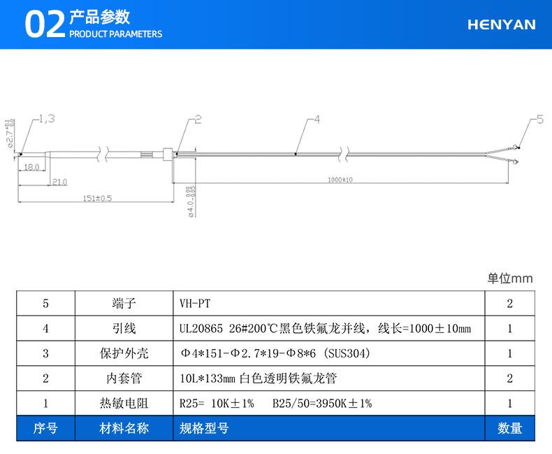 Sonda de detección de temperatura de alta precisión de acero inoxidable 304 para hervidor de agua caliente, dispensador de agua, sensor de temperatura NTC