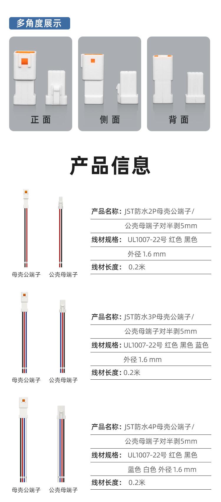 Jst waterproof 3p female shell male terminal half peel 5mm