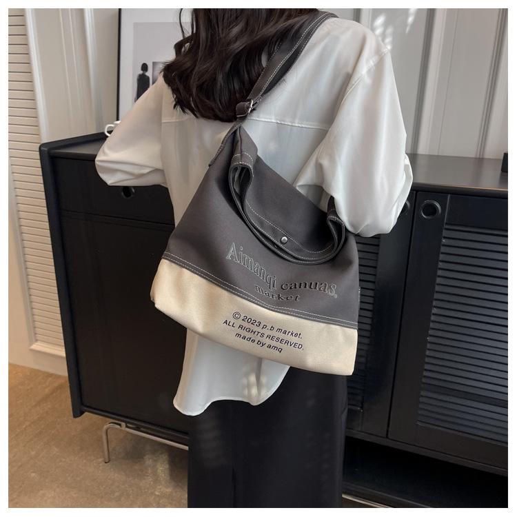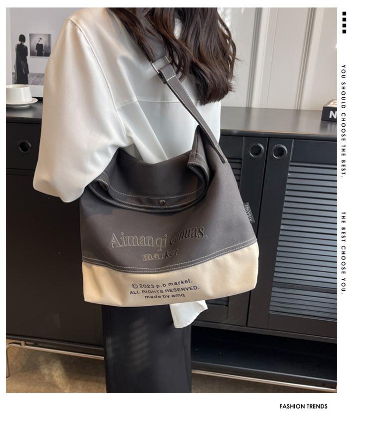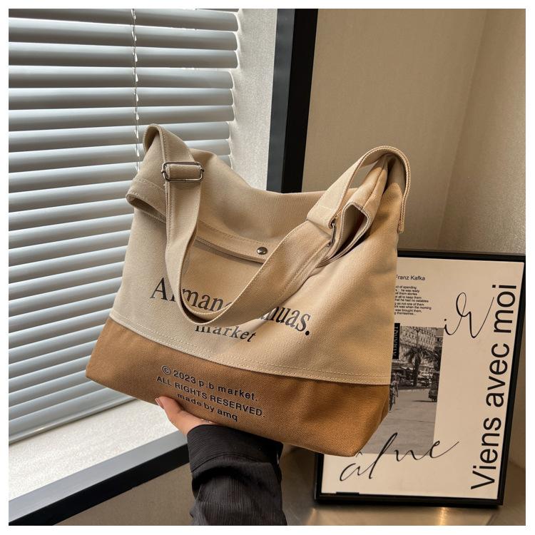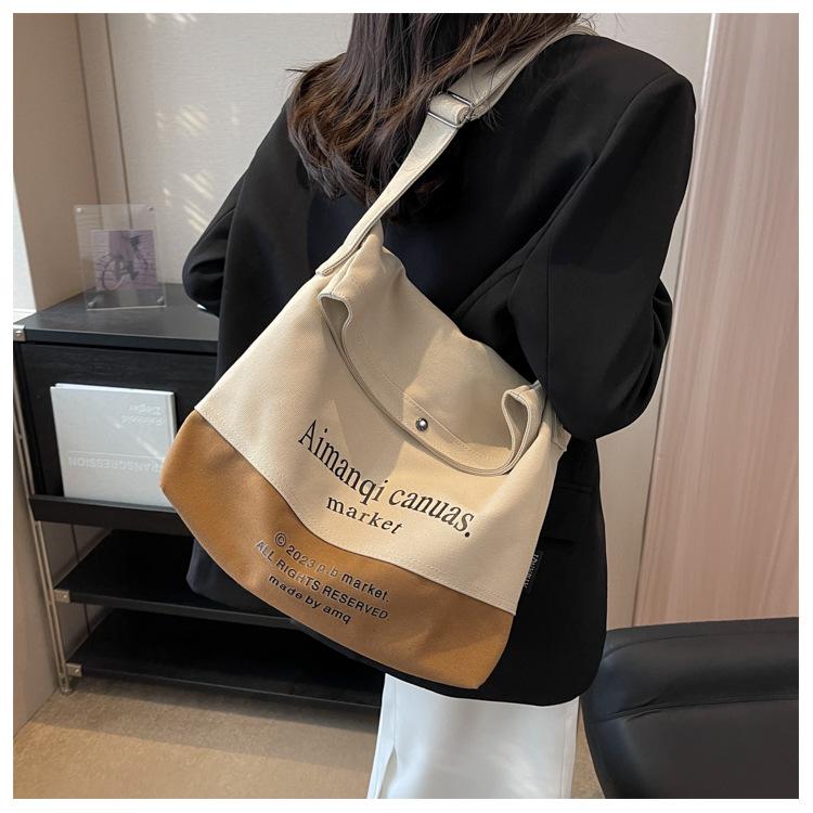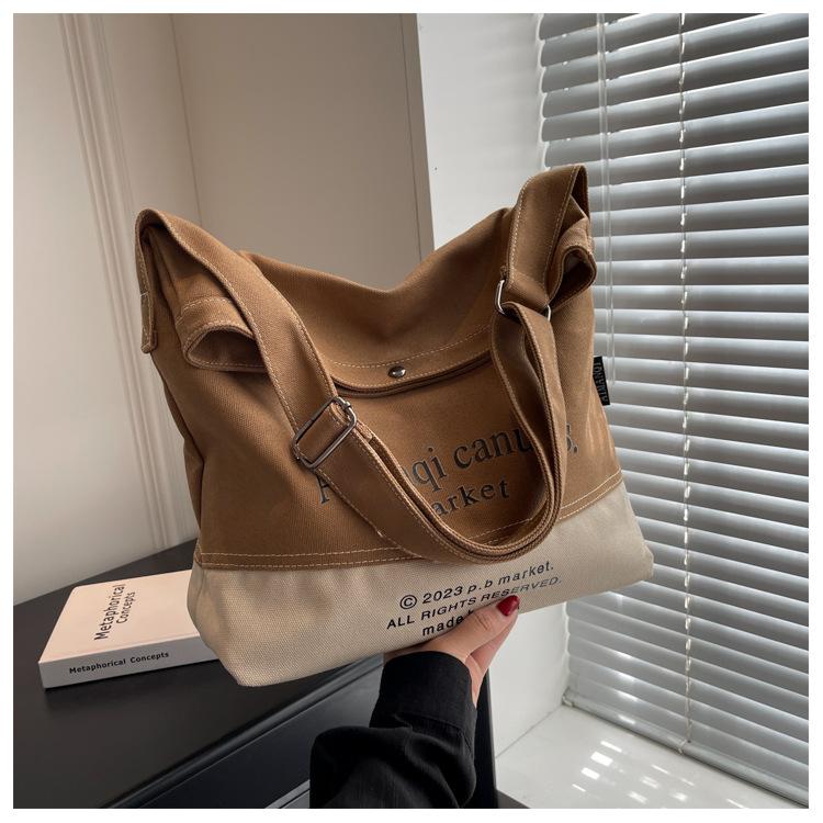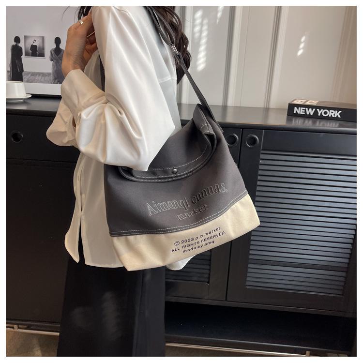 Bolso de Lona para Mujer de Gran Capacidad 2025 Nueva Textura Color Contrastante Verano Bolso Bandolera de Hombro Único Popular Bolso Tote para Ir al Trabajo