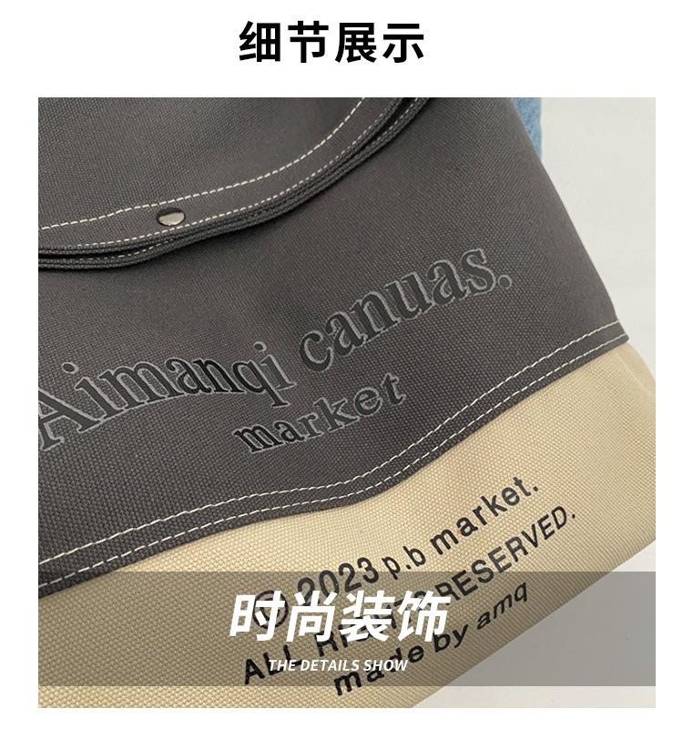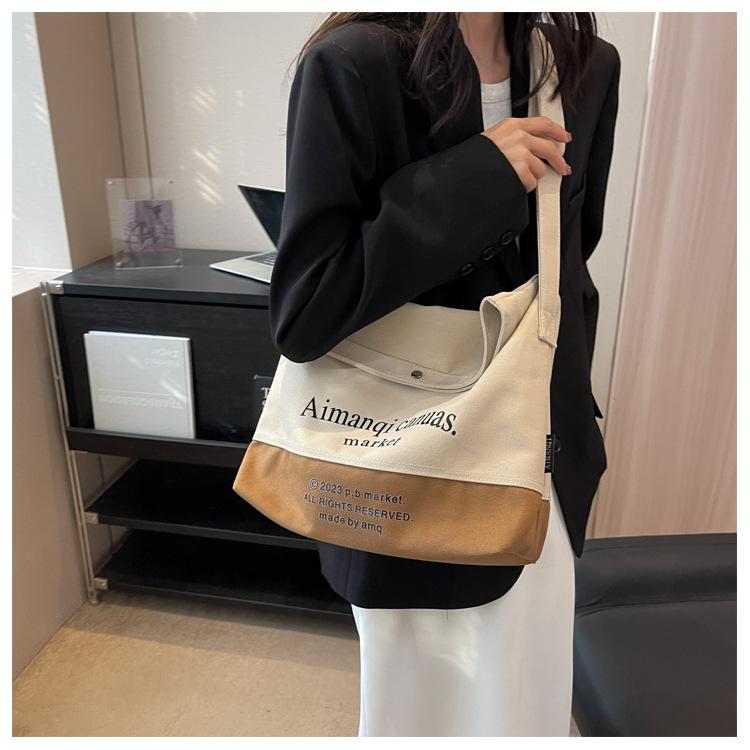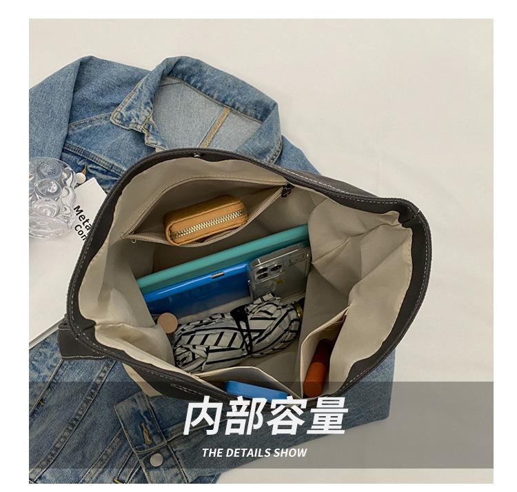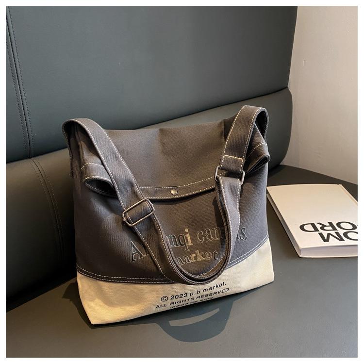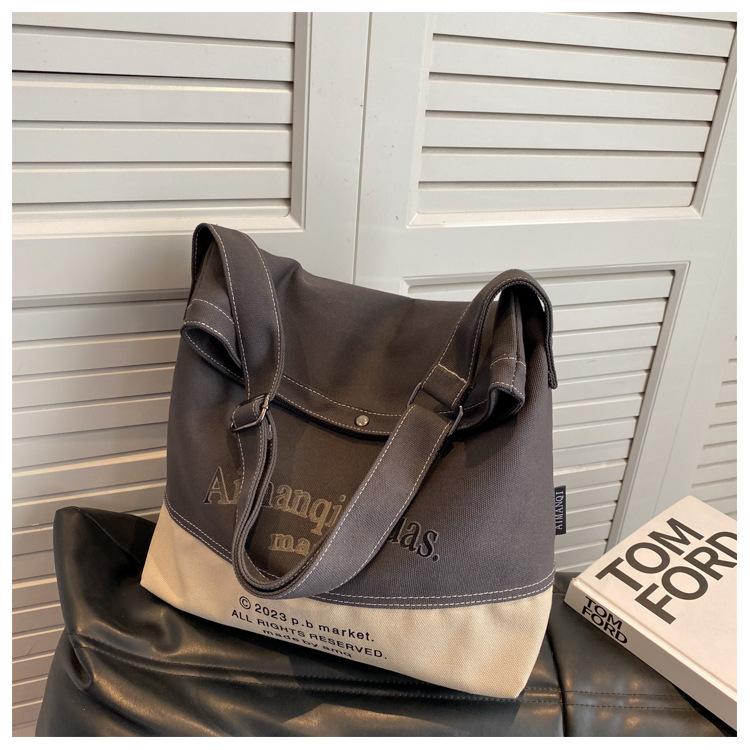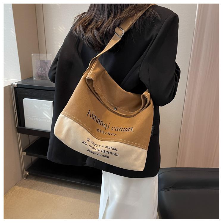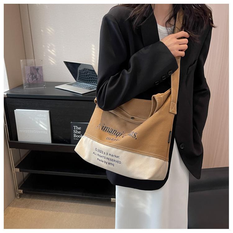 Bolso de Lona para Mujer de Gran Capacidad 2025 Nueva Textura Color Contrastante Verano Bolso Bandolera de Hombro Único Popular Bolso Tote para Ir al Trabajo