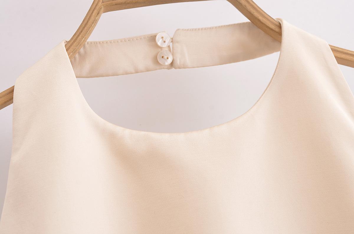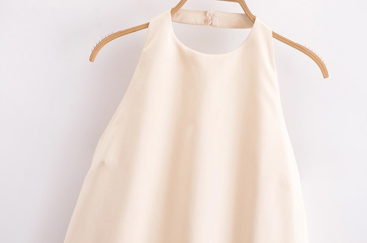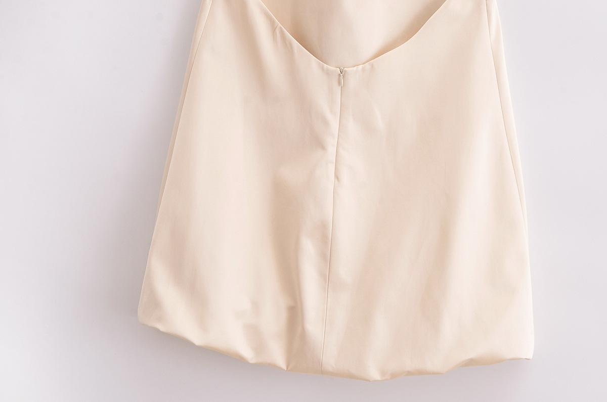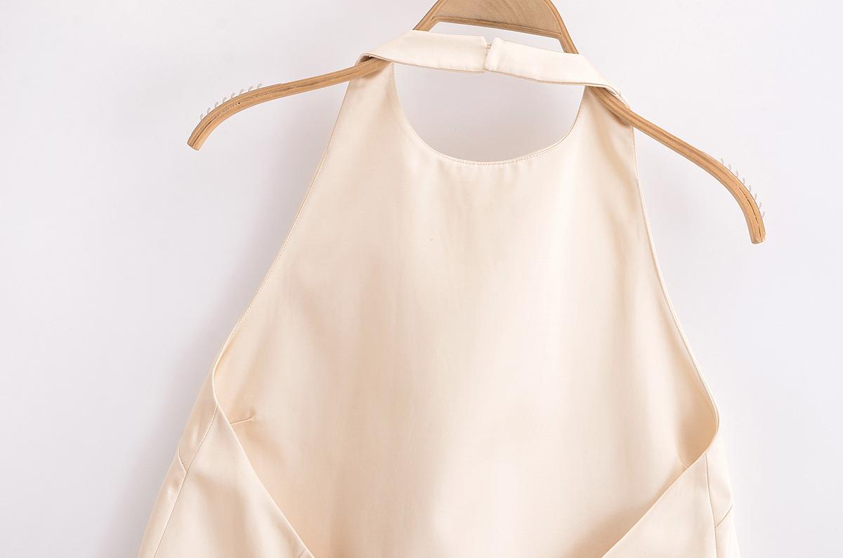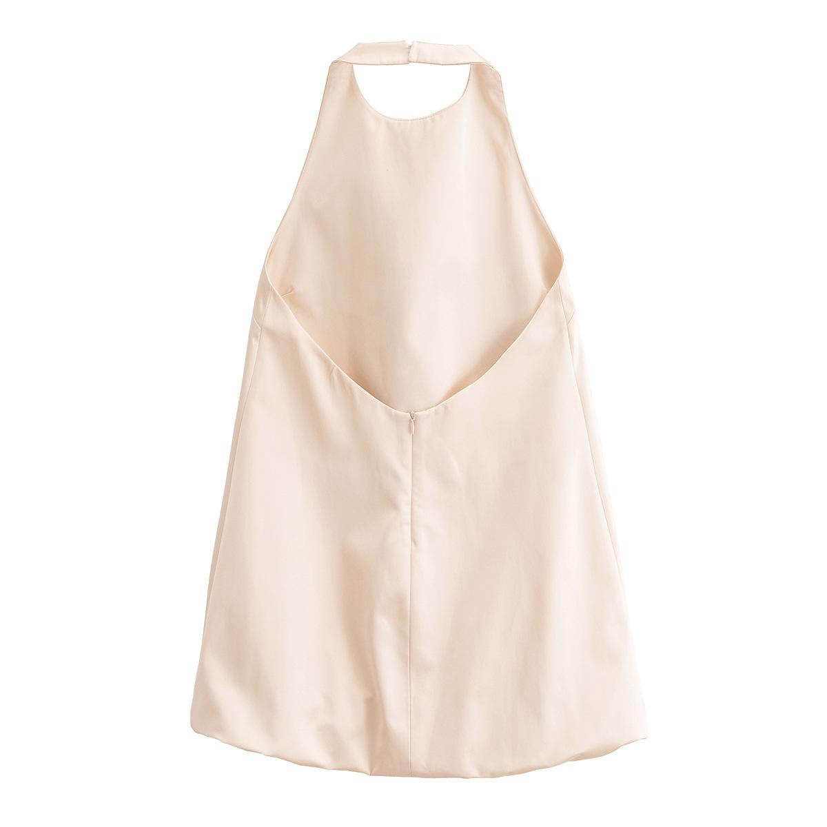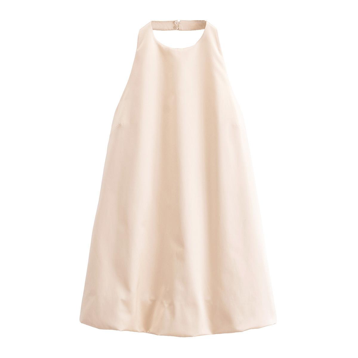 Vestido holgado con tirantes en forma de A color beige sin espalda y cuello colgante de nueva moda europea y americana de primavera y verano de 2024 para mujer