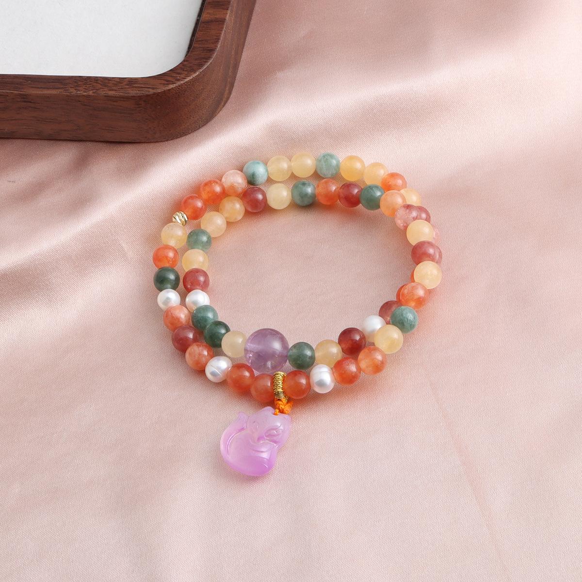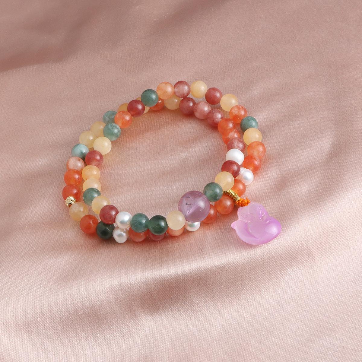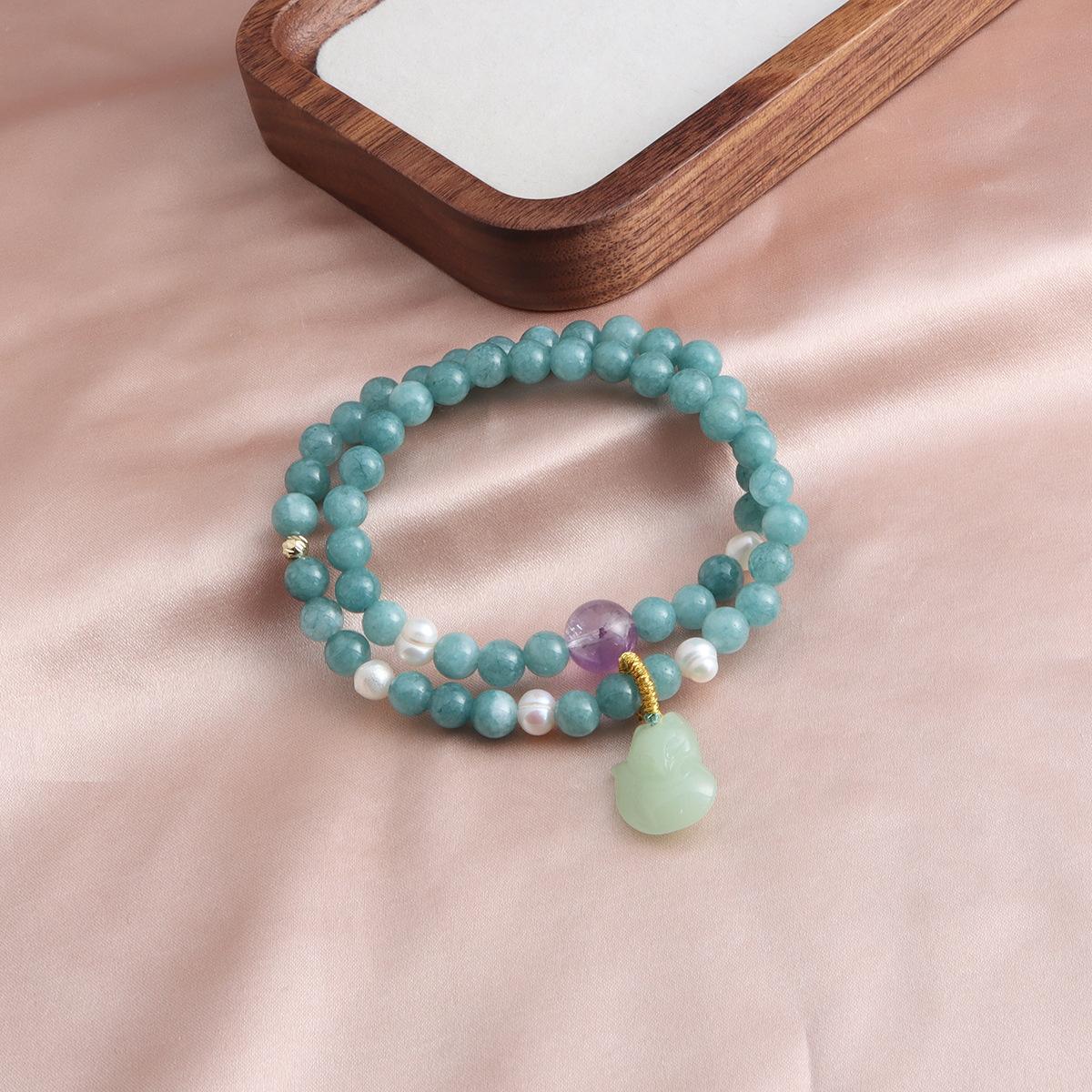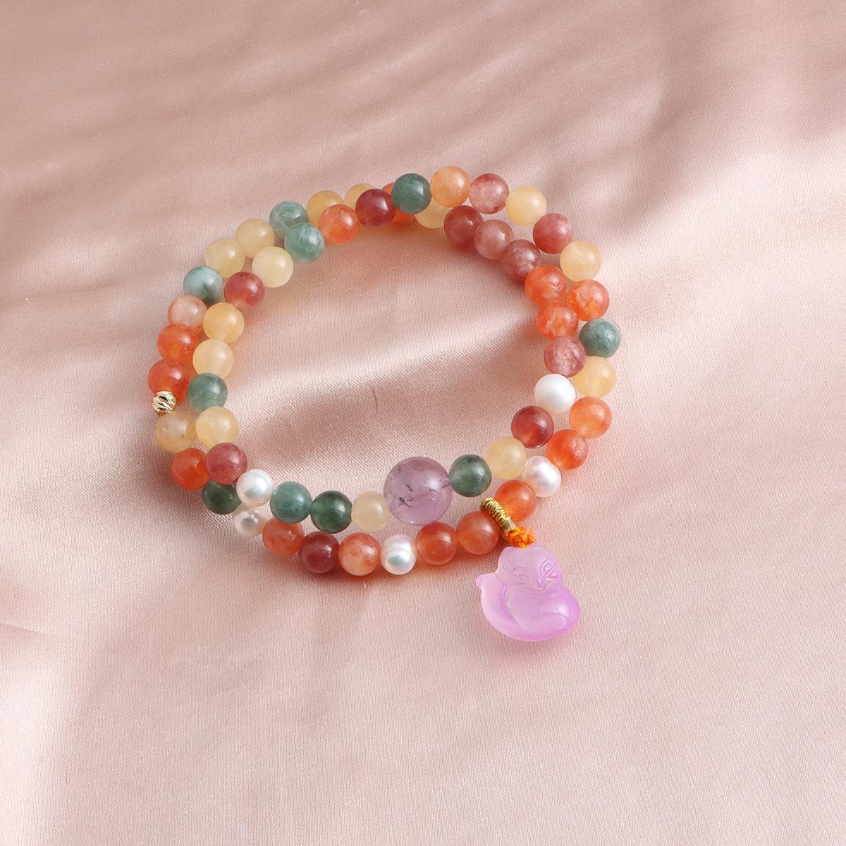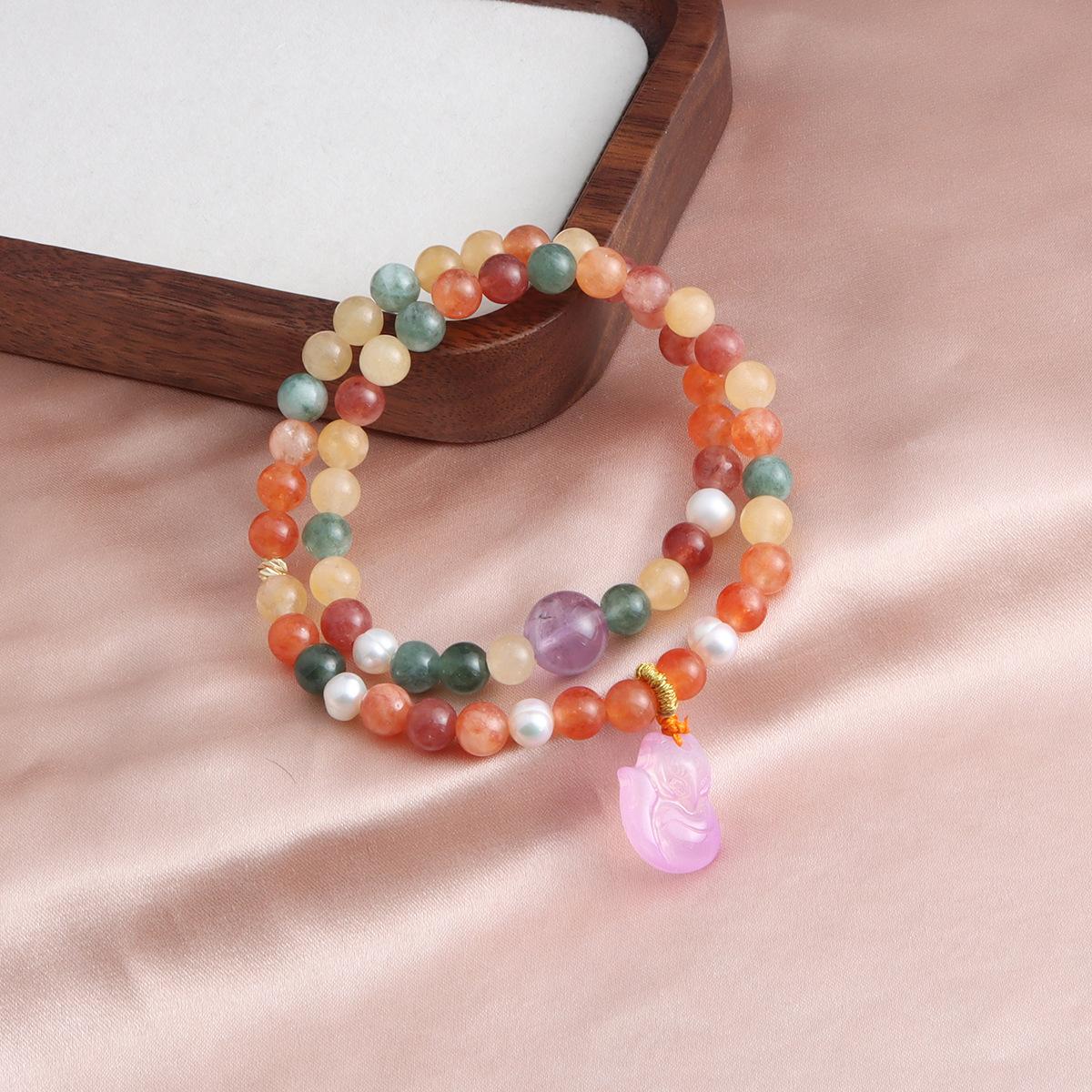 Light color gold silk jade double circle safety buckle bracelet, Mixed color gold silk jade double circle fox ...
