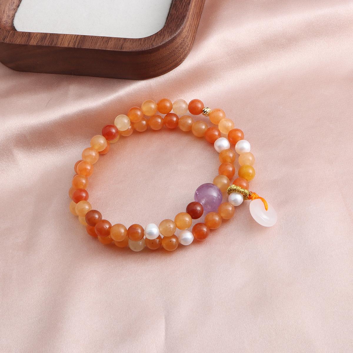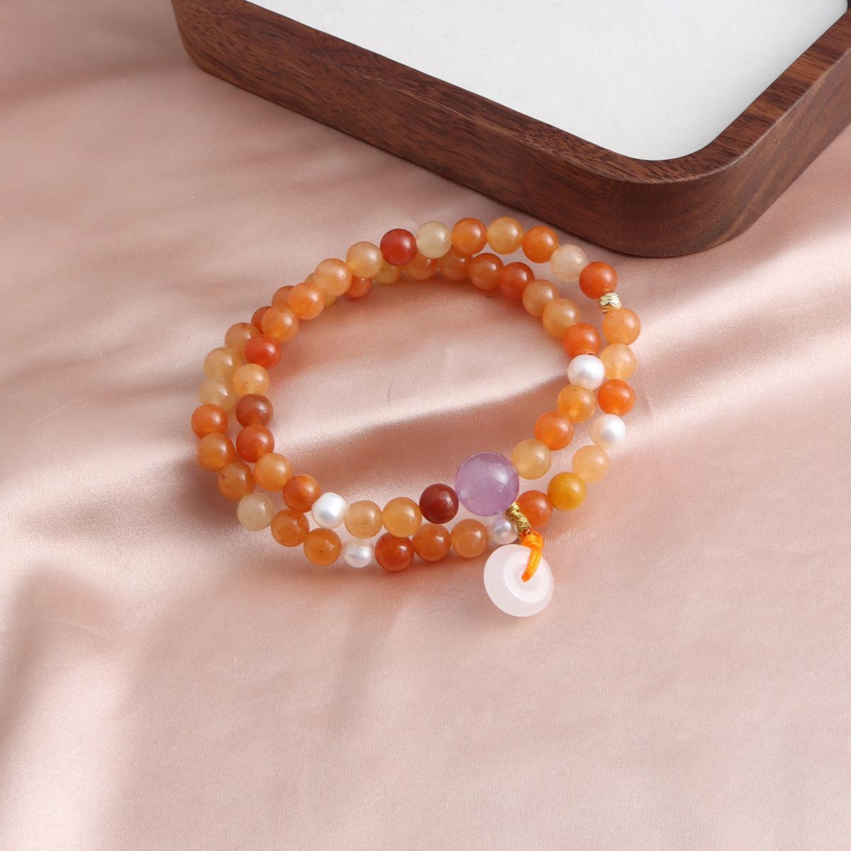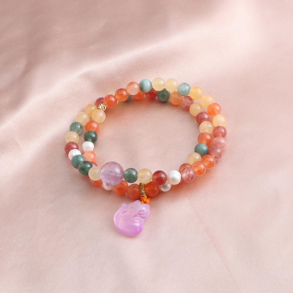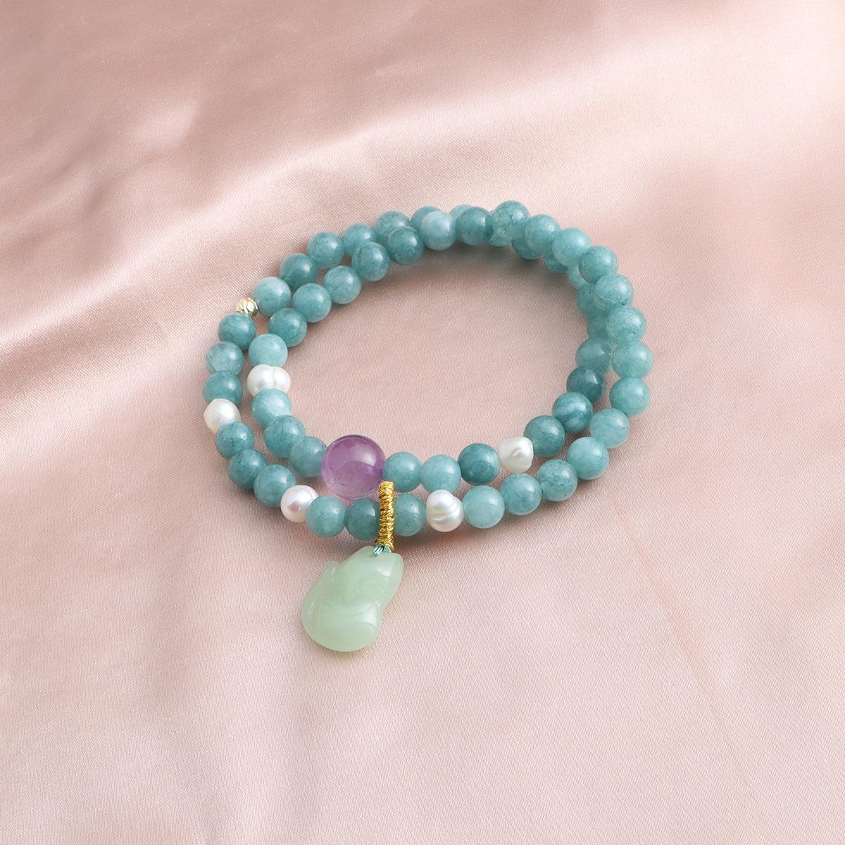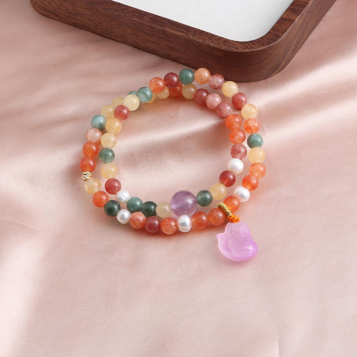 Light color gold silk jade double circle safety buckle bracelet, Mixed color gold silk jade double circle fox ...