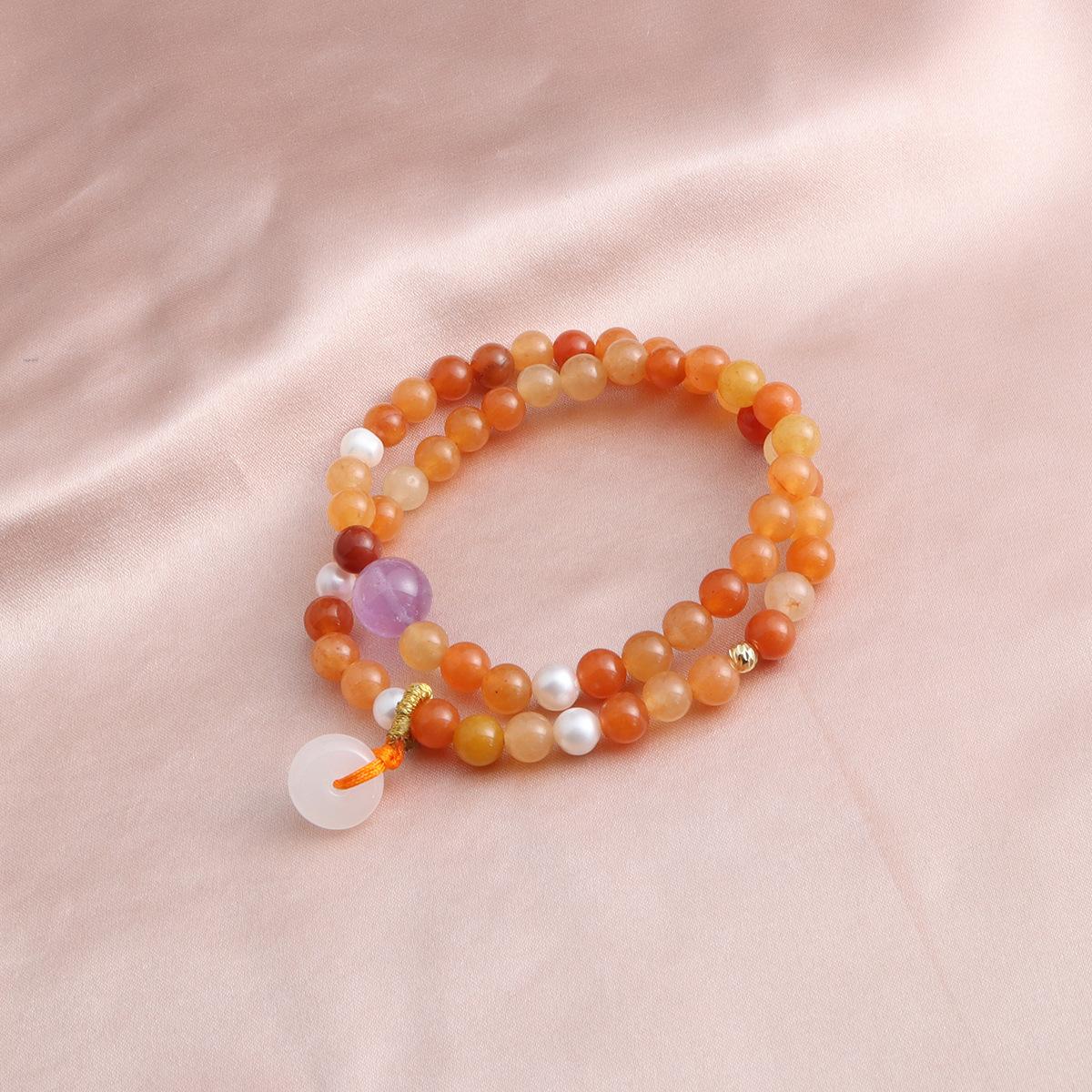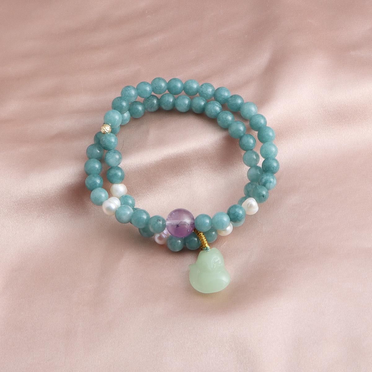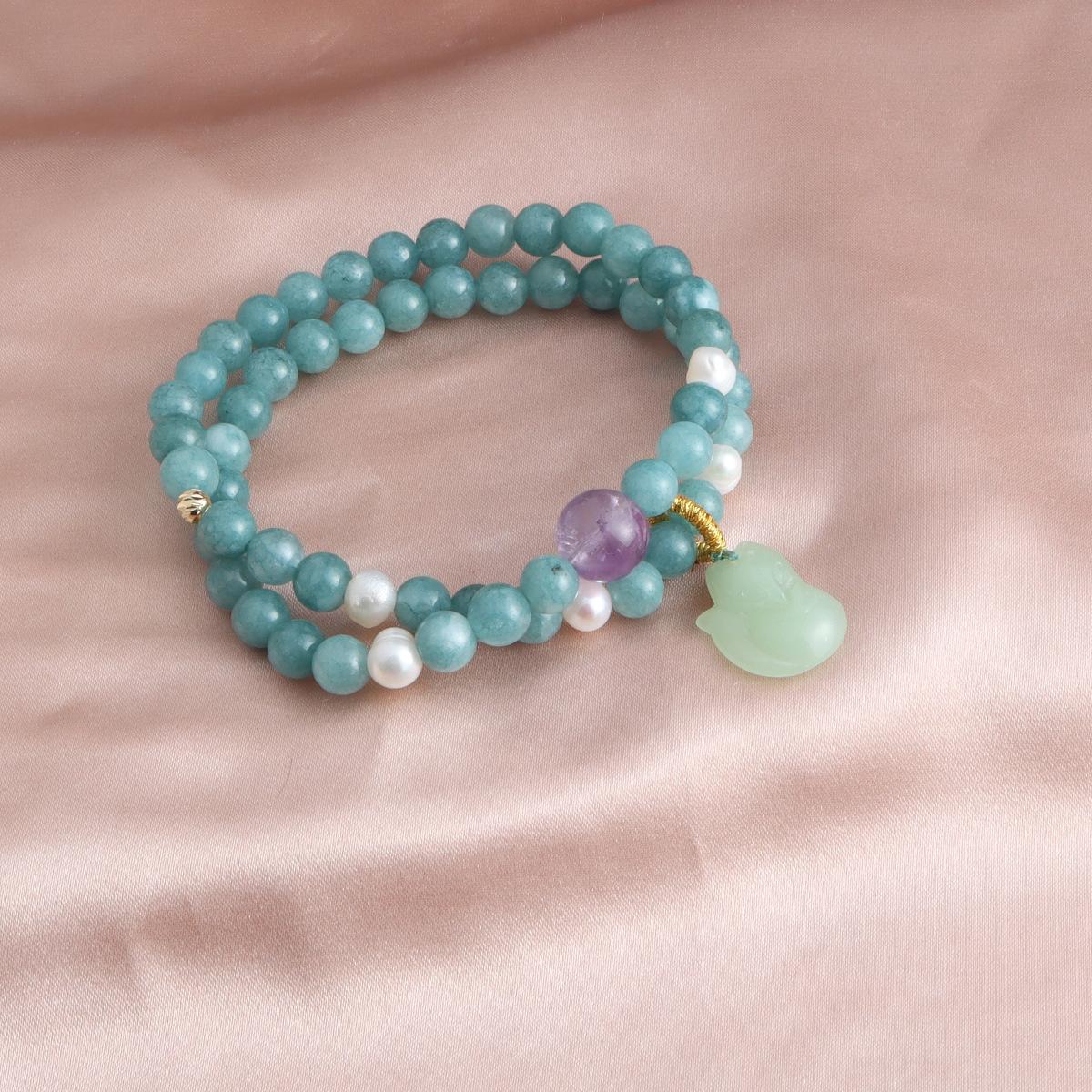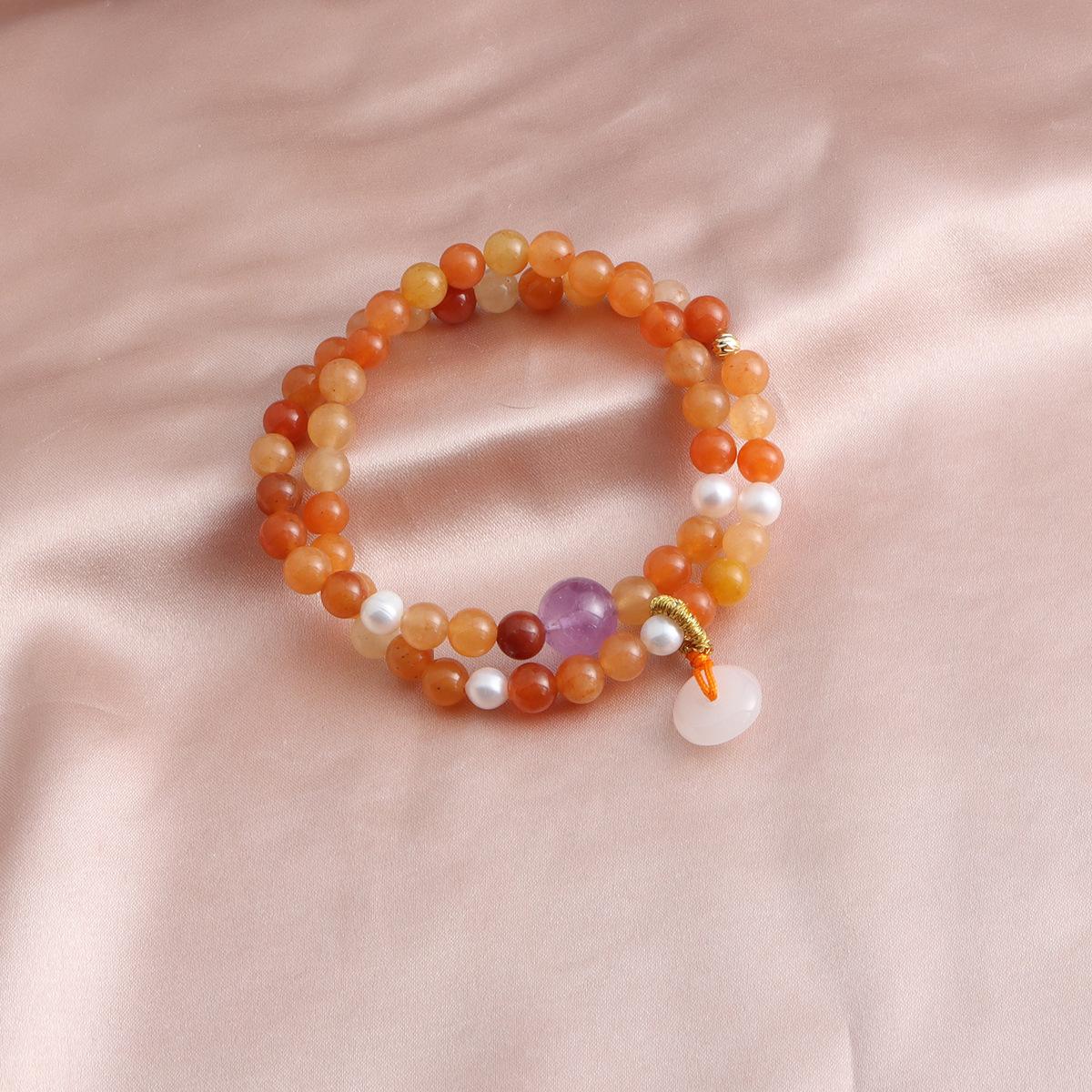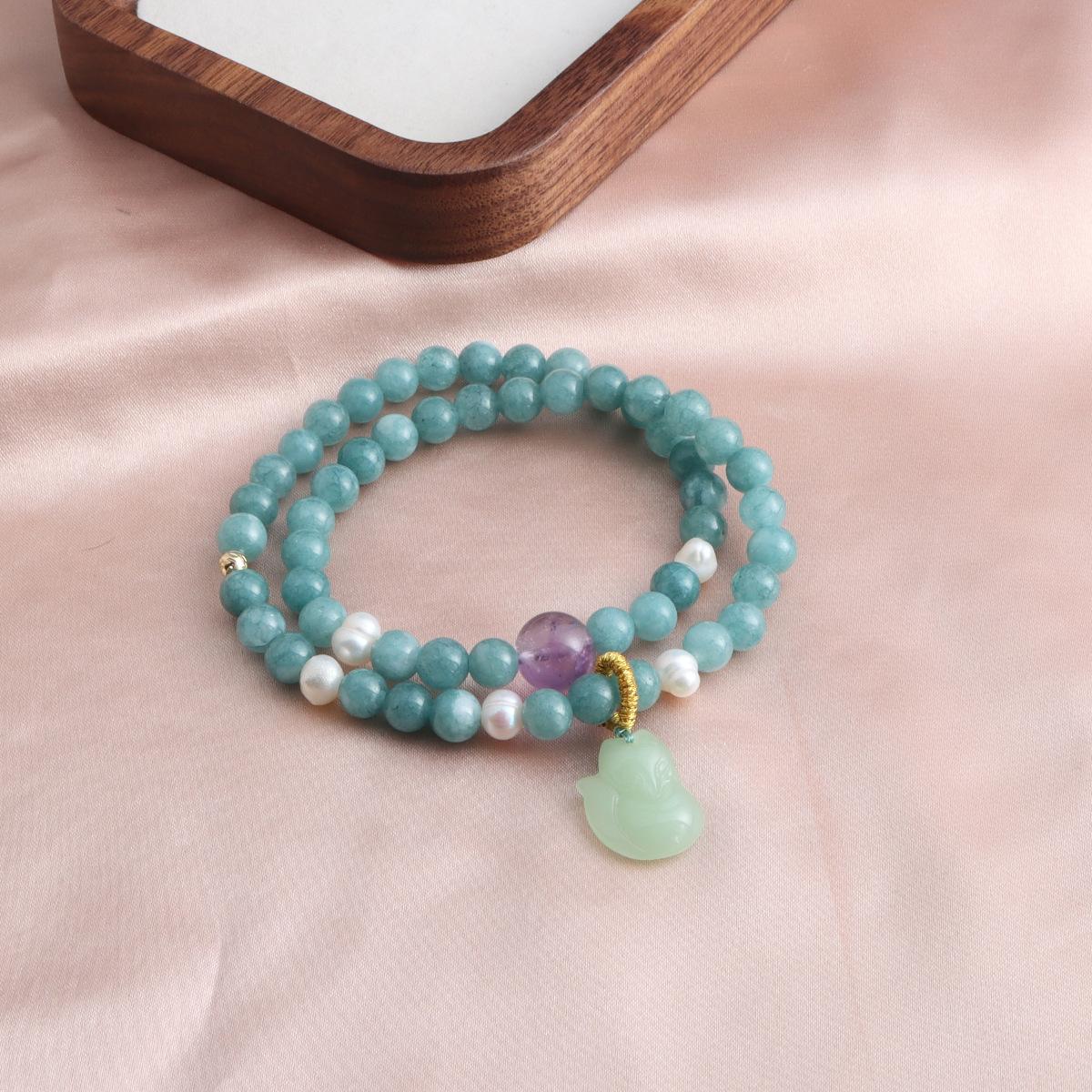 Light color gold silk jade double circle safety buckle bracelet, Mixed color gold silk jade double circle fox ...