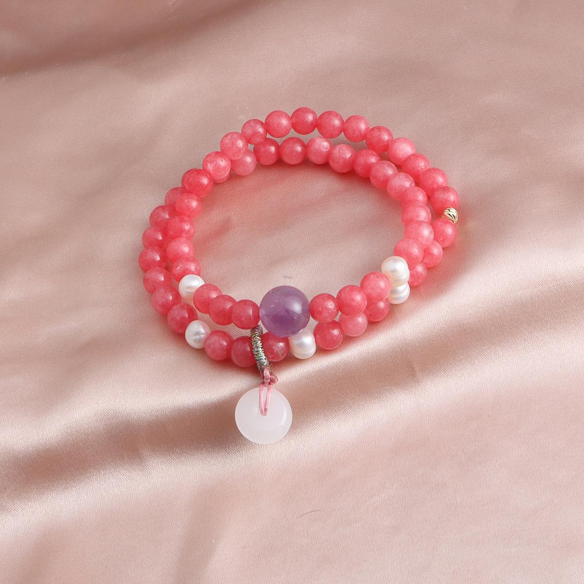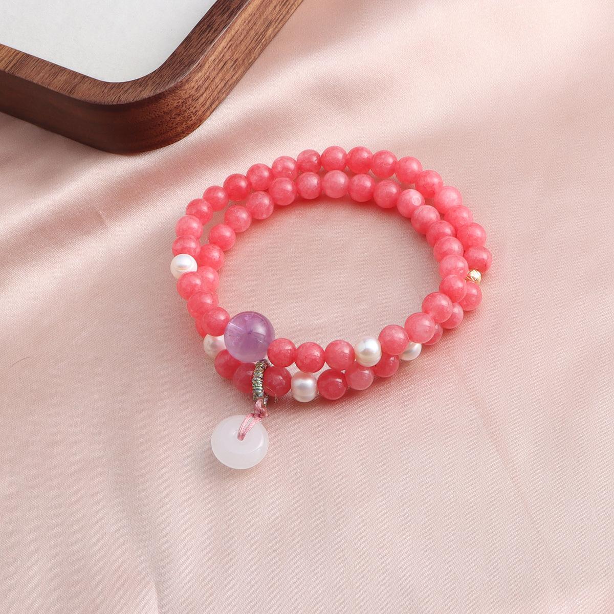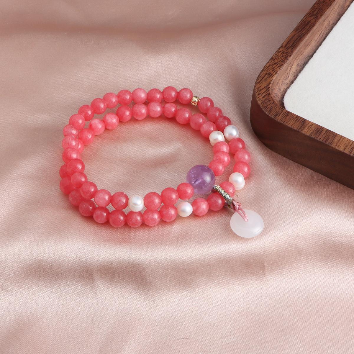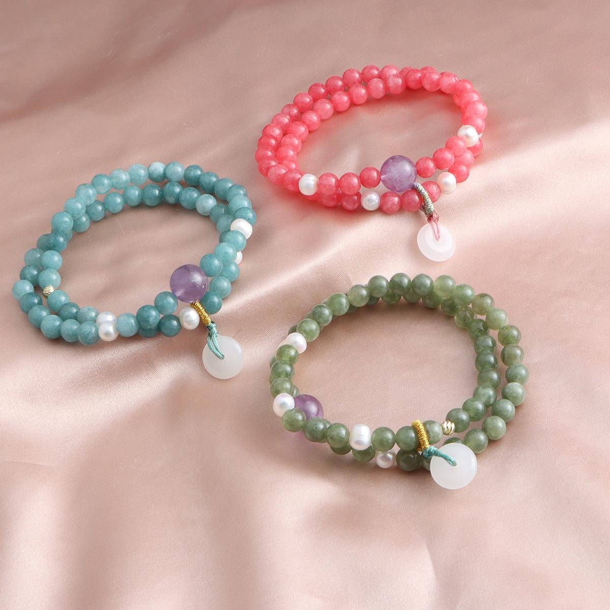 Templo Mismo Estilo Nuevo Estilo Chino Pulsera Jade Seda Dorada Patrón Rojo Azul Patek Hebilla Ping An Pulsera de Cristal Doble Círculo Moda Nacional Hanfu