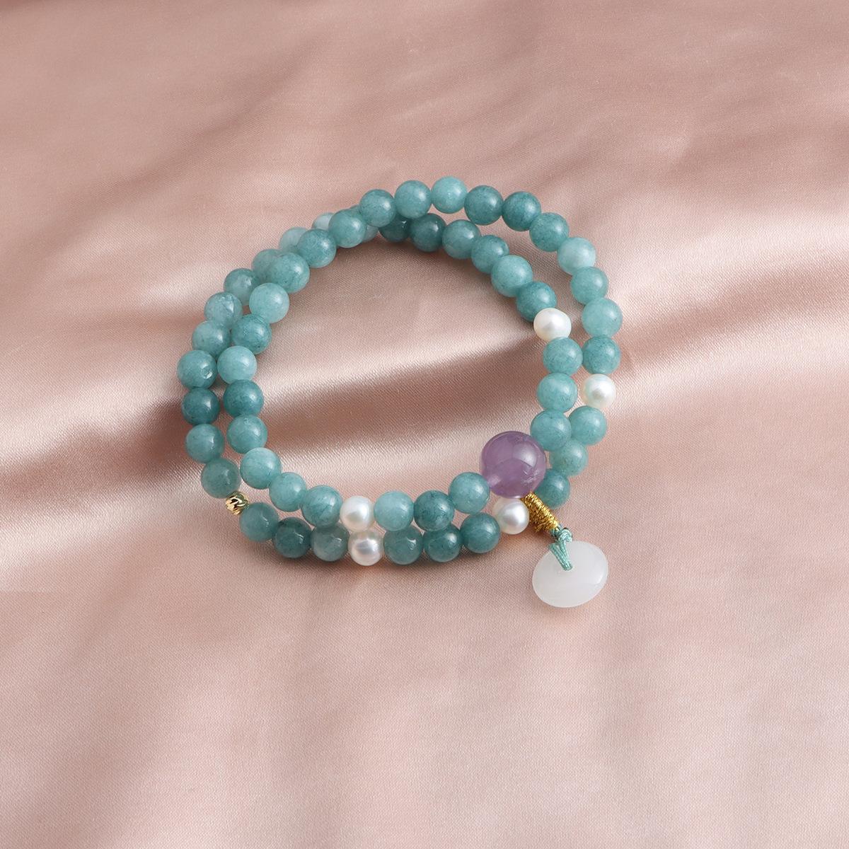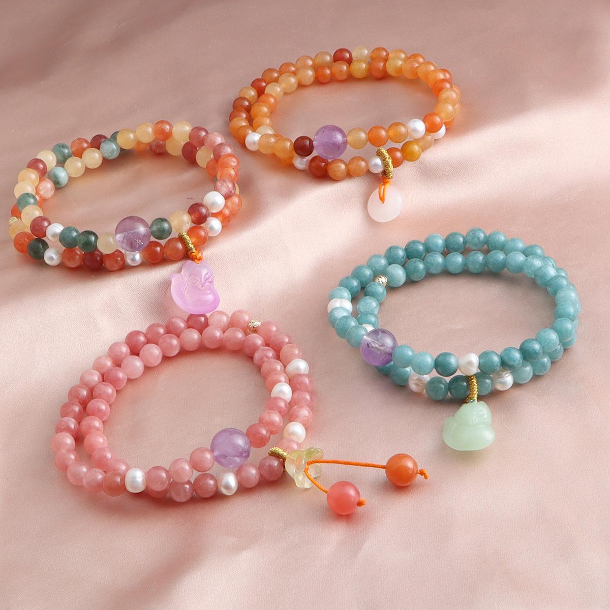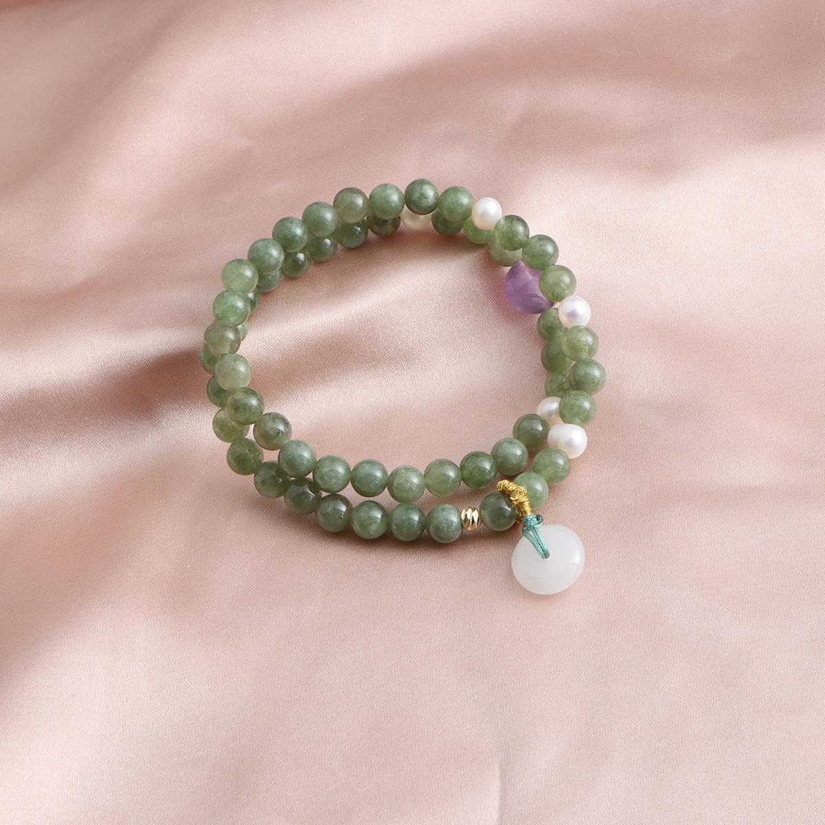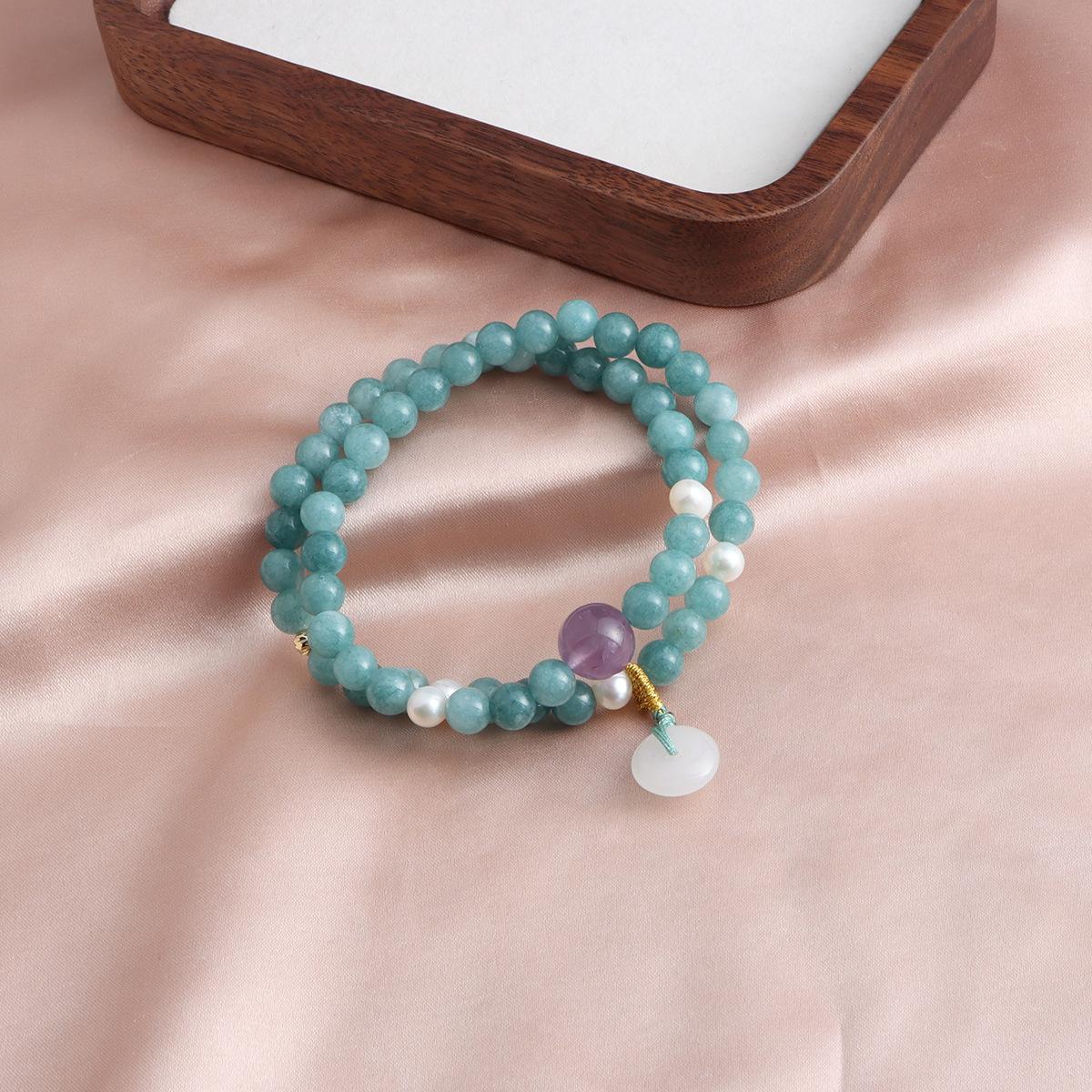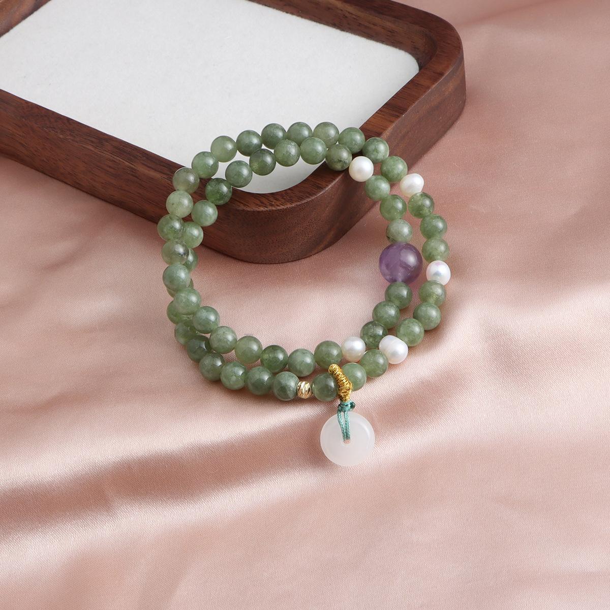 Templo Mismo Estilo Nuevo Estilo Chino Pulsera Jade Seda Dorada Patrón Rojo Azul Patek Hebilla Ping An Pulsera de Cristal Doble Círculo Moda Nacional Hanfu