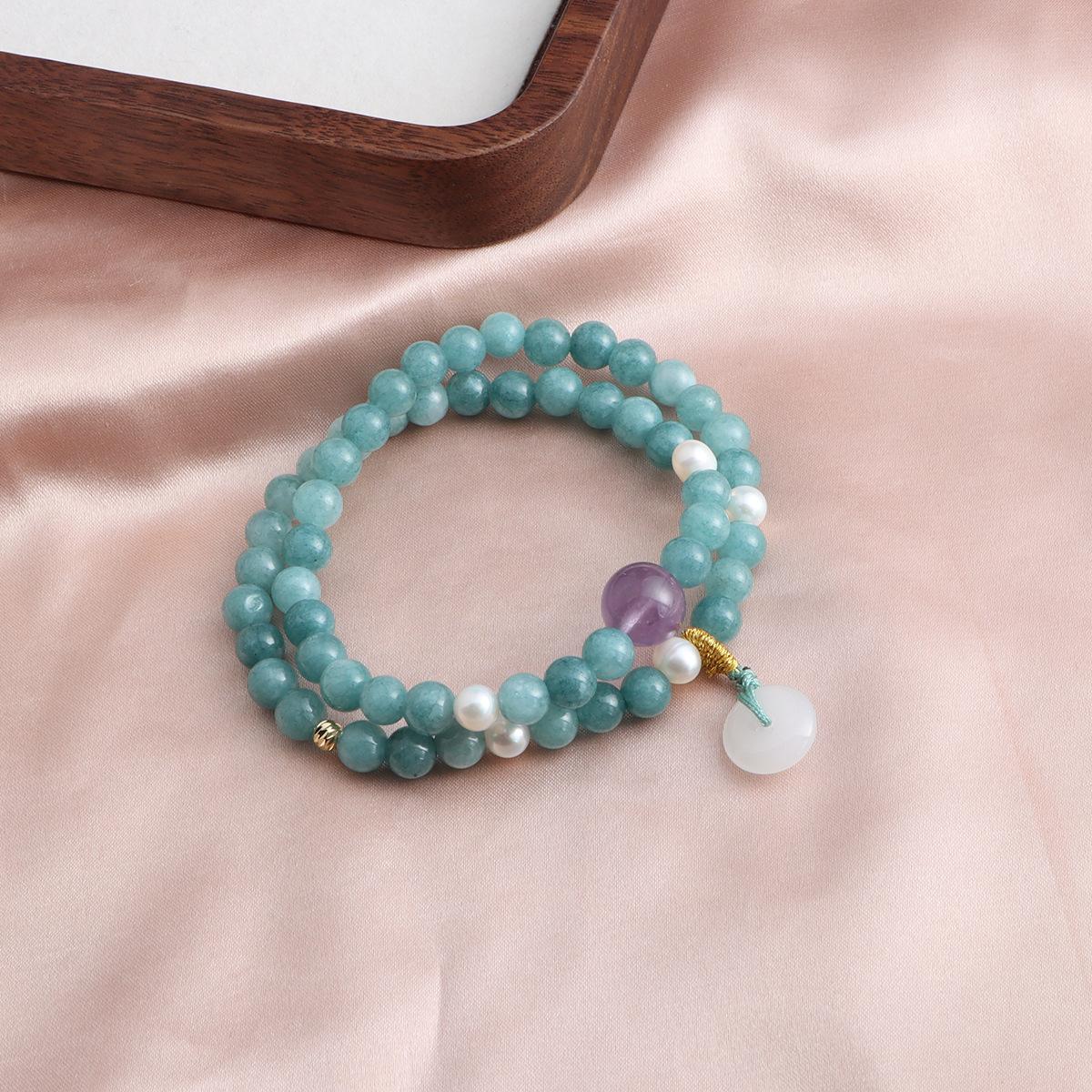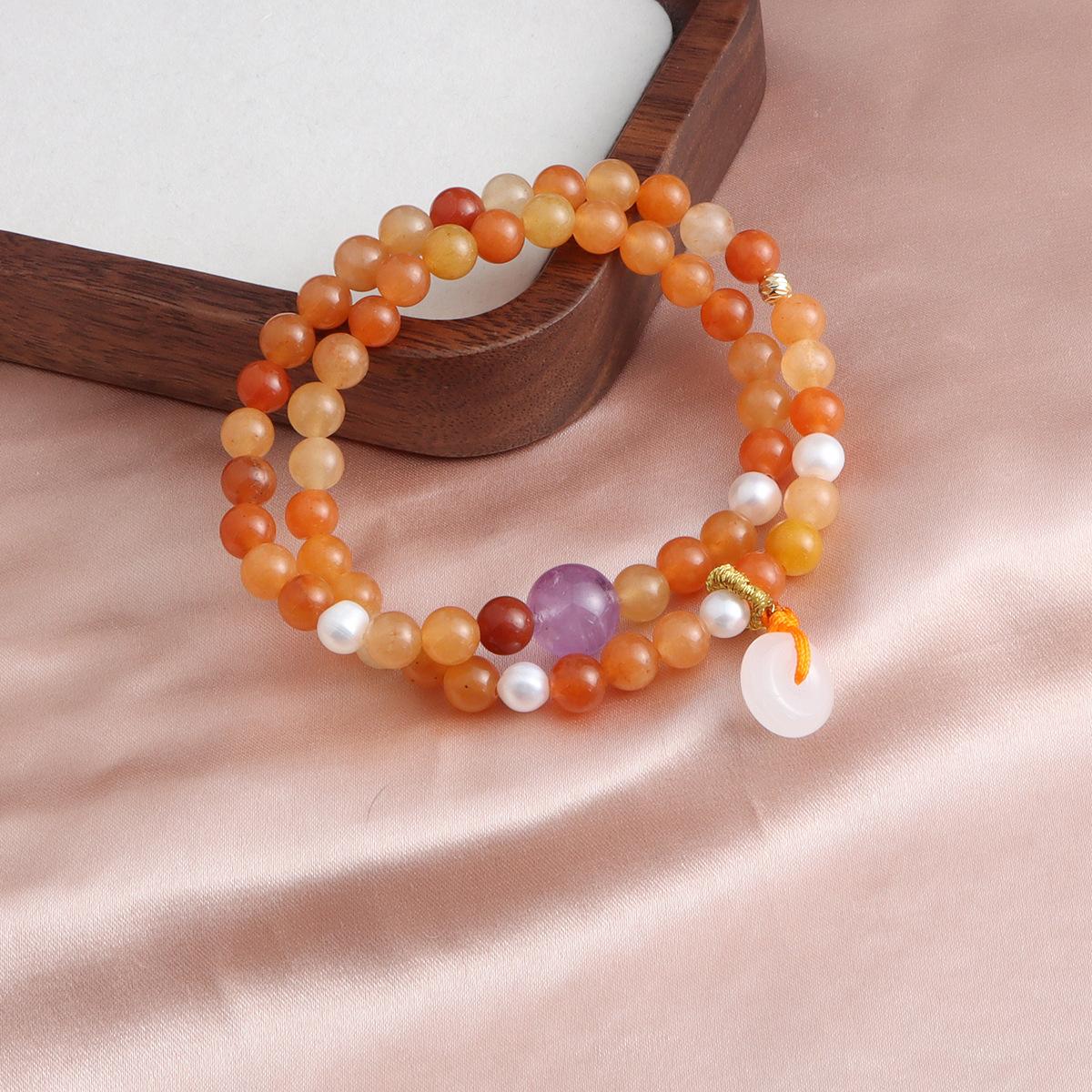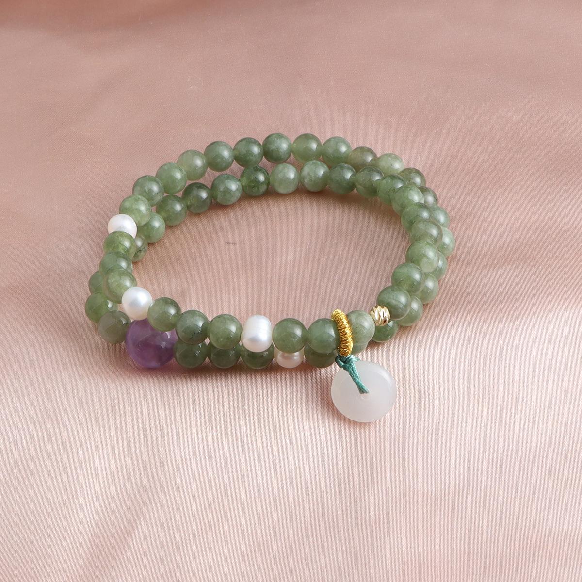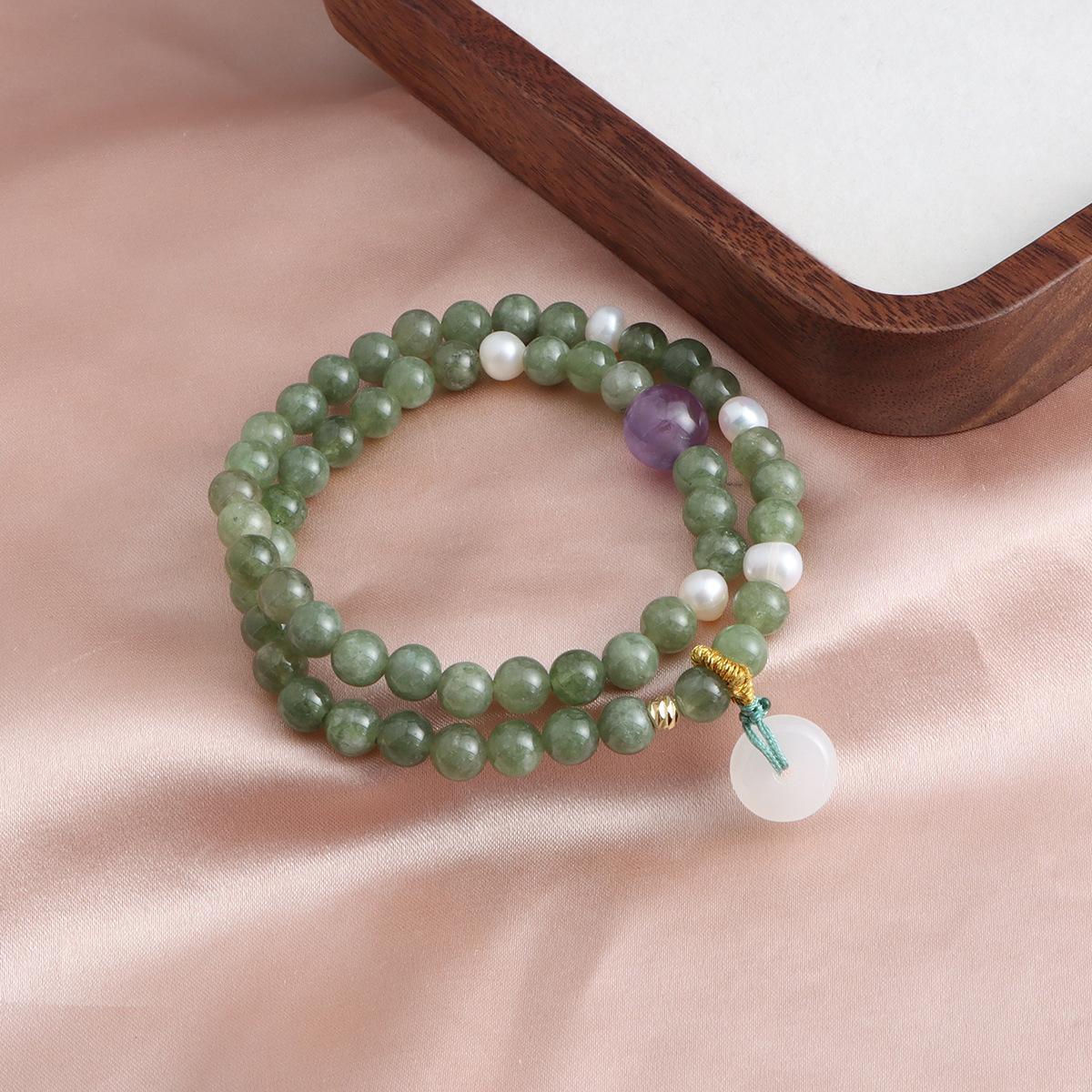 Templo Mismo Estilo Nuevo Estilo Chino Pulsera Jade Seda Dorada Patrón Rojo Azul Patek Hebilla Ping An Pulsera de Cristal Doble Círculo Moda Nacional Hanfu