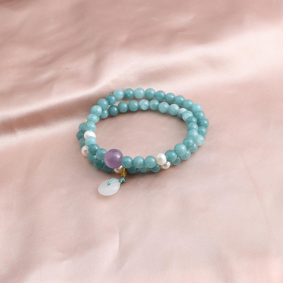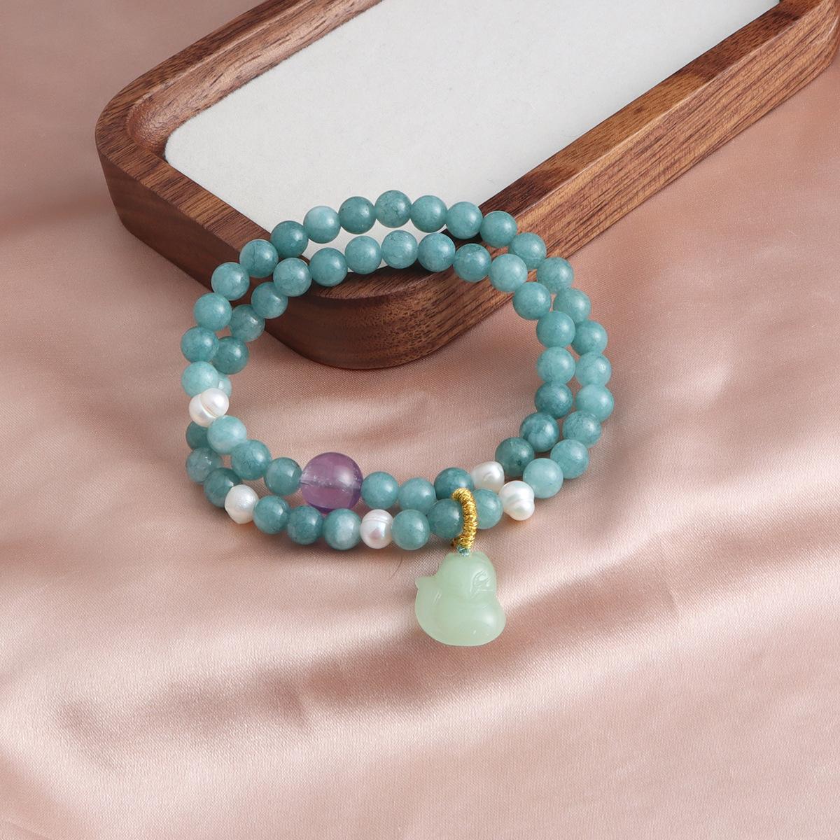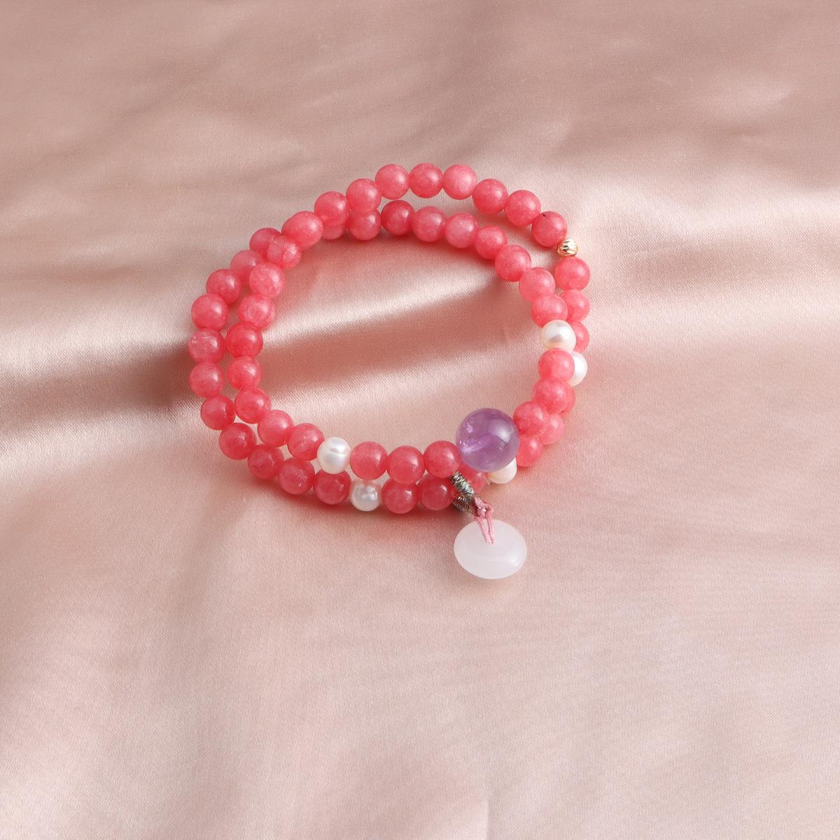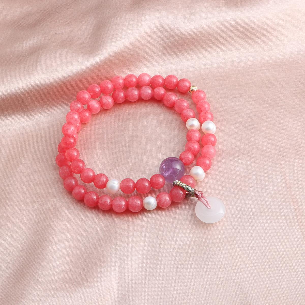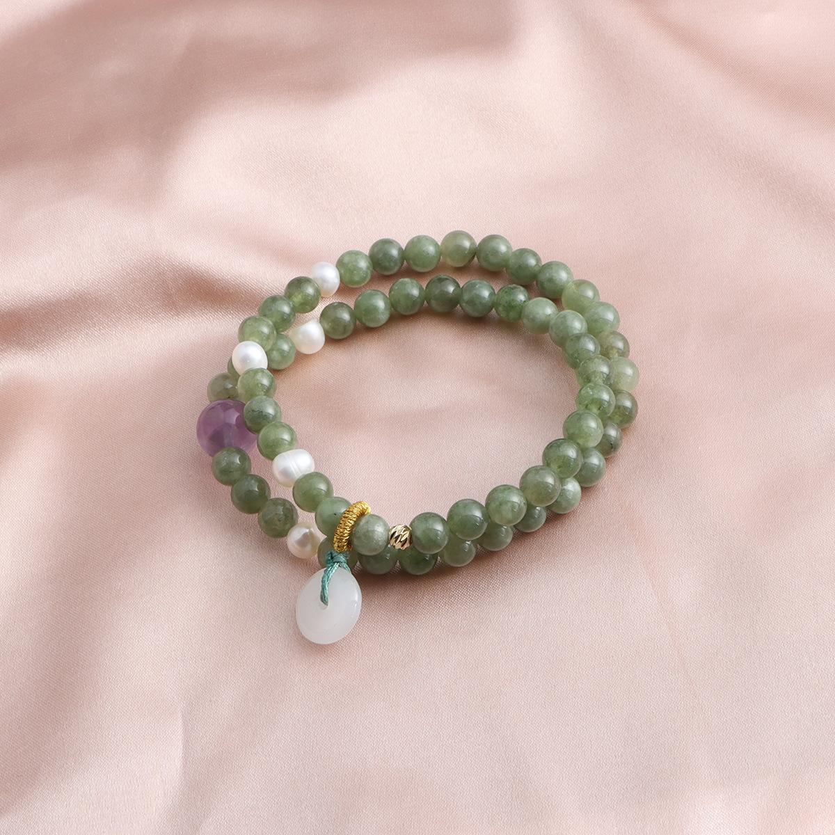 Templo Mismo Estilo Nuevo Estilo Chino Pulsera Jade Seda Dorada Patrón Rojo Azul Patek Hebilla Ping An Pulsera de Cristal Doble Círculo Moda Nacional Hanfu