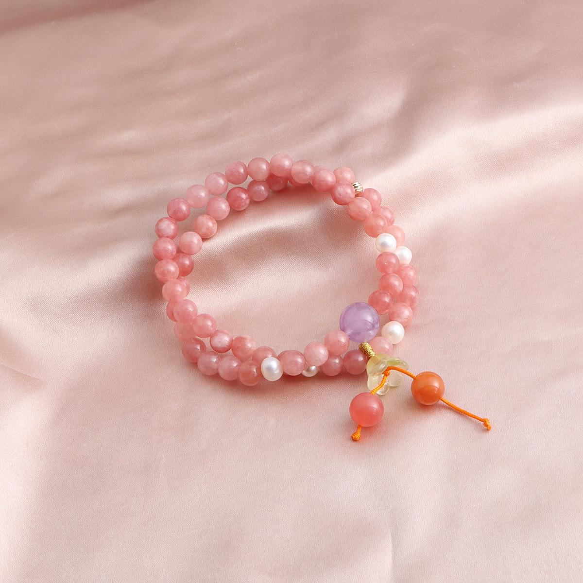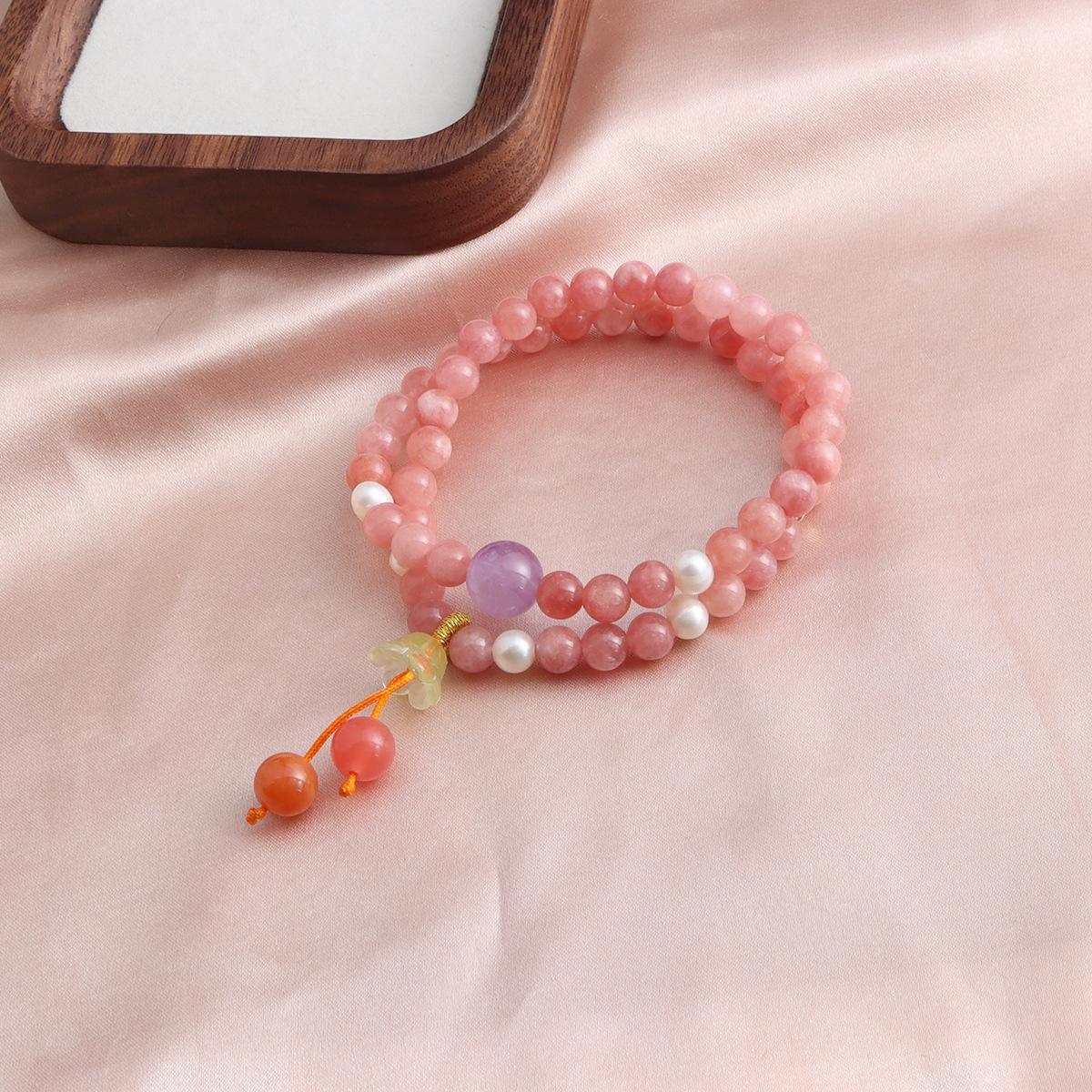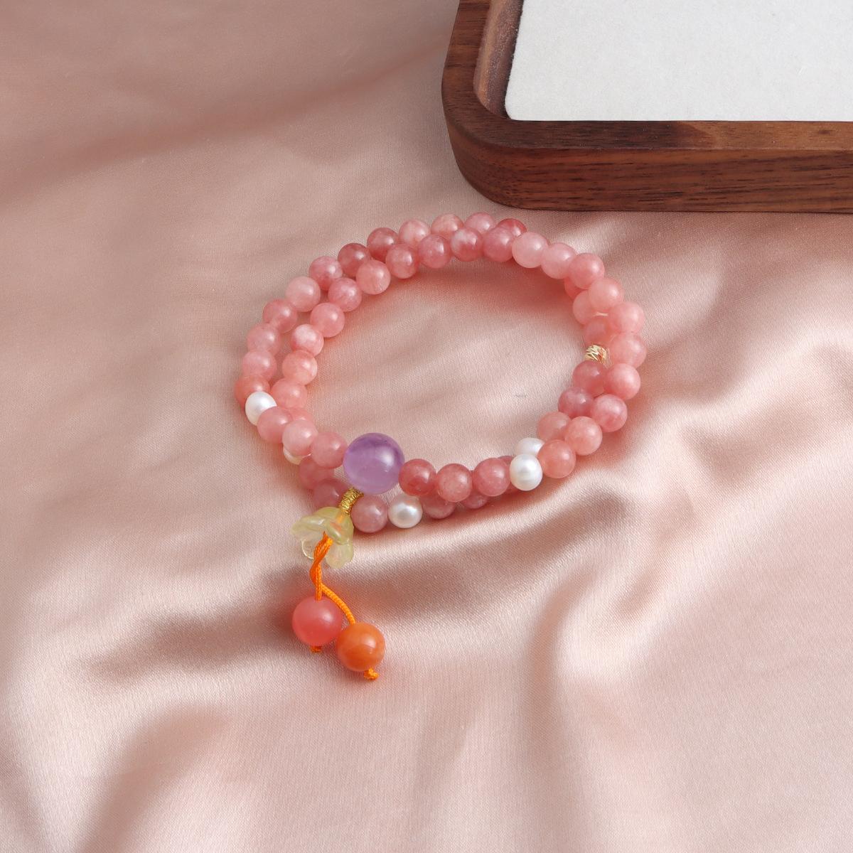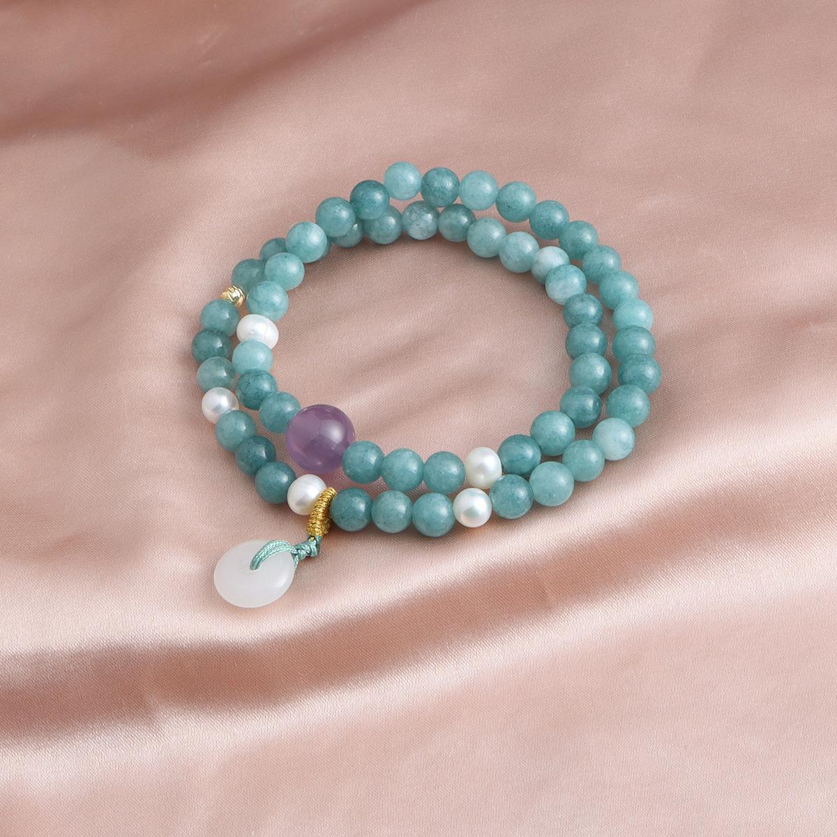 Templo Mismo Estilo Nuevo Estilo Chino Pulsera Jade Seda Dorada Patrón Rojo Azul Patek Hebilla Ping An Pulsera de Cristal Doble Círculo Moda Nacional Hanfu