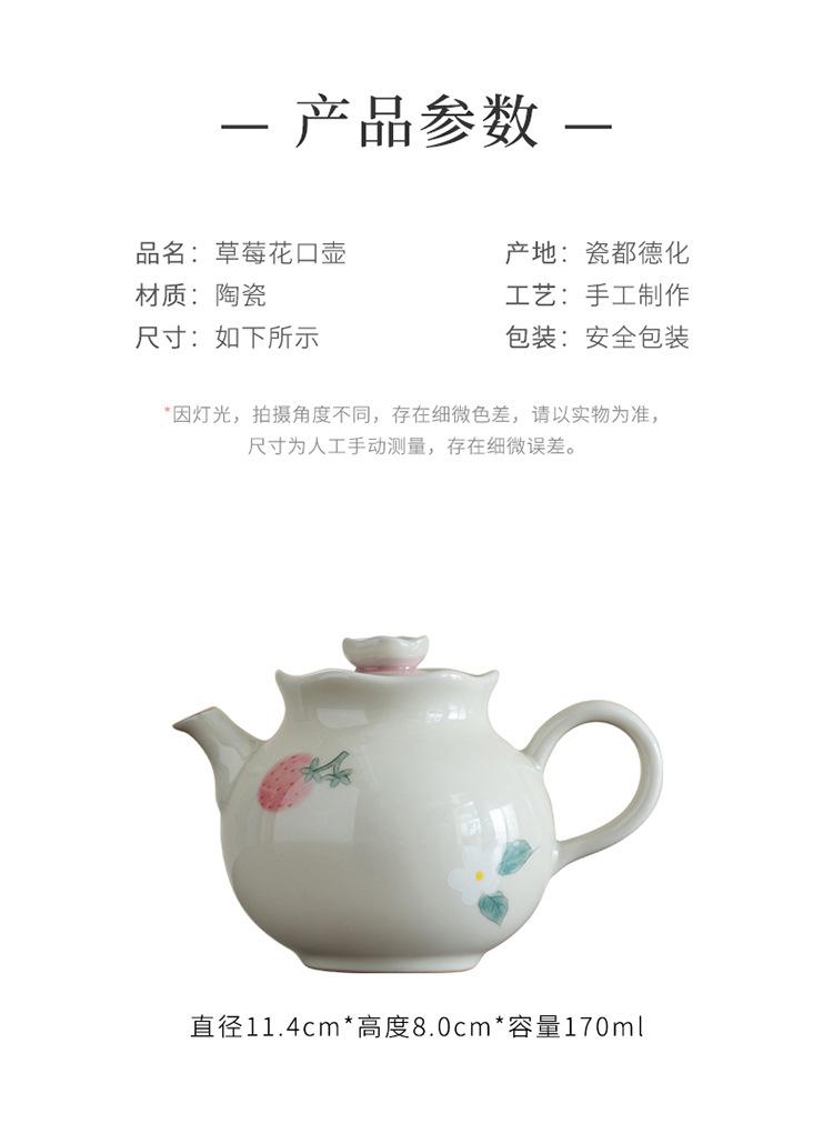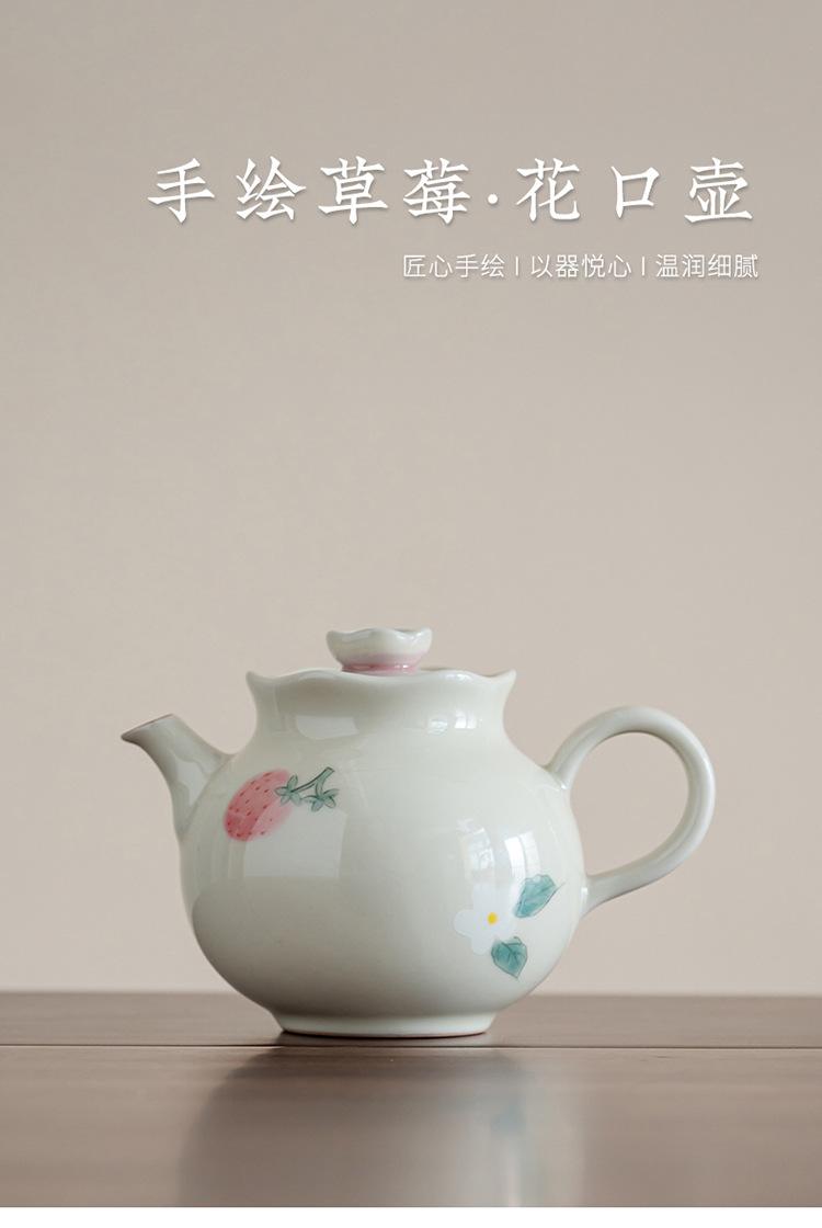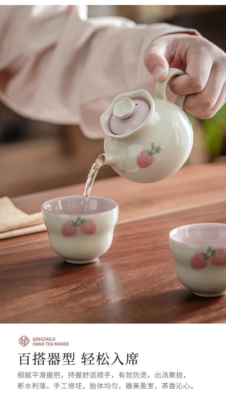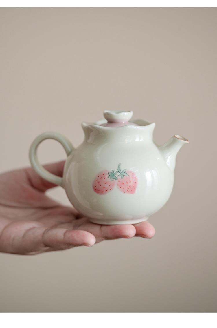 Tetera de mano de fresa pintada a mano con color bajo cubierta, juego de té de kung fu, tetera de cerámica, tetera de estilo nacional chino.