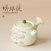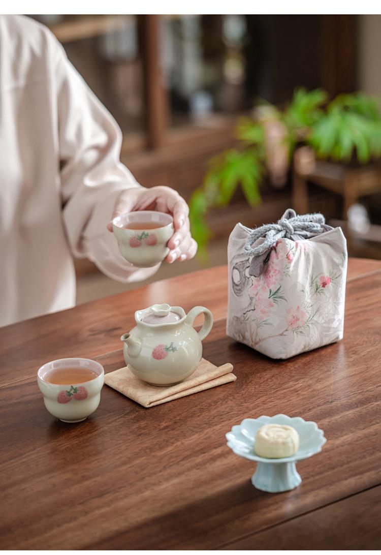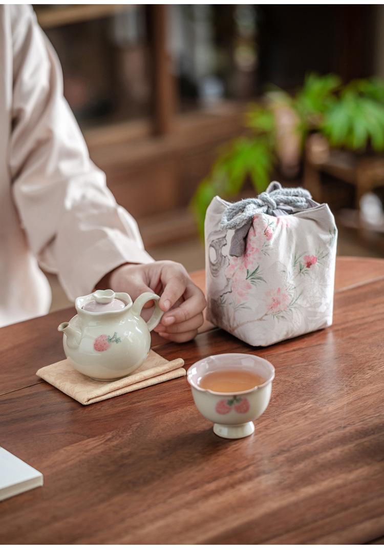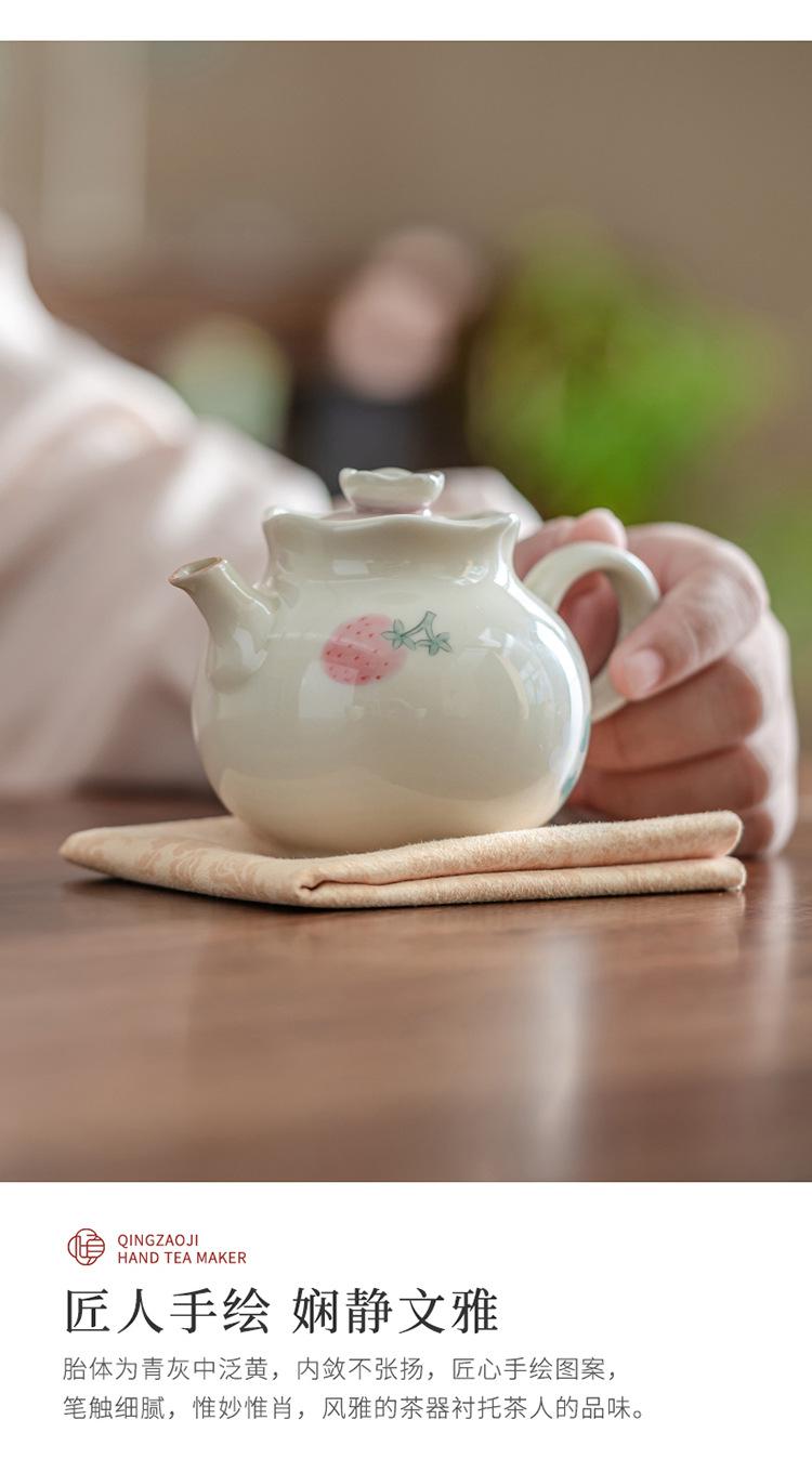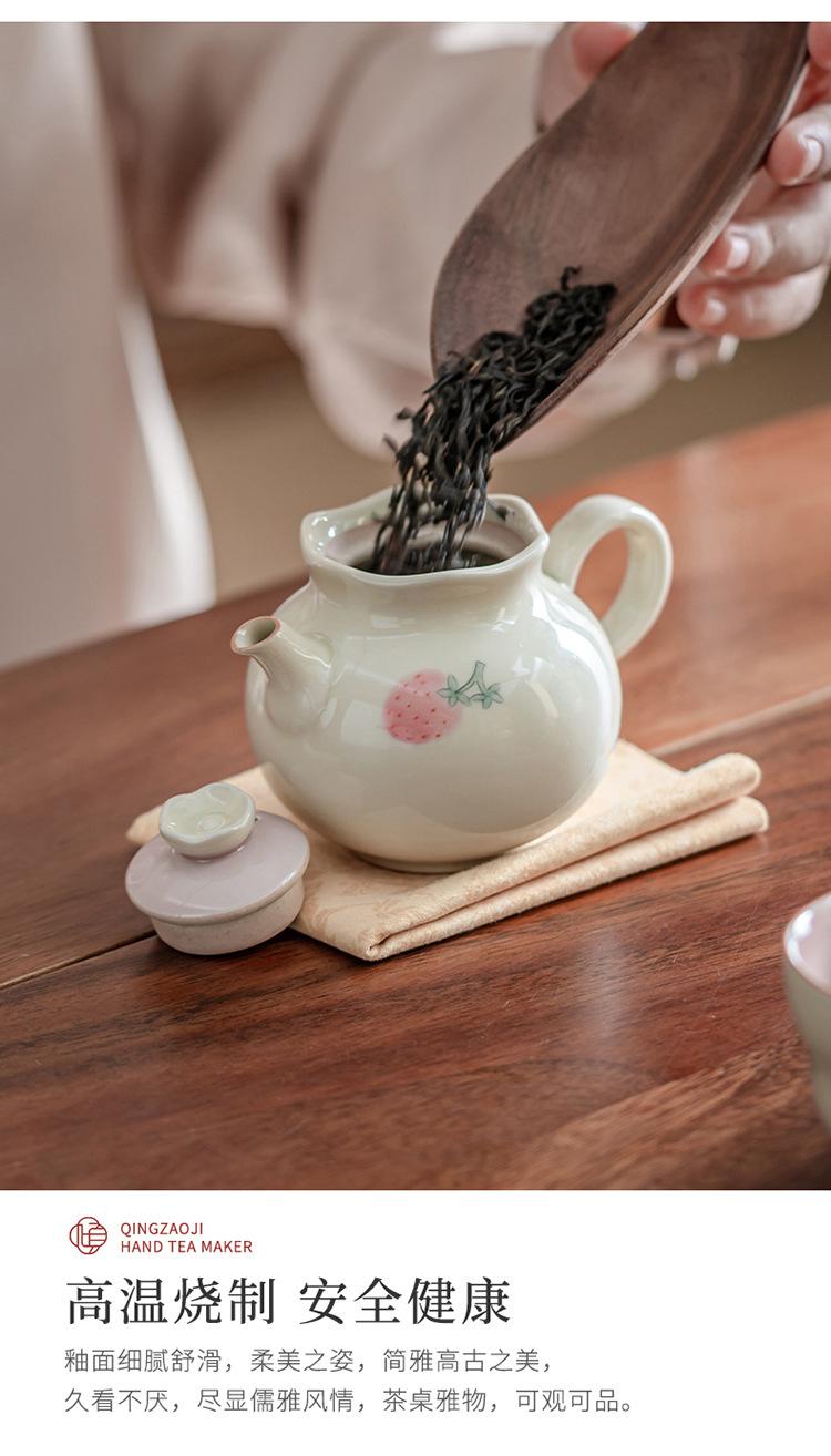 Tetera de mano de fresa pintada a mano con color bajo cubierta, juego de té de kung fu, tetera de cerámica, tetera de estilo nacional chino.
