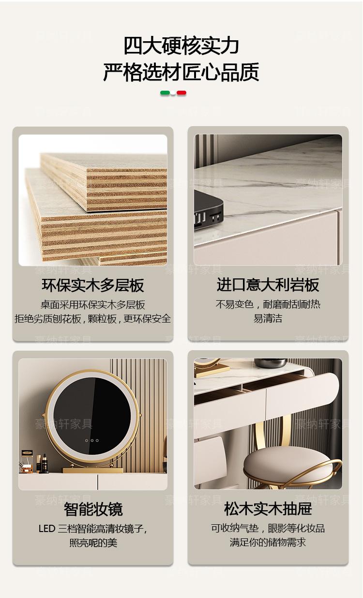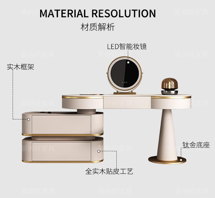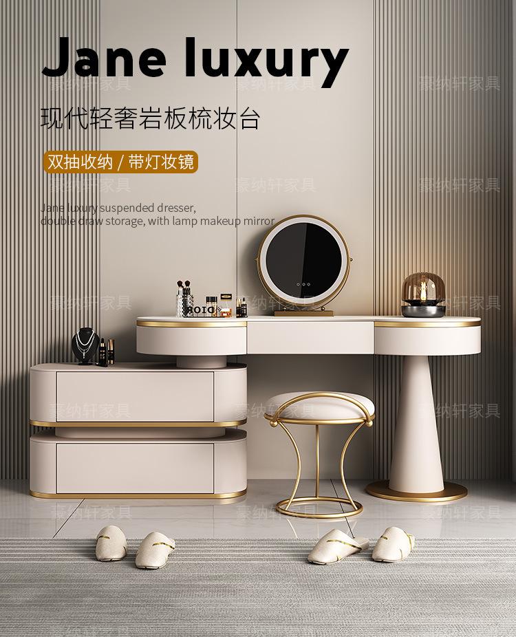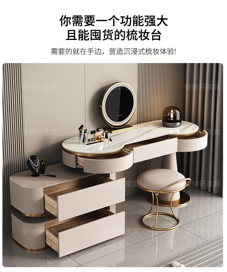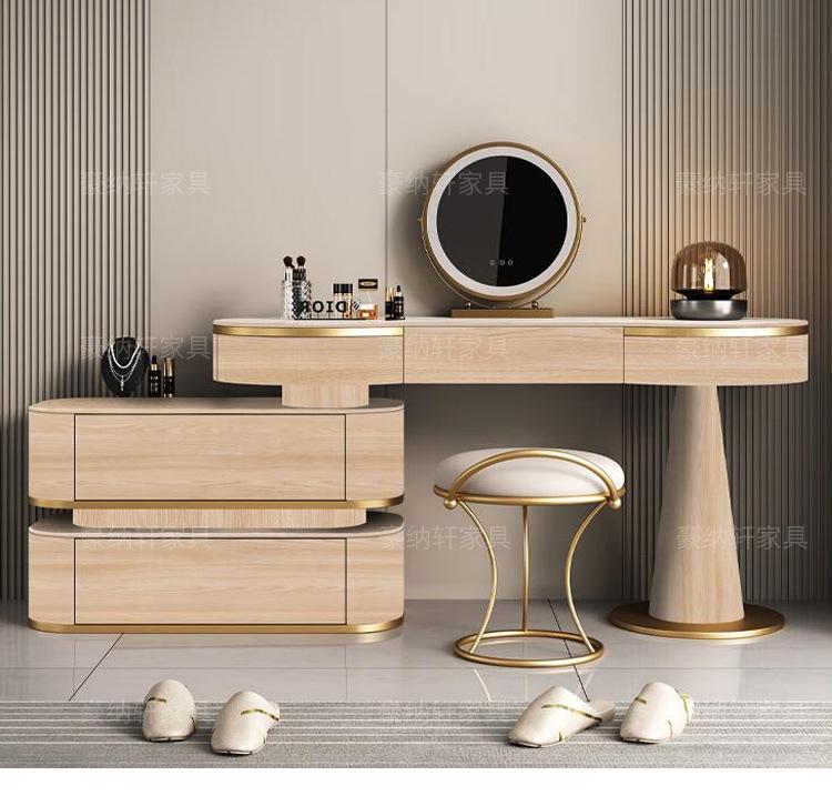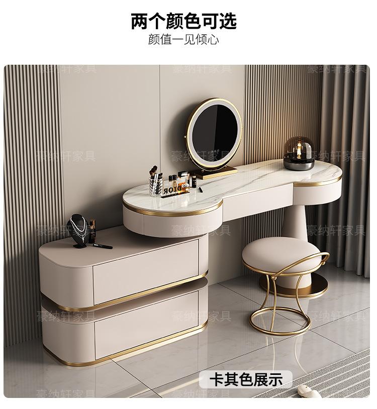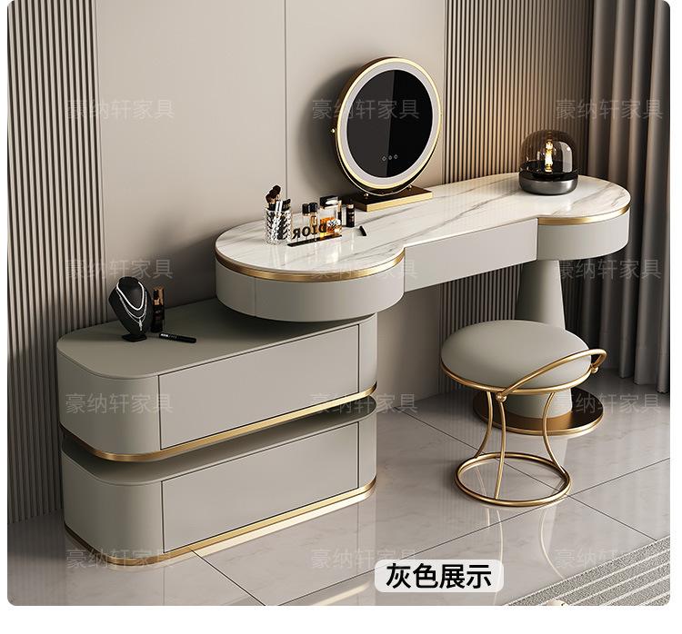 Tocador de lujo ligero de roca, armario de almacenamiento, armario de cubo integrado, moderno, sencillo, para apartamento pequeño, dormitorio principal, mesa de maquillaje de madera maciza