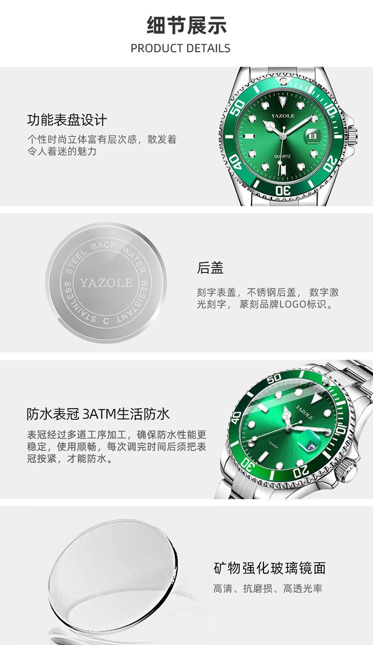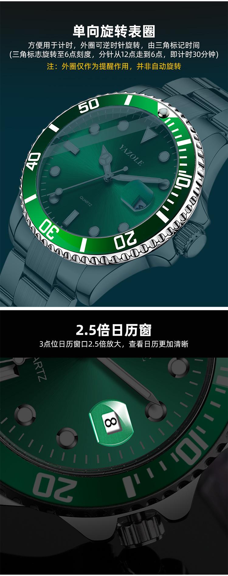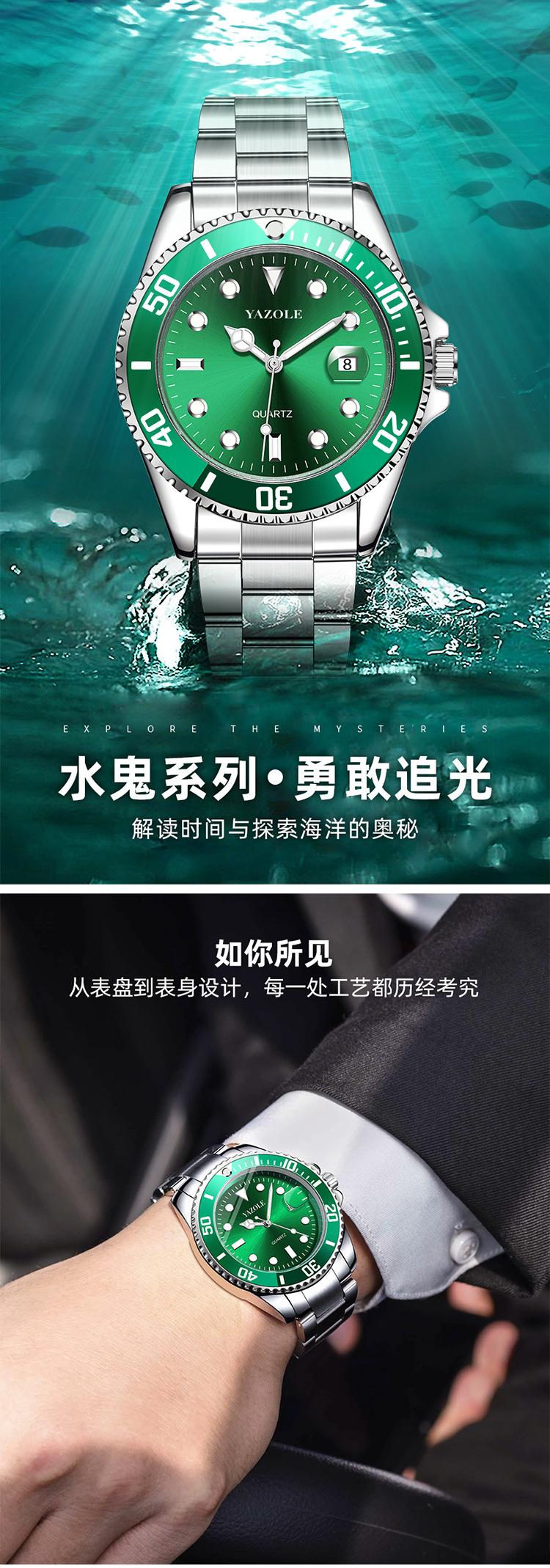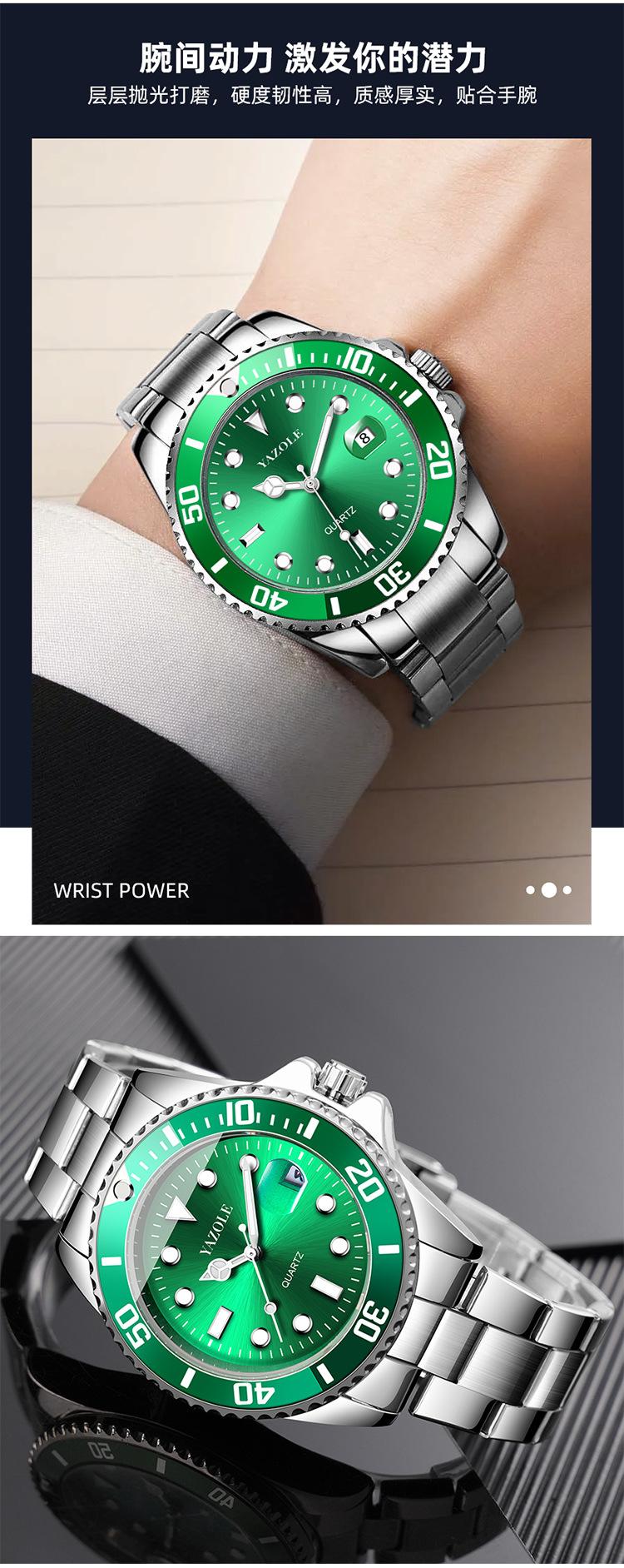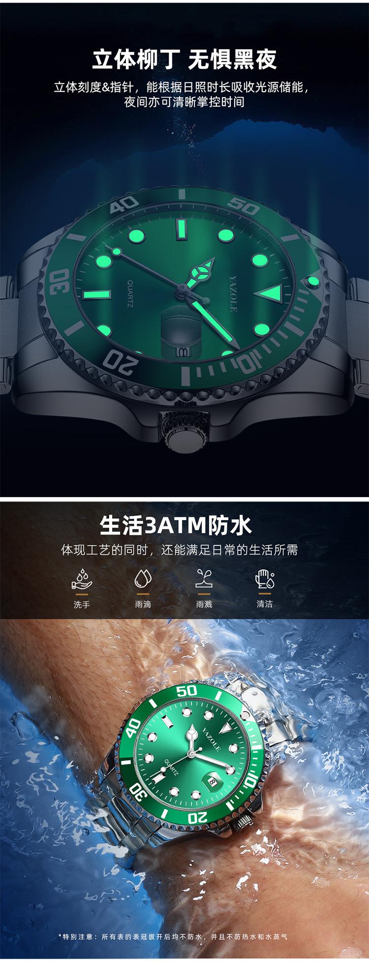 Reloj de hombre no mecánico cuarzo correa calendario impermeable luminoso reloj verde fantasma de agua reloj de hombre 011