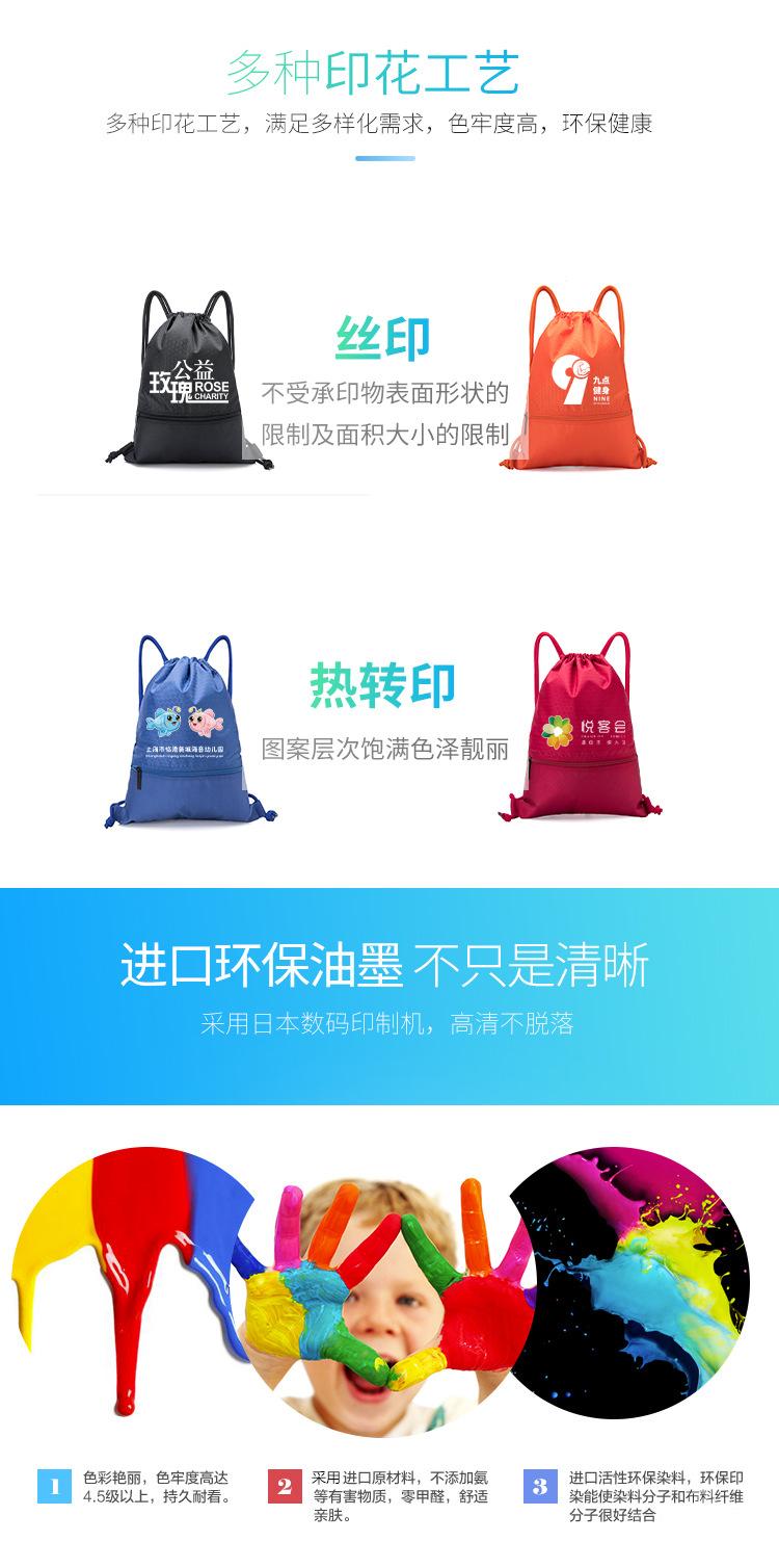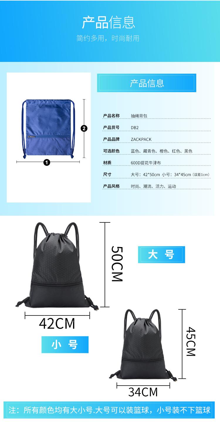 Deportes Impermeable Tela Oxford Bolsillo Estampado LOGO Mochila Gran Capacidad Cordón Cordón Mochila Pequeña Bolsa Estampado