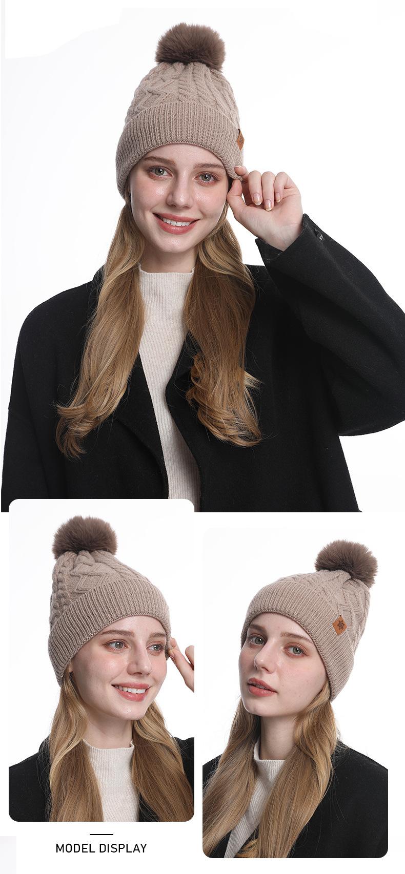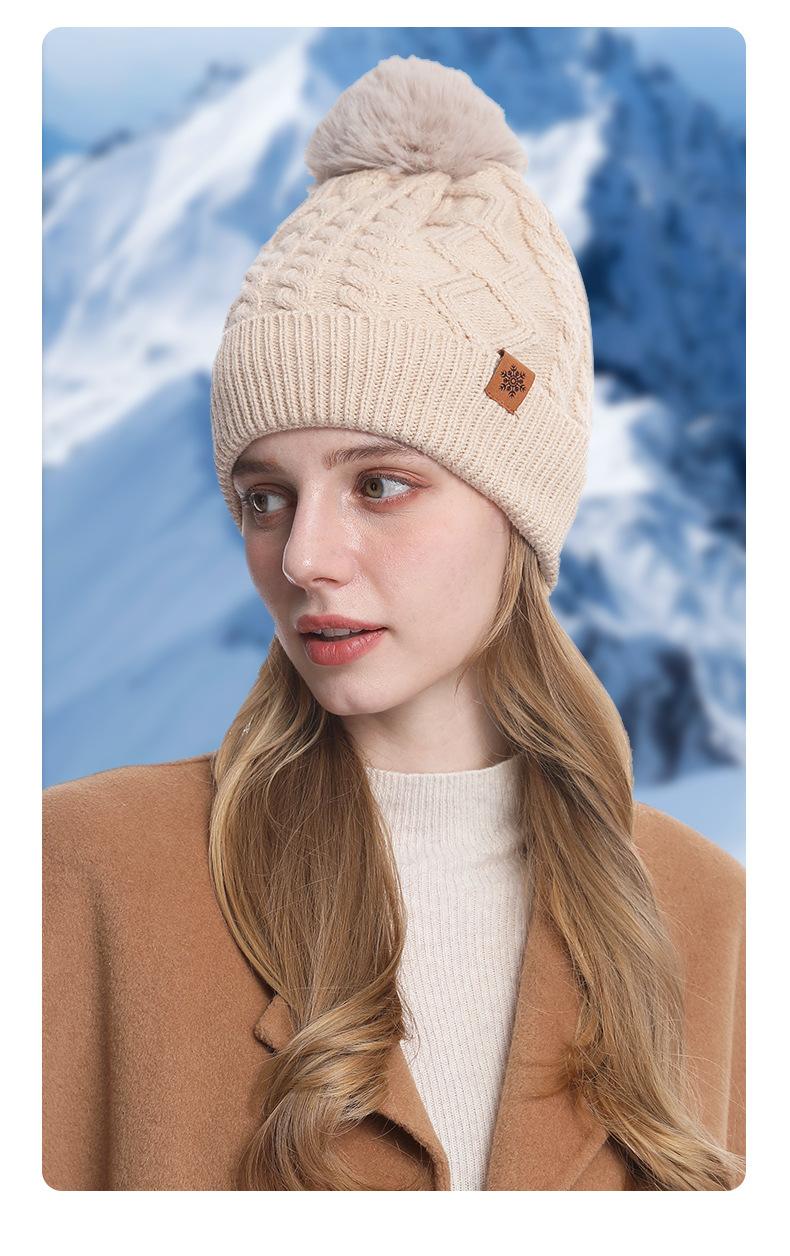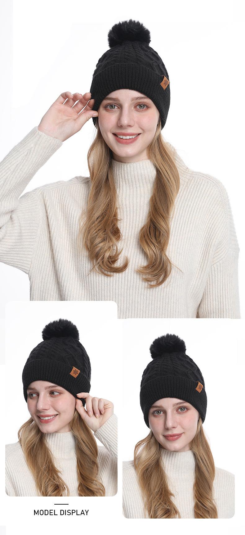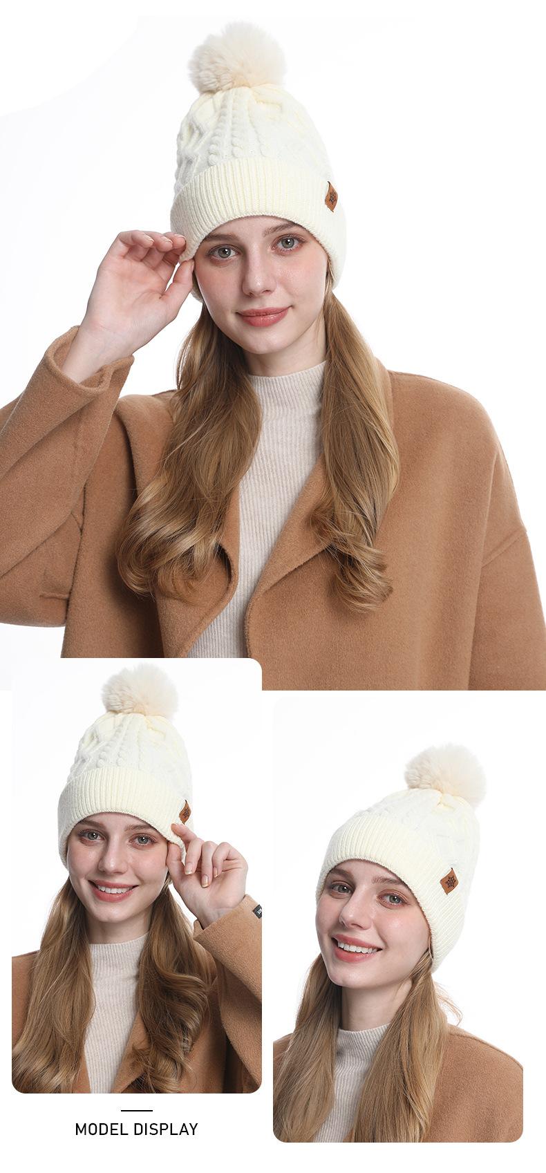 Gorro de Punto de Invierno Personalizado, Gorro Pulóver Cálido de Lana a Prueba de Frío con Forro Polar, Gorro de Punto para Mujer de Color Sólido Europeo y Americano