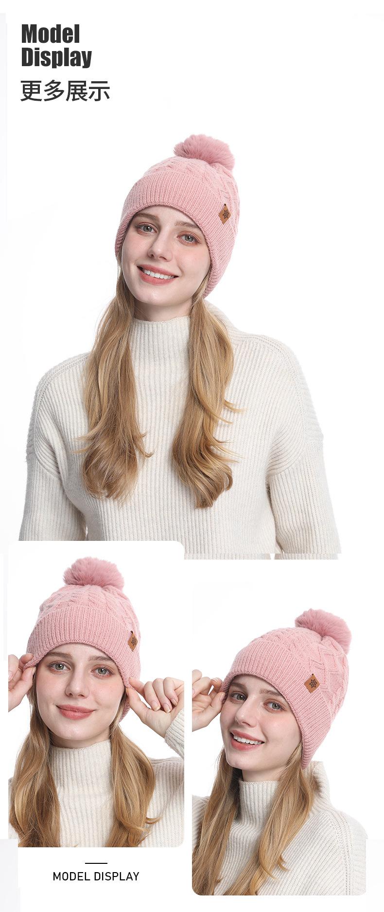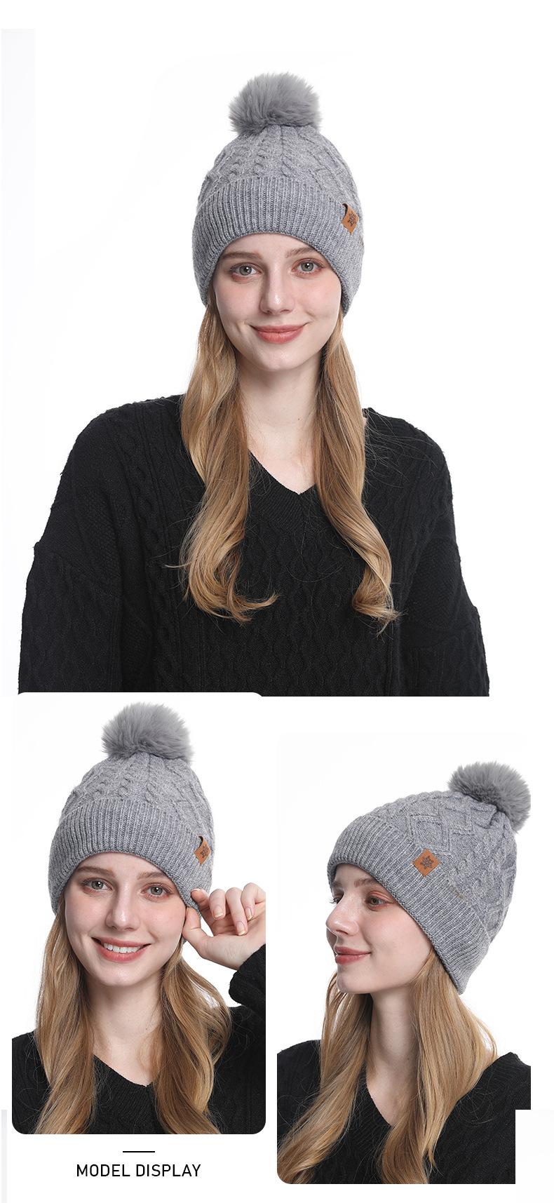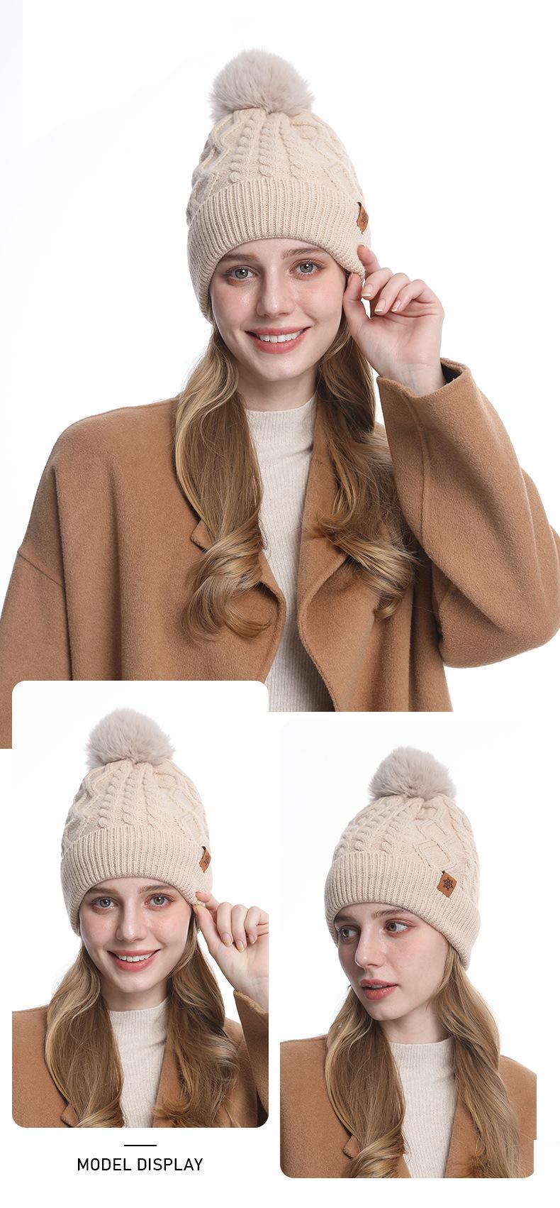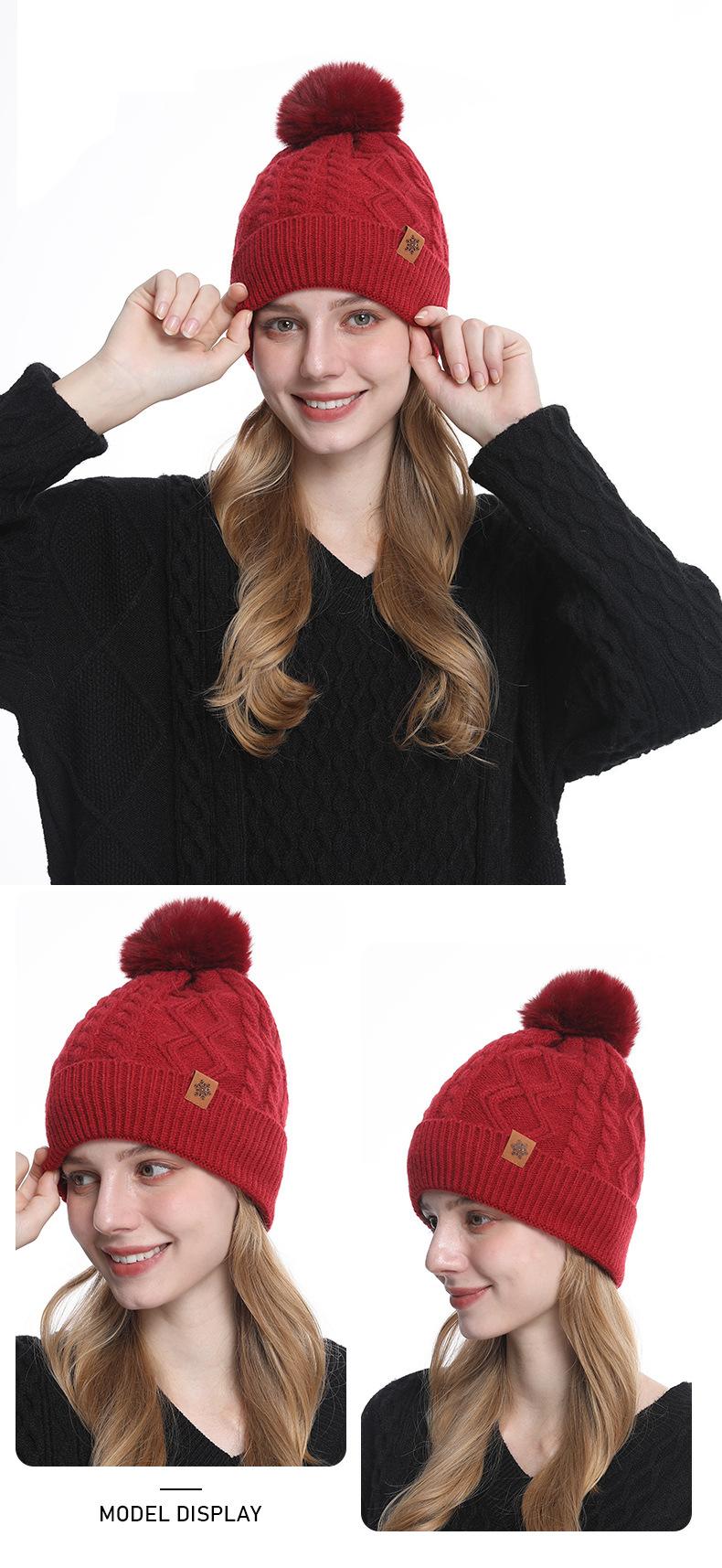Gorro de Punto de Invierno Personalizado, Gorro Pulóver Cálido de Lana a Prueba de Frío con Forro Polar, Gorro de Punto para Mujer de Color Sólido Europeo y Americano