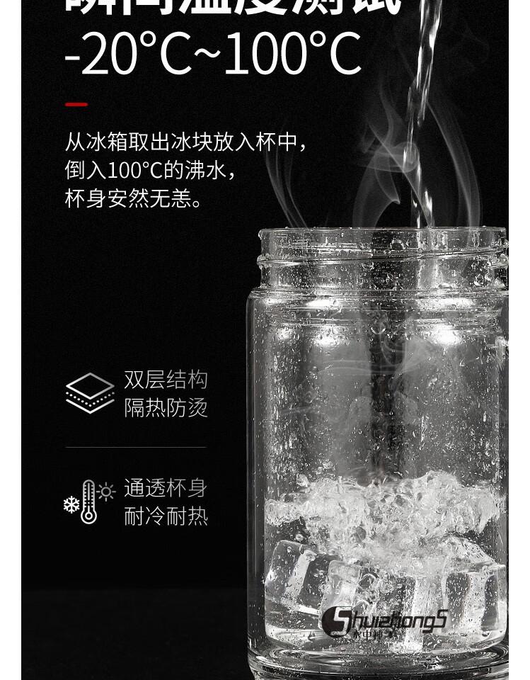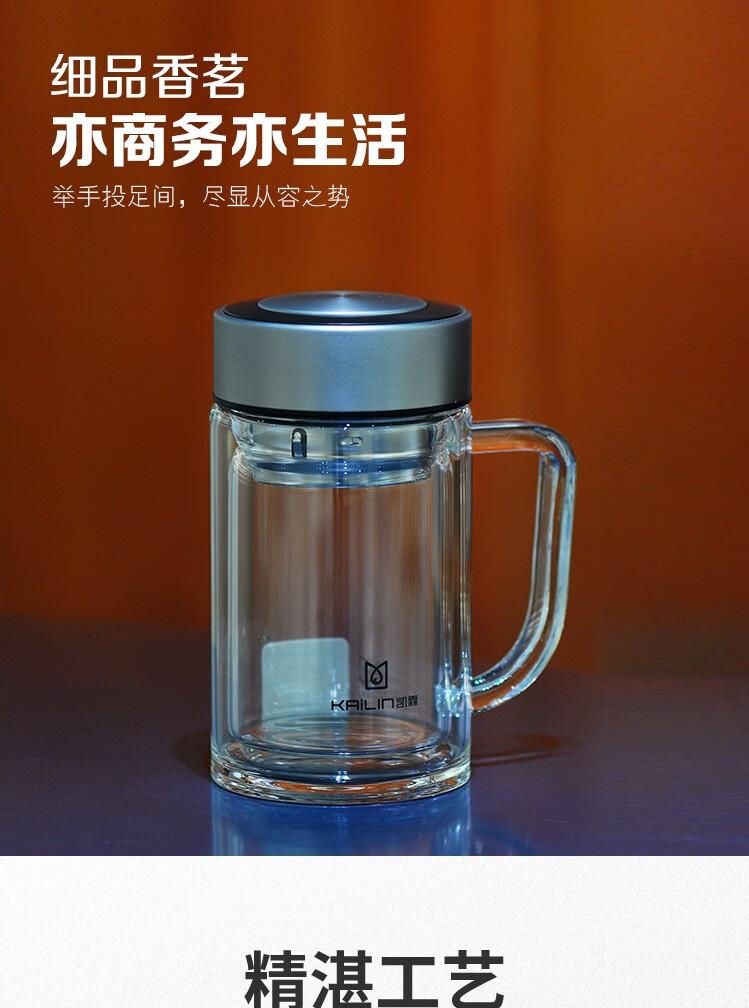 Taza de vidrio de doble capa, resistente a altas temperaturas, con asa de oficina, taza de separación de té, taza publicitaria, taza de regalo con actividad de apertura de logotipo
