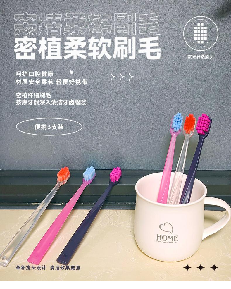 Cepillo de Dientes para Adultos con 10,000 Cerdas, Paquete de 3, Cepillo de Dientes para Hogar de Adultos de Alta Gama, Cerdas Ultrasuaves, Protección de Encías, Dientes de Pareja con Clase