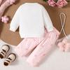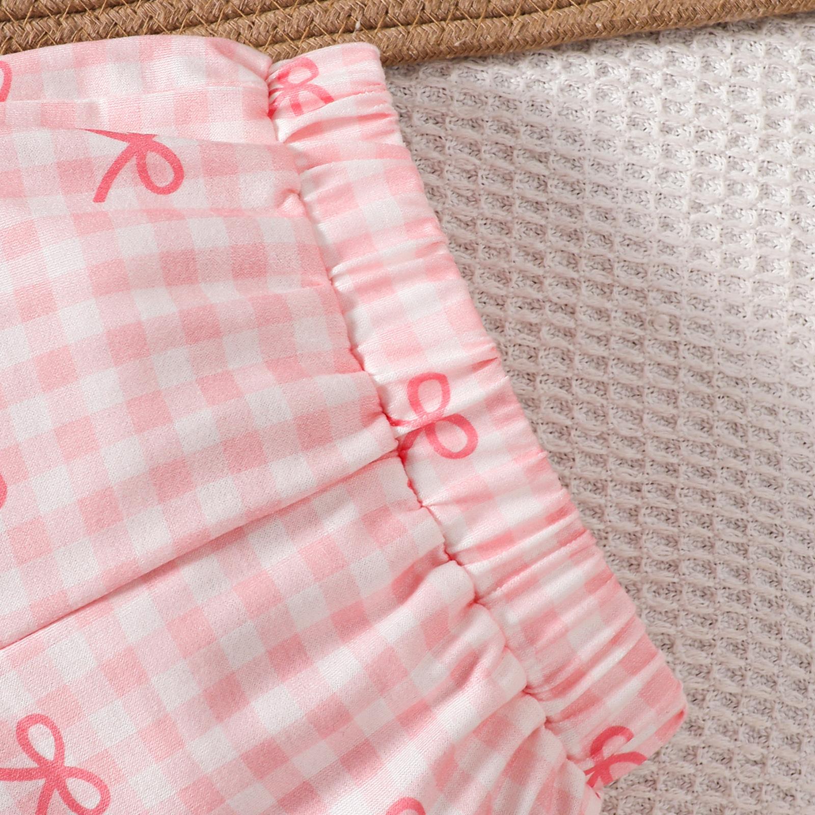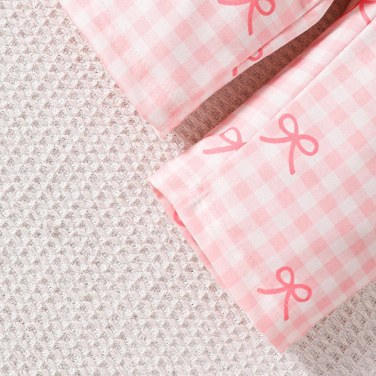 2025 Primavera y Otoño Nuevo Estilo Niñas Bebé Manga Larga Estampado de Lazo Sudadera Pantalones a Cuadros Ropa de Casa Conjunto de Dos Piezas
