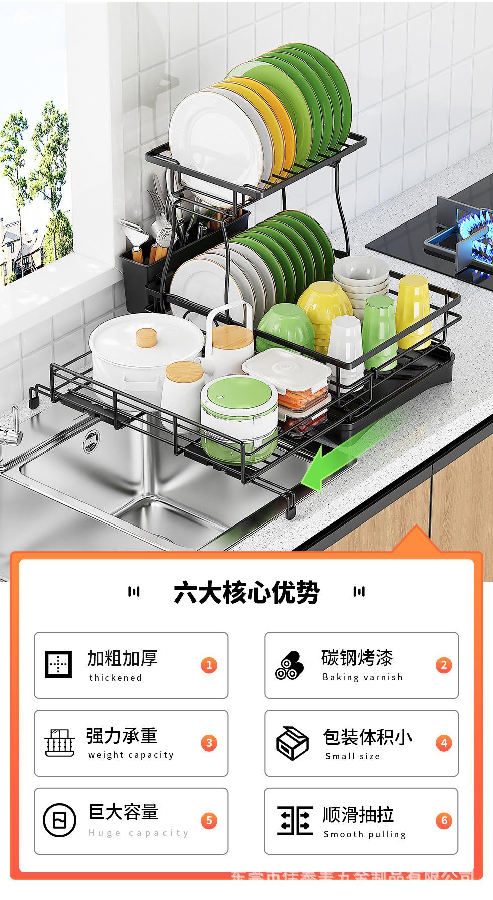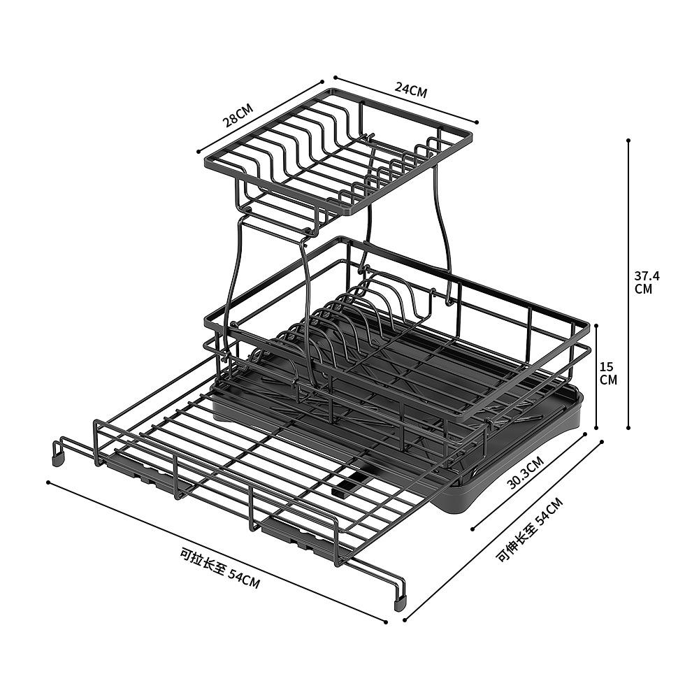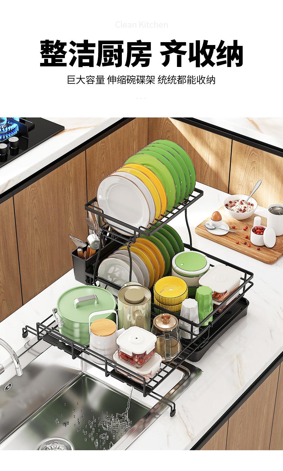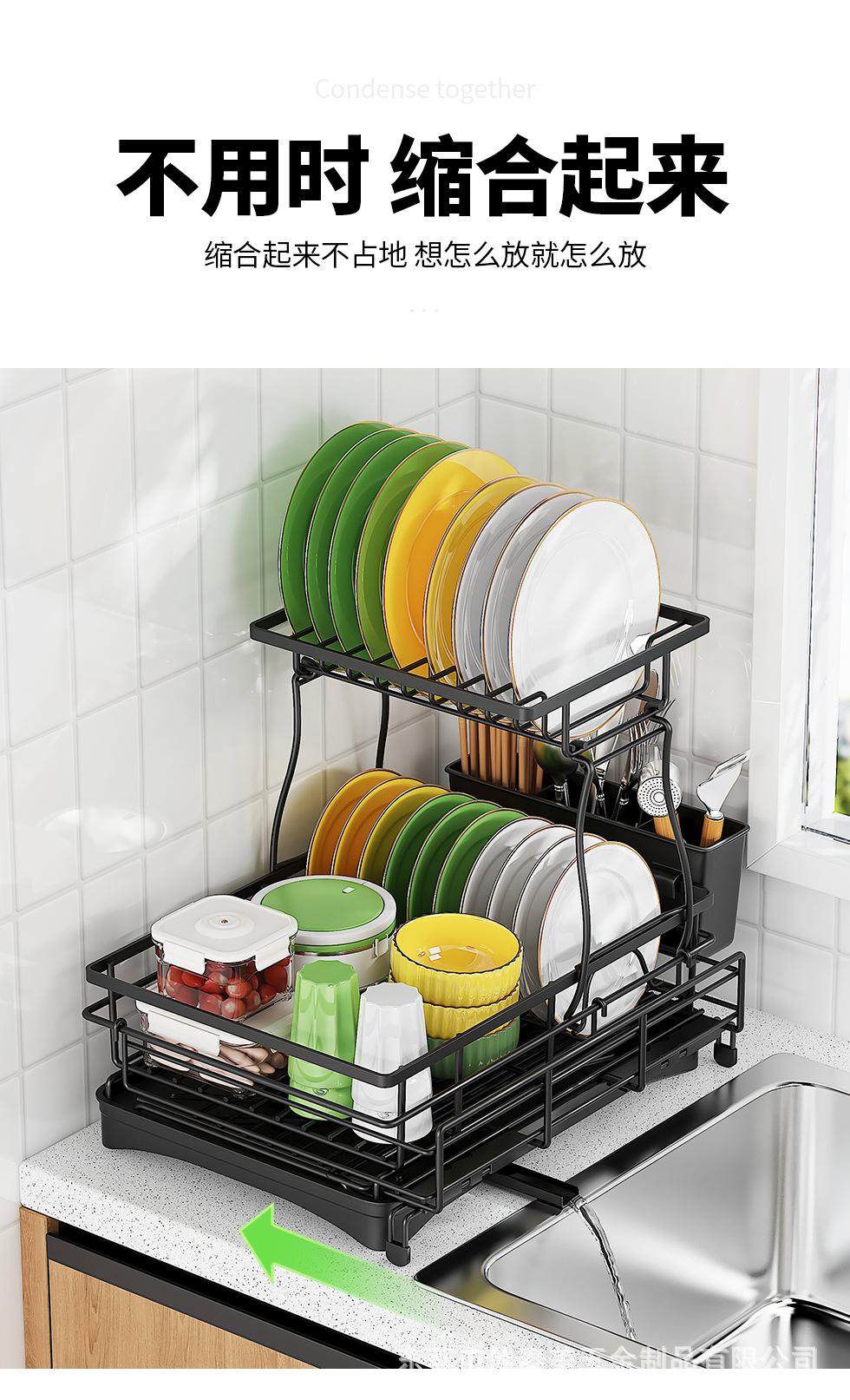 White double-layer dish rack [retractable + chopstick cage], Black double-layer dish rack [retractable + chopstick cage]