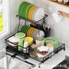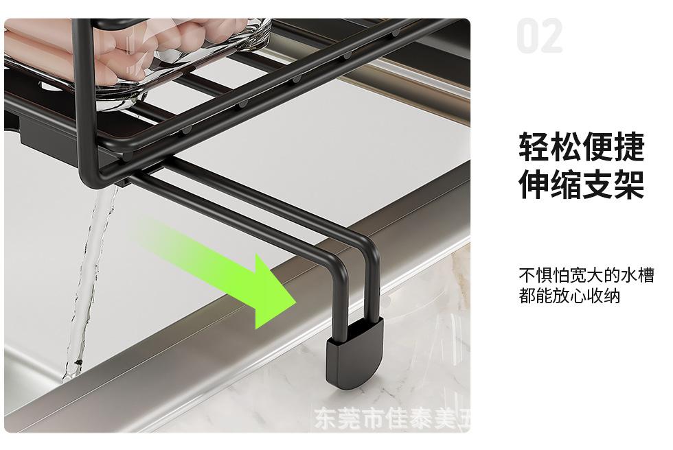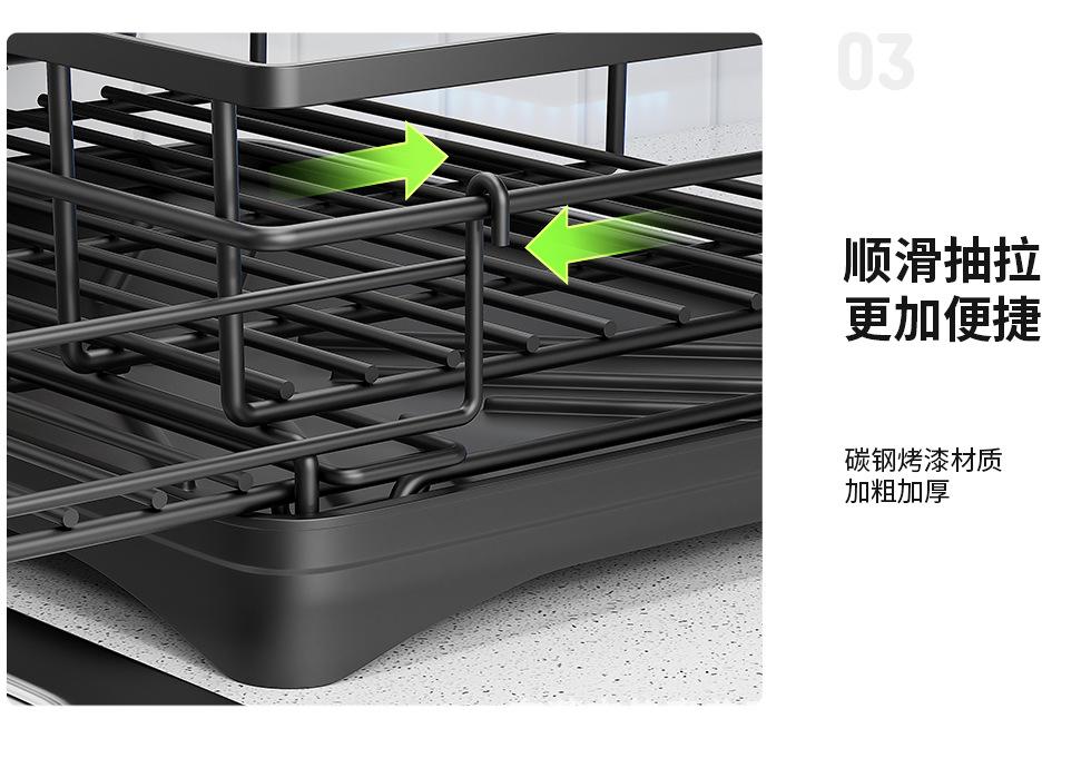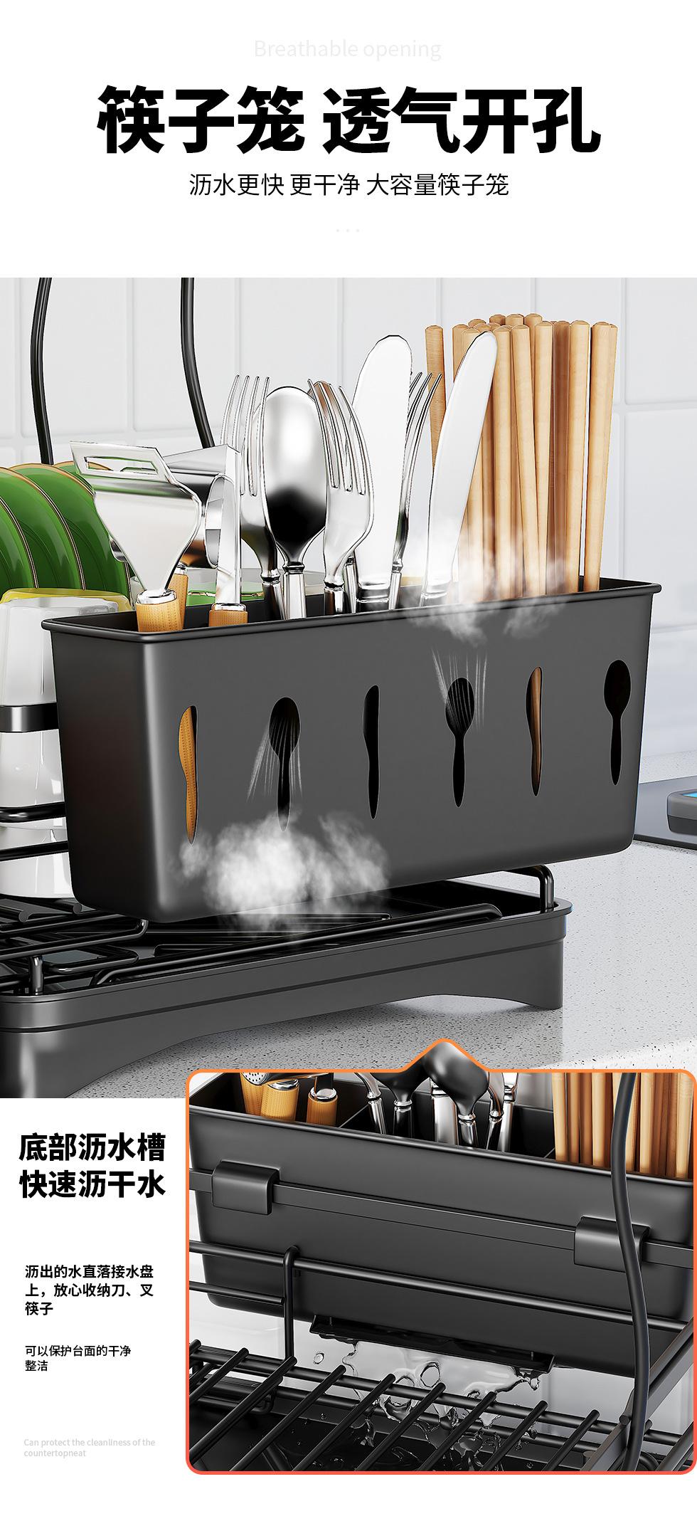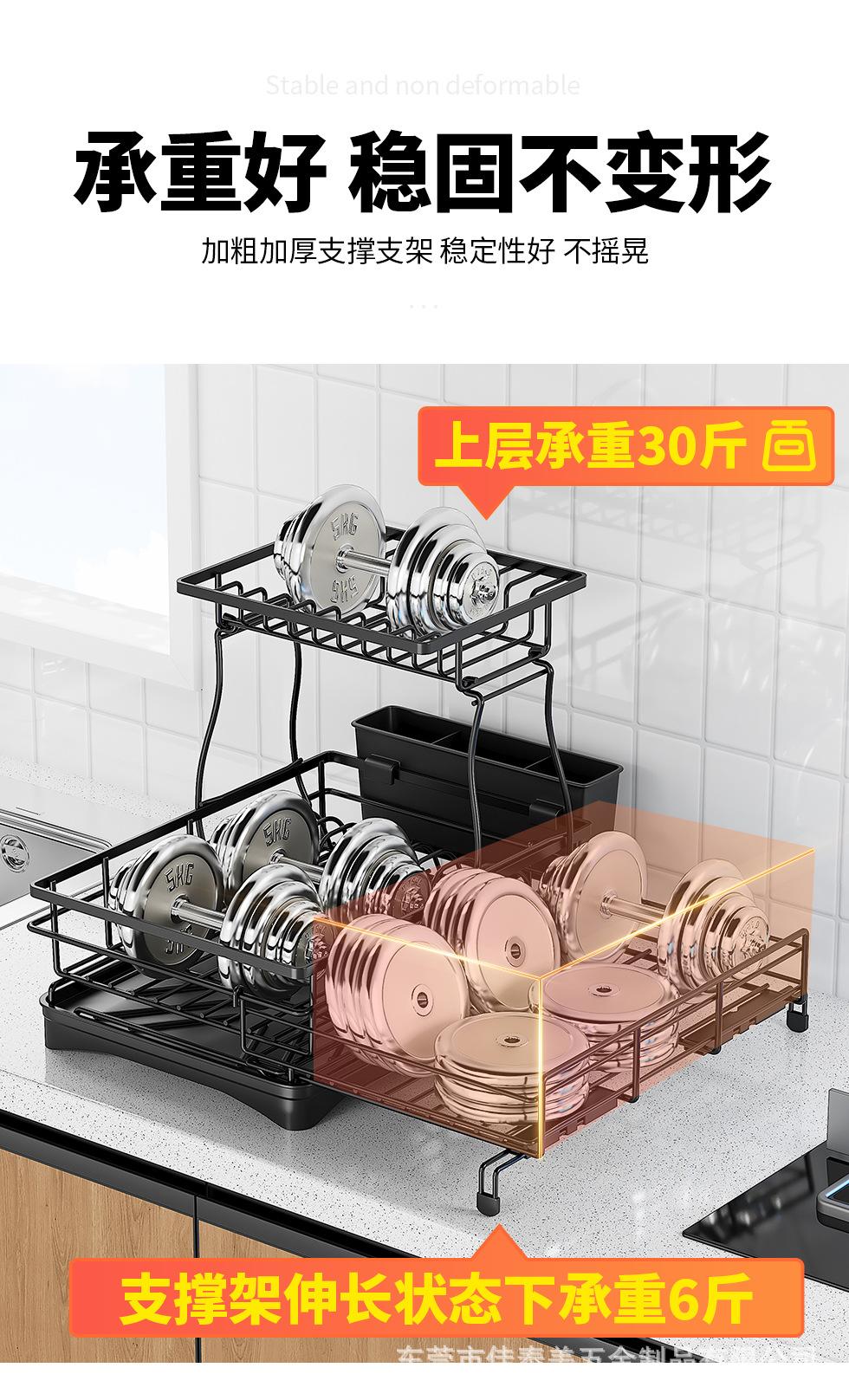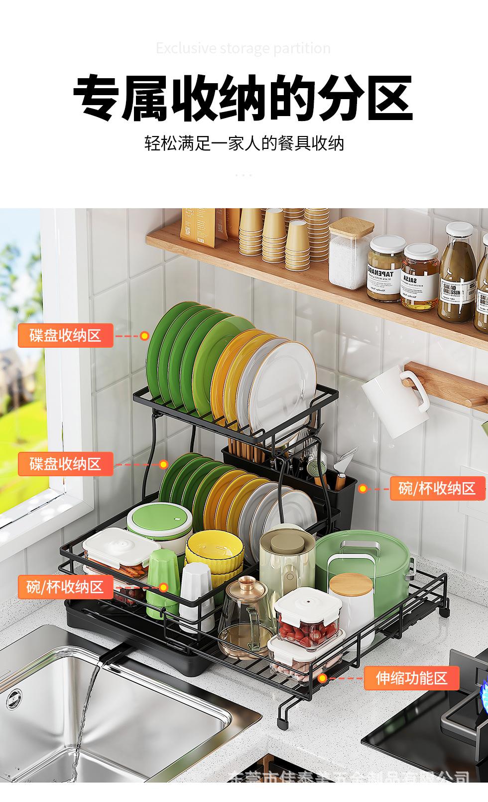White double-layer dish rack [retractable + chopstick cage], Black double-layer dish rack [retractable + chopstick cage]