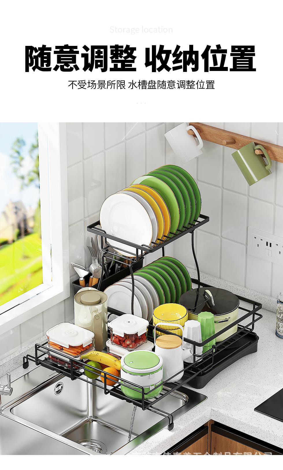 Estante de Cocina Personalizado Multifuncional de Doble Capa para Fregadero, Escurridor Doméstico, Estante Telescópico para Almacenamiento de Platos