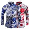 Camisa de solapa de manga larga de talla grande para hombre, camisa informal fina con estampado floral, de talla grande, primavera y otoño de 2022