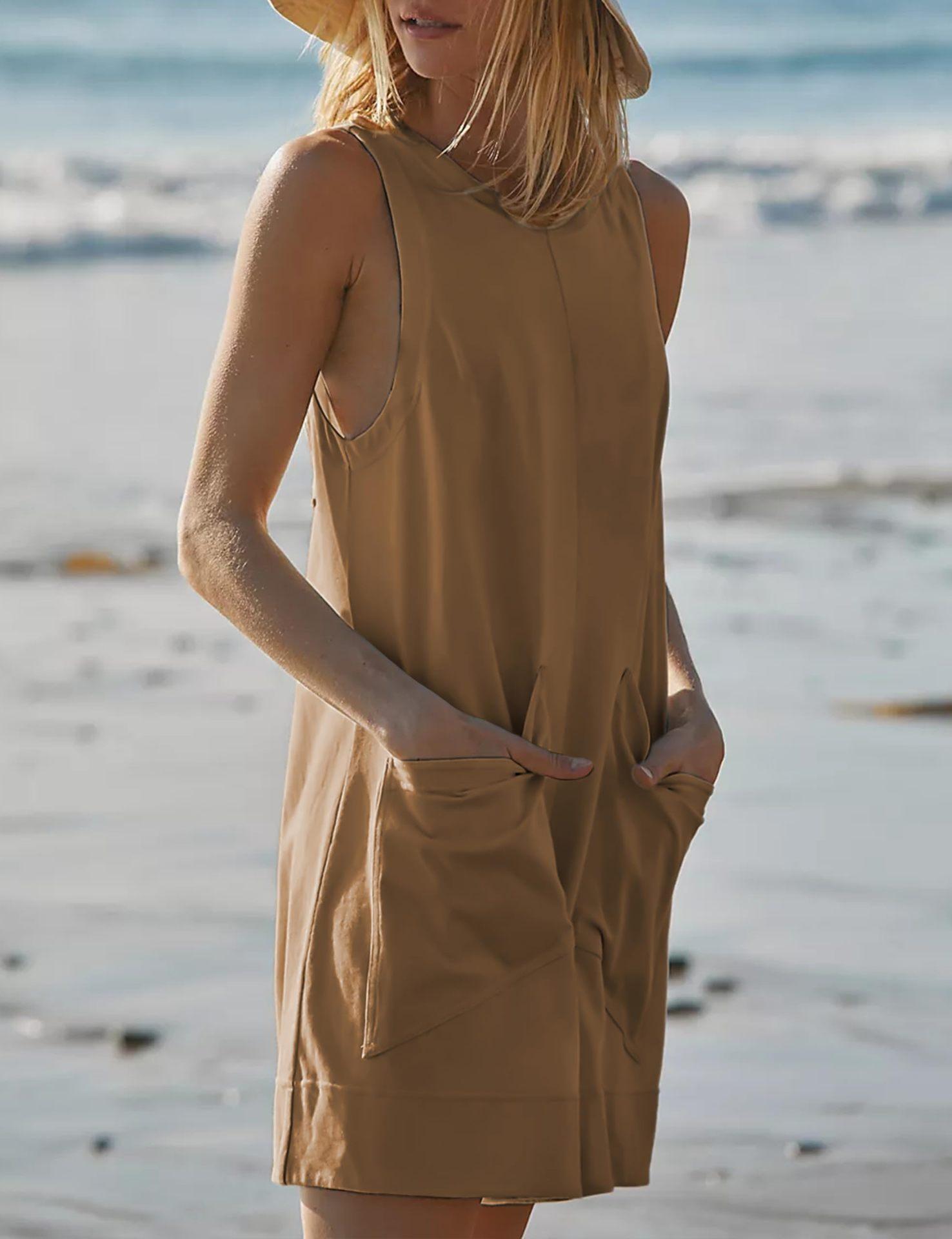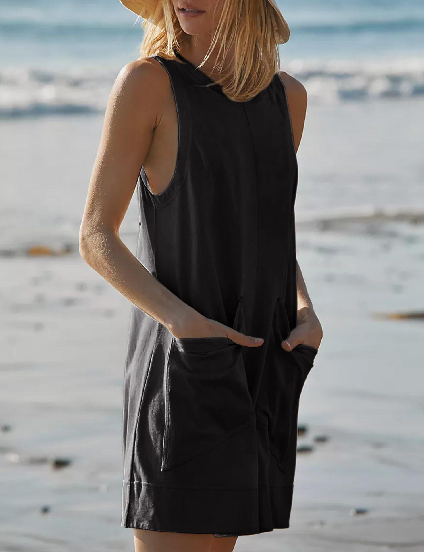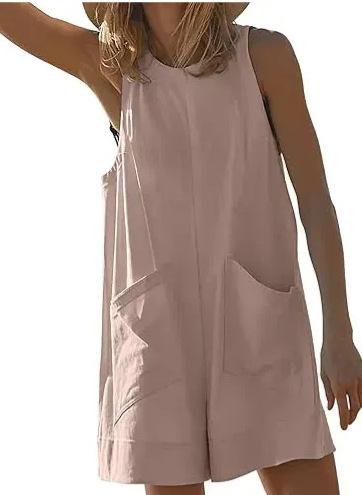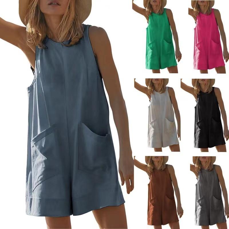 Mono informal de verano para mujer, estilo europeo y americano, holgado, sin mangas, con bolsillos y pantalones cortos, 2024