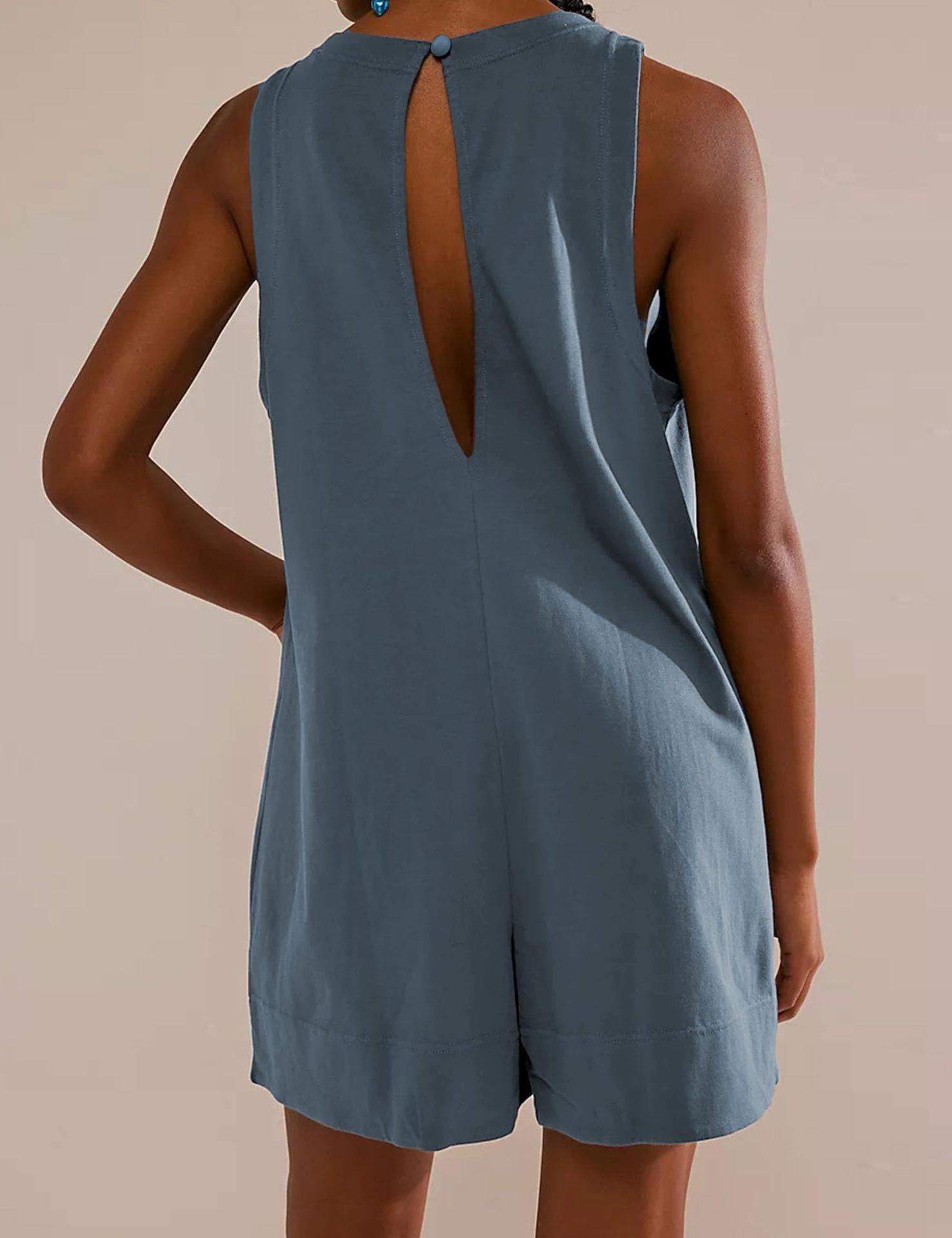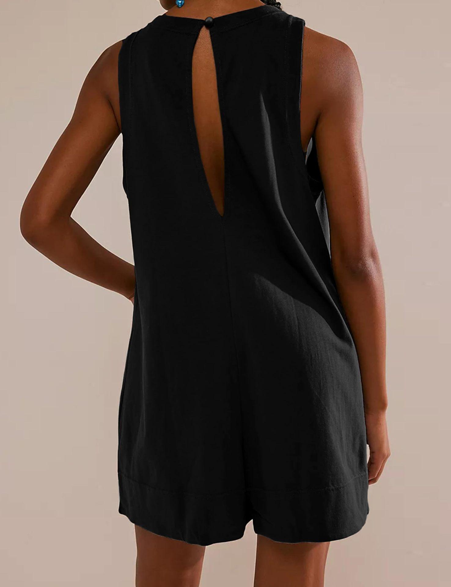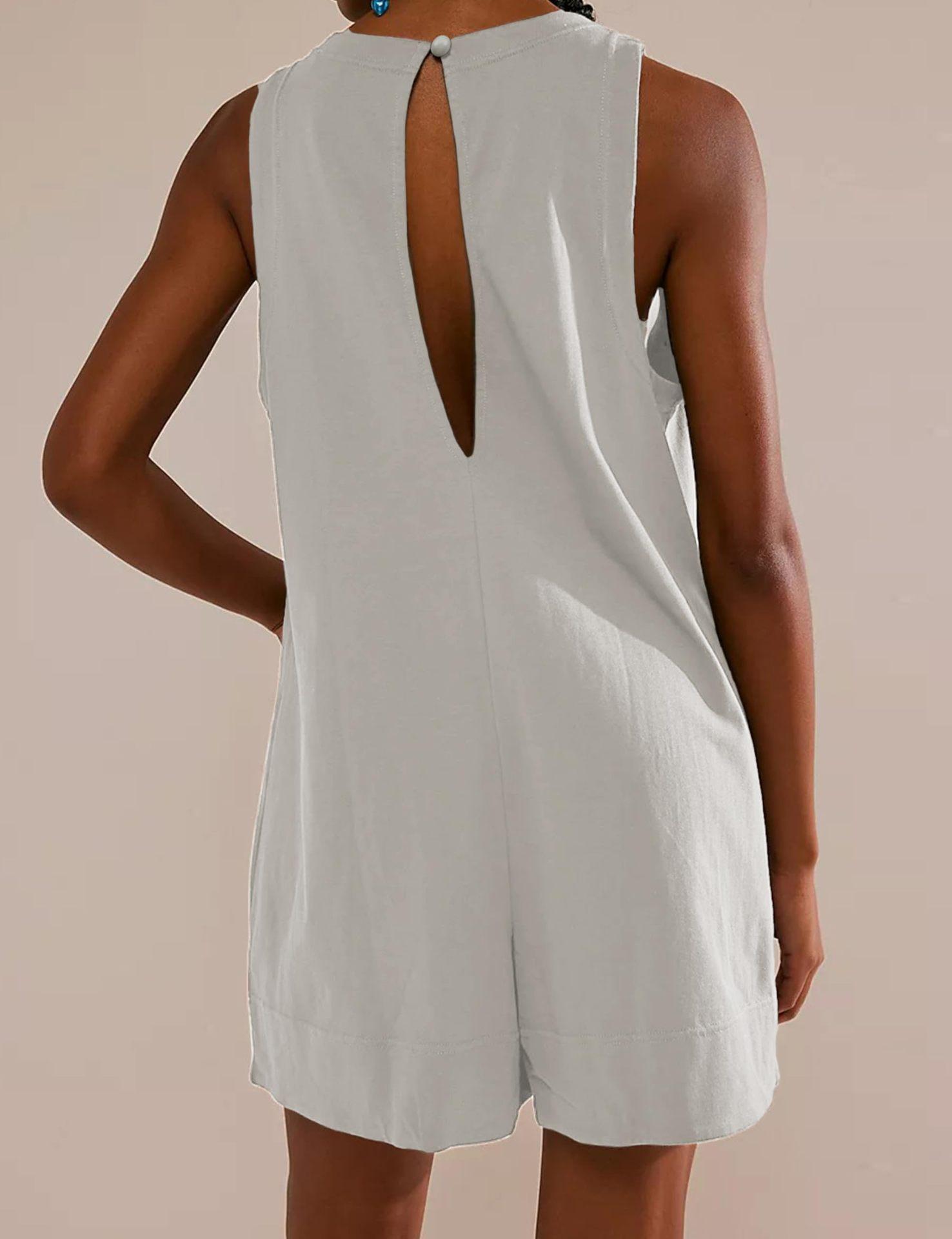 Mono informal de verano para mujer, estilo europeo y americano, holgado, sin mangas, con bolsillos y pantalones cortos, 2024